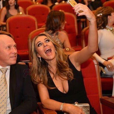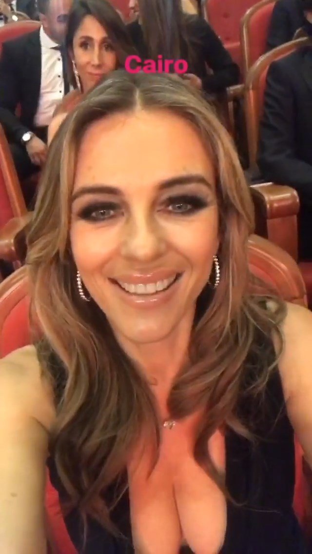 Elizabeth Hurley porte une robe noire classique au Festival du Film du Caire en Égypte, 21/11/2017. Elizabeth Hurley est une actrice anglaise (Aria, 1987). Âge – 52.