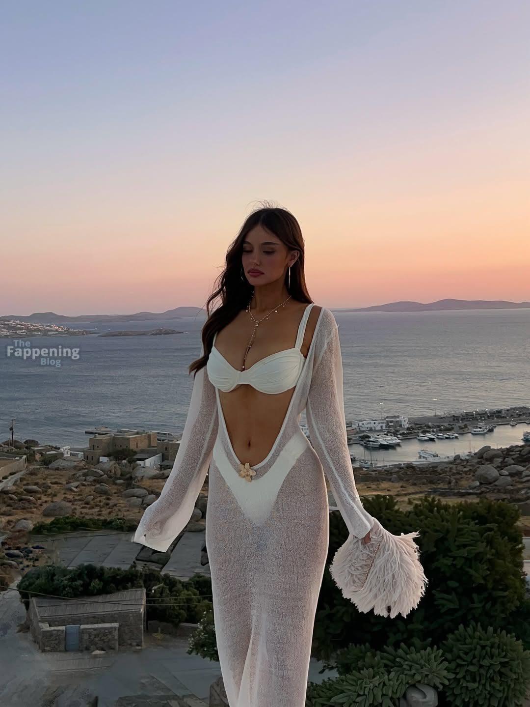 La star australienne de TikTok Ella Cervetto exhibe sa silhouette sexy dans une robe blanche transparente portée sur un bikini, offrant des regards époustouflants lors d’une séance photo au coucher du soleil au bord de la mer.