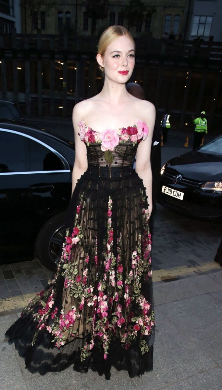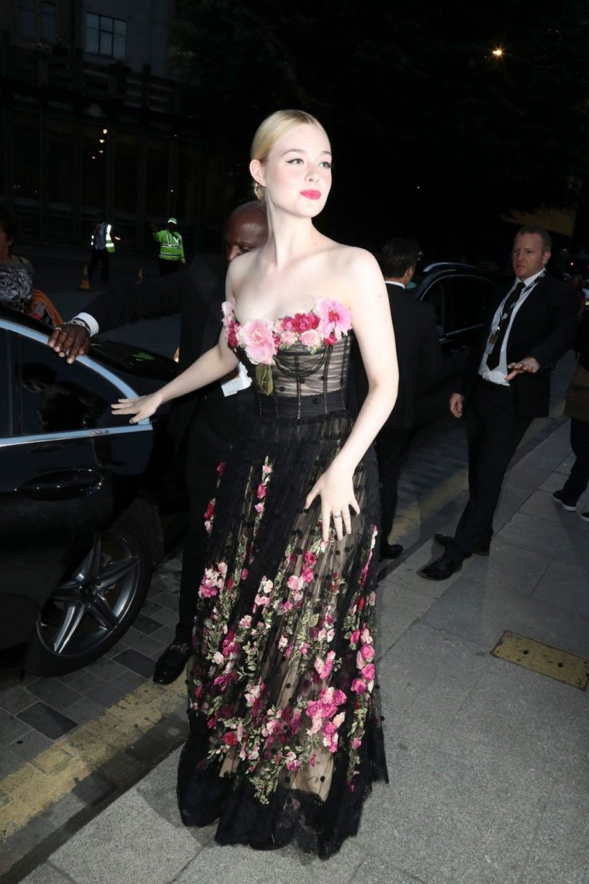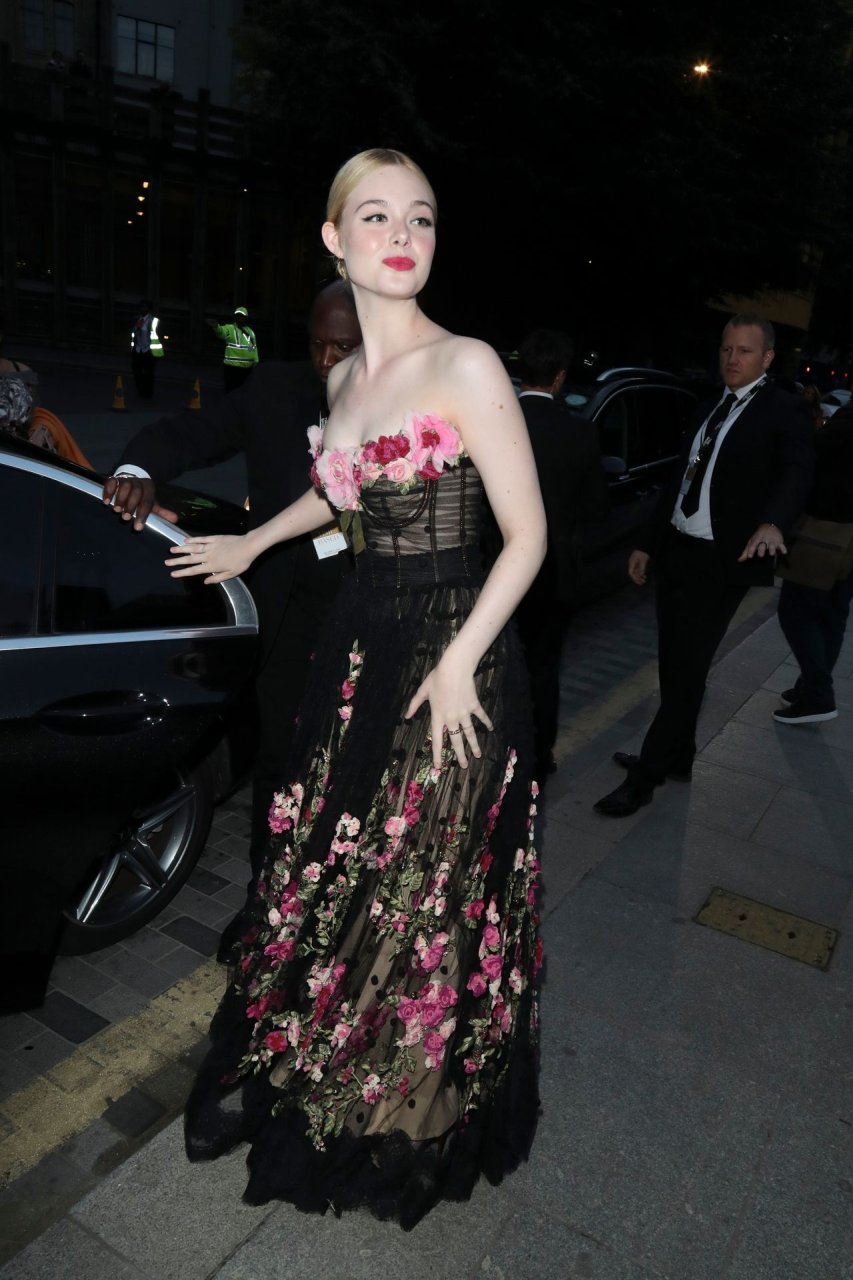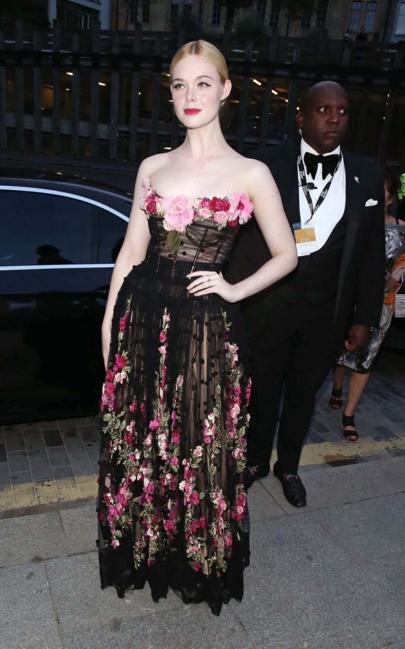 L’actrice Elle Fanning arrive aux GQ Men of the Year Awards 2019 au Tate Modern à Londres, 09/03/2019.