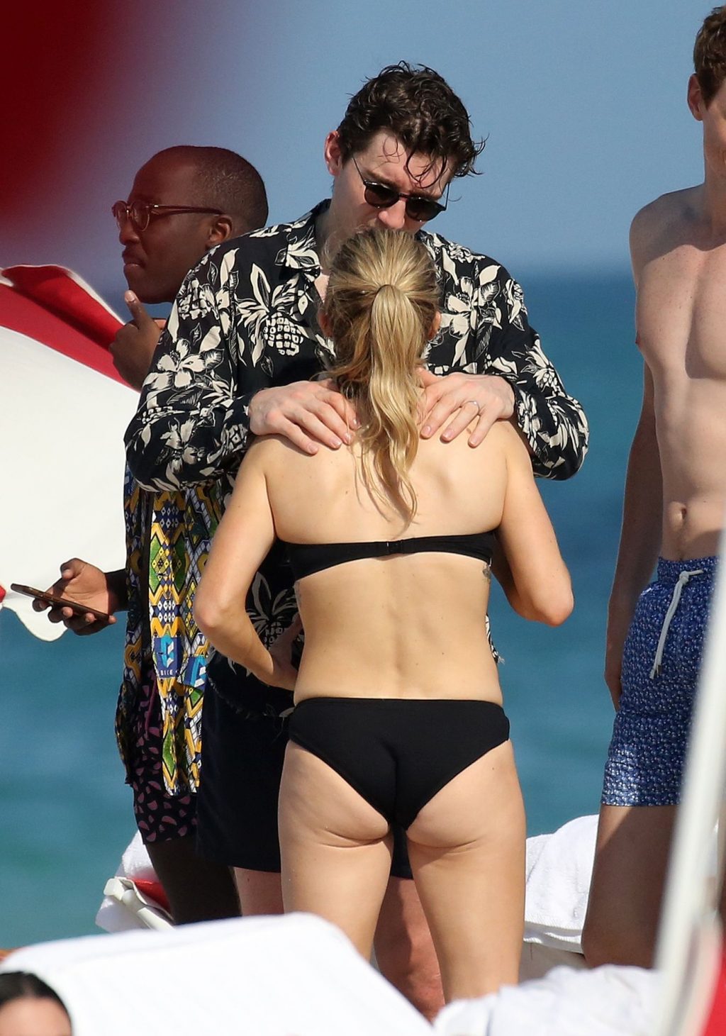 Chanteuse et star de The Fappening, Ellie Goulding porte un bikini noir alors qu’elle profite de la plage avec son mari Caspar Jopling à Miami le jour de la Saint-Sylvestre, le 31/12/2019.