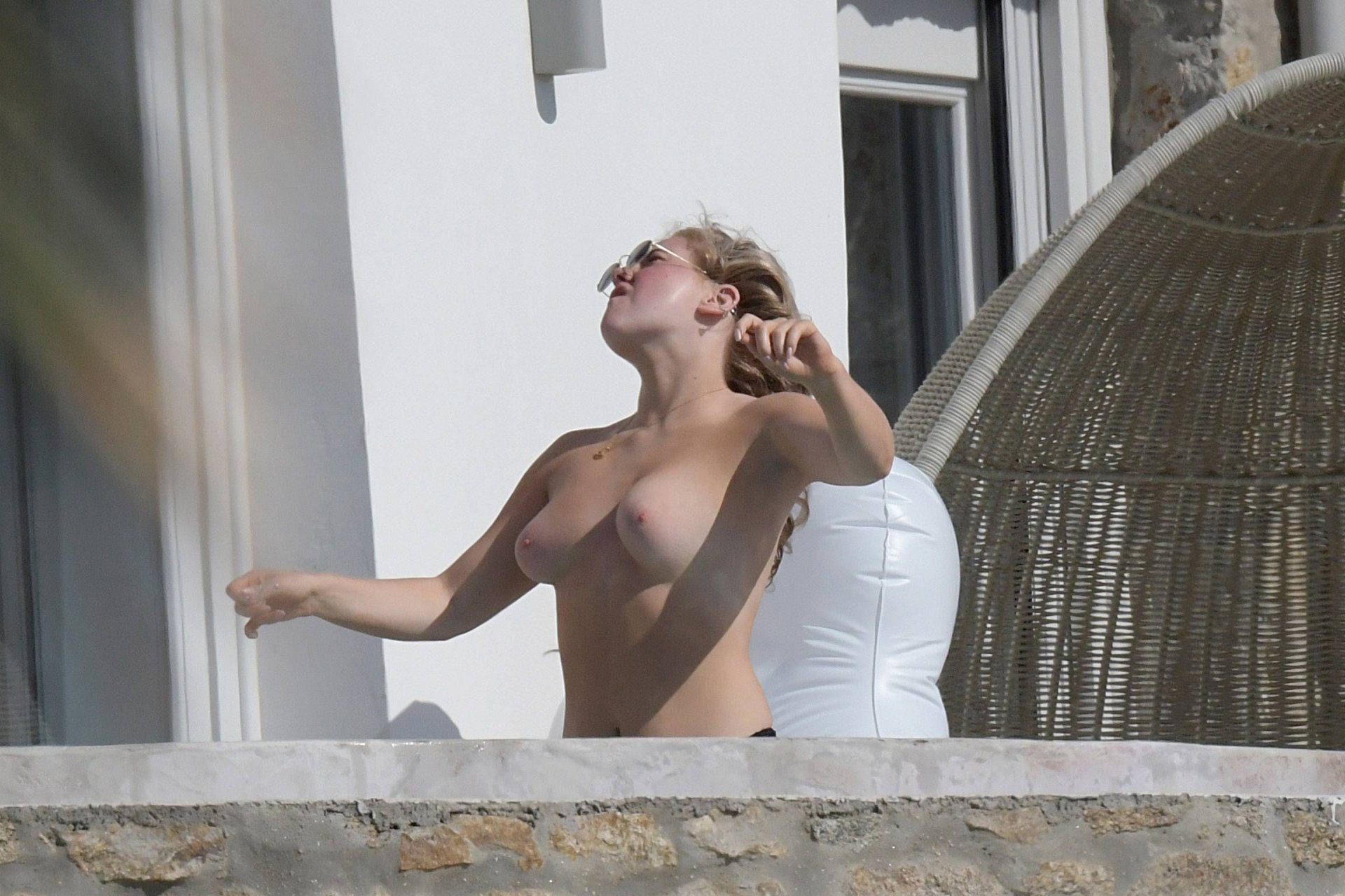Ellie Hemmings a été vue topless avec Perrie Edwards en vacances sur l’île de Mykonos, Grèce, le 01/06/2018. Ellie Hemmings est une star anglaise des réseaux sociaux et cousine de Perrie Edwards du groupe Little Mix. Âge : 19 ans.