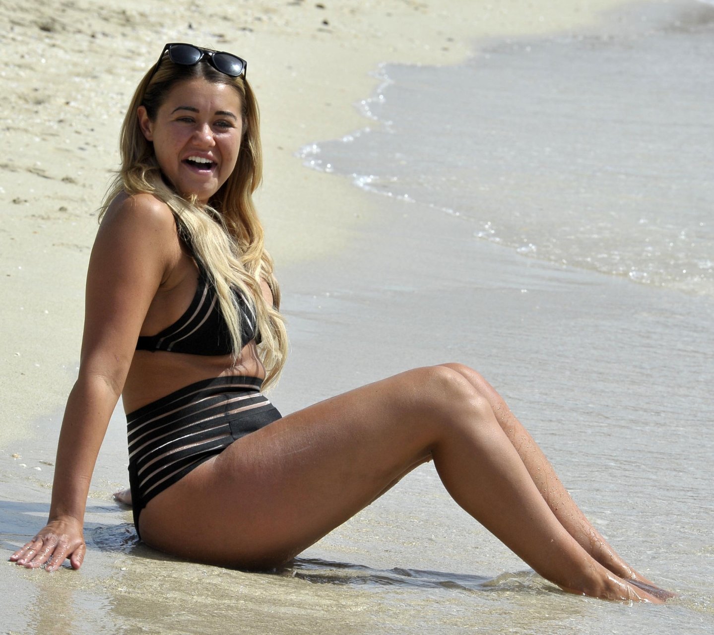 La star de “Big Brother” et “Ibiza Weekender” Ellie Young profite d’une journée à la plage, portant un bikini noir lors d’une escapade espagnole à Palma, en Espagne, le 15/11/2018.
