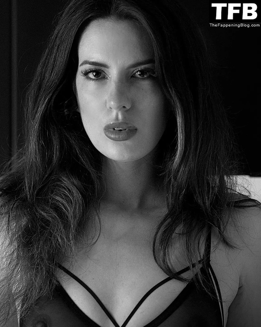 Le mannequin Elodie Hernandez affiche ses seins nus, posant en lingerie en dentelle lors d’une séance photo par Stefan Schmitz (2021).