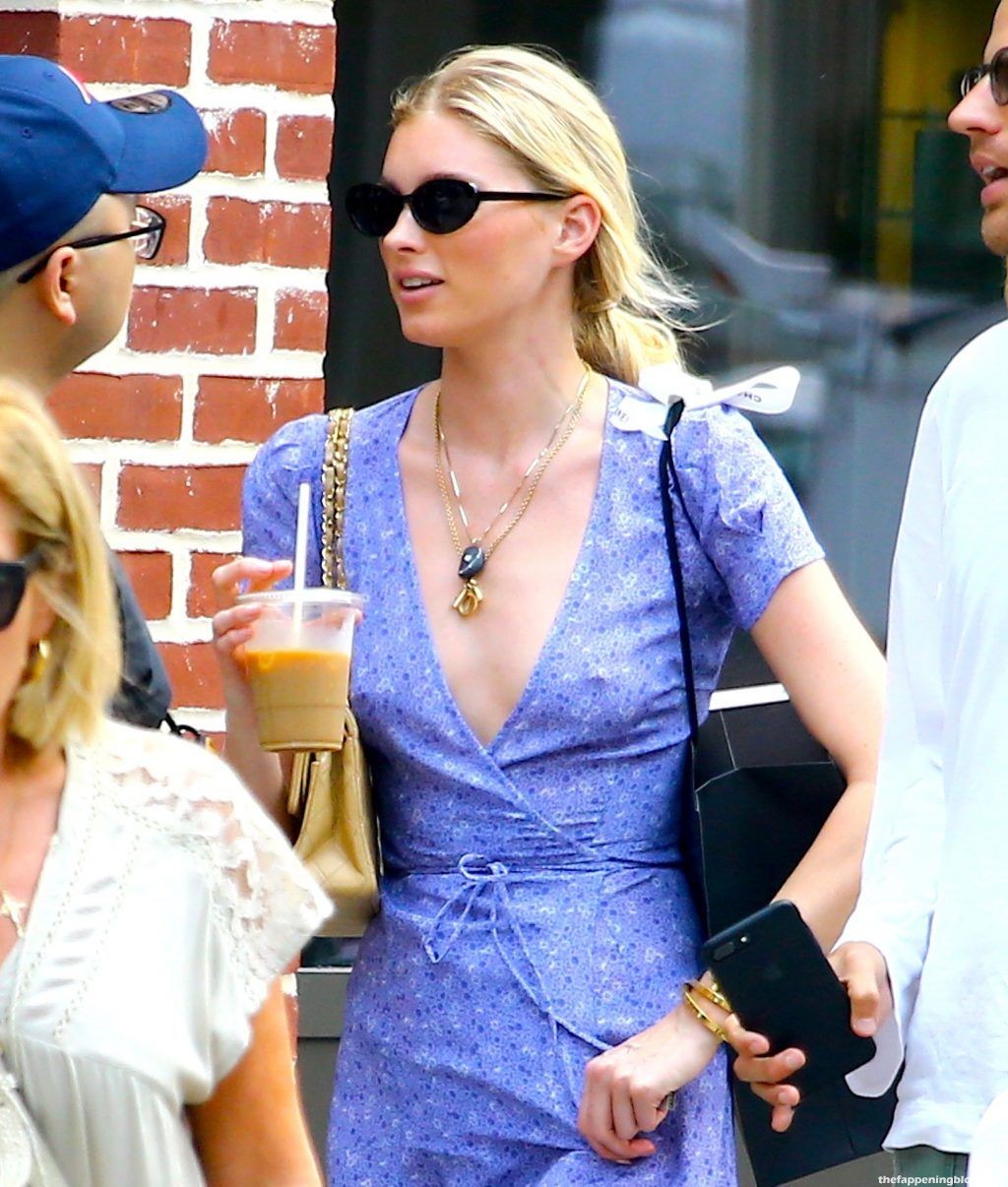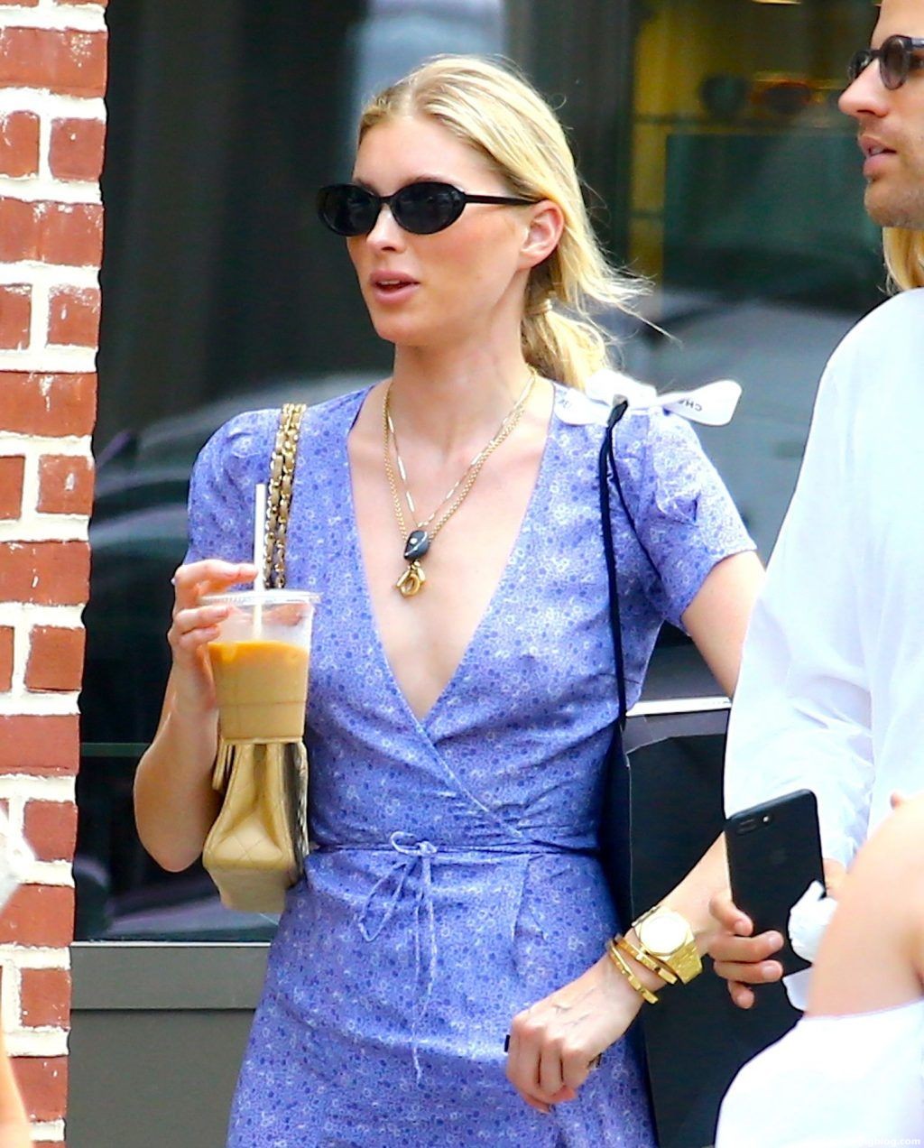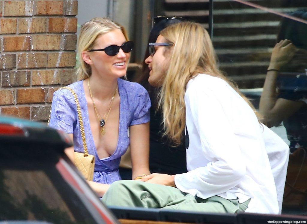 Check out one of the most famous Victoria’s Secret Angel Elsa Hosk braless pics from New York! Elsa was seen with her boyfriend shopping around Soho, then drinking coffee with him and kissing! This man looks just like Hosk’s twin sister; it’s so freaky seeing them together, holding hands, and making out! The blonde supermodel wore a blue dress with deep cleavage and no bra, so her nipples were poking for photographers!