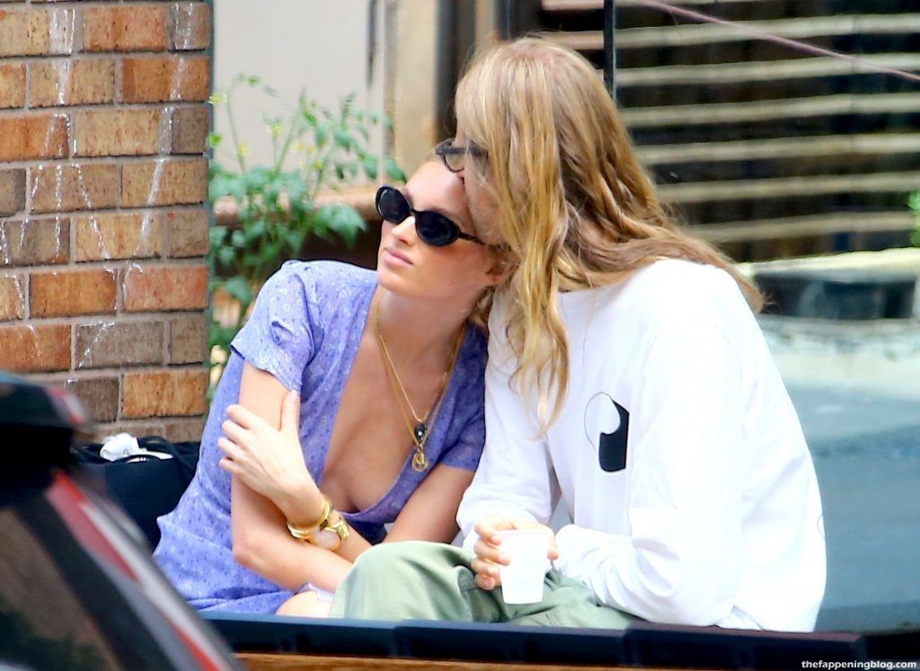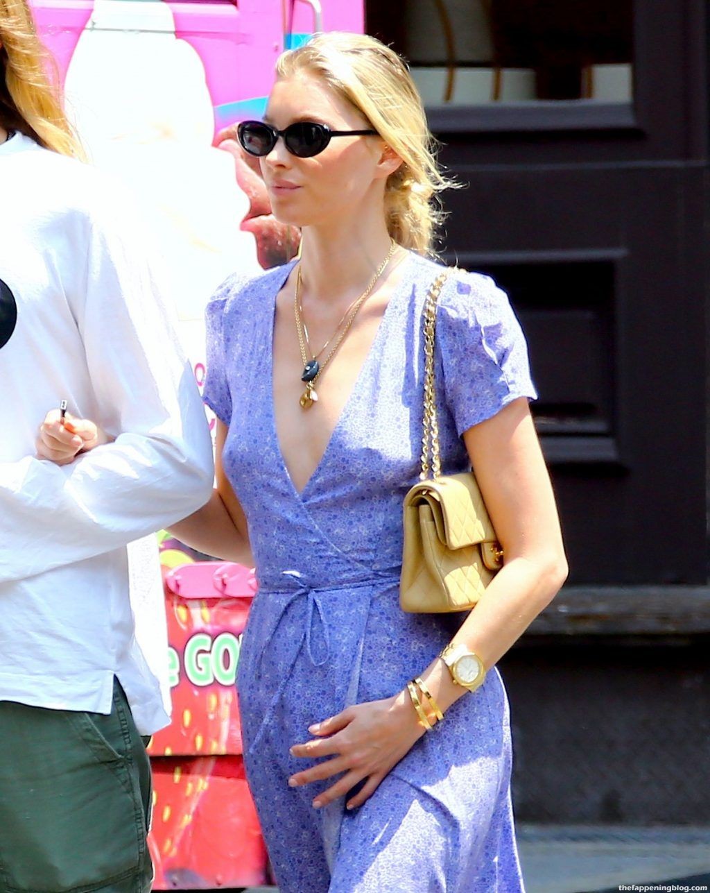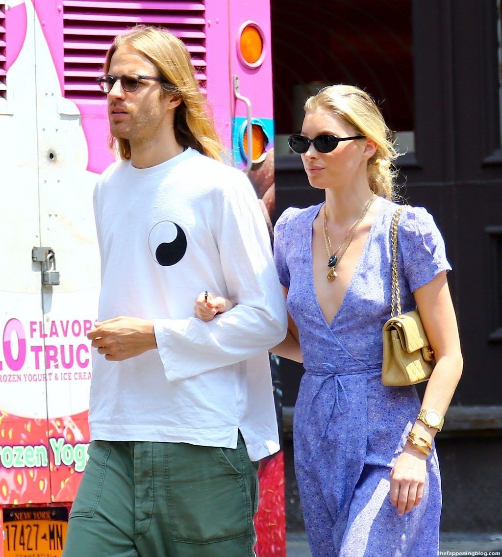 Check out one of the most famous Victoria’s Secret Angel Elsa Hosk braless pics from New York! Elsa was seen with her boyfriend shopping around Soho, then drinking coffee with him and kissing! This man looks just like Hosk’s twin sister; it’s so freaky seeing them together, holding hands, and making out! The blonde supermodel wore a blue dress with deep cleavage and no bra, so her nipples were poking for photographers!