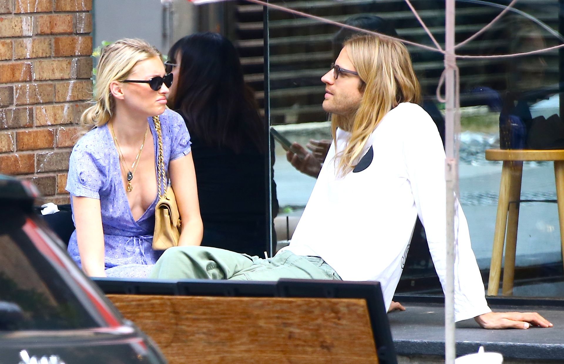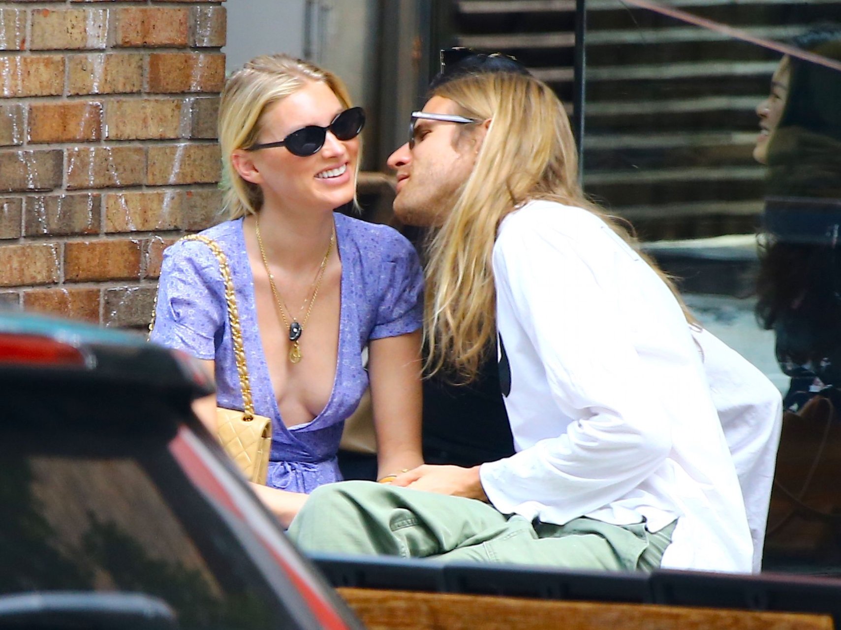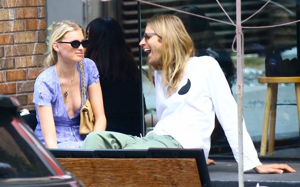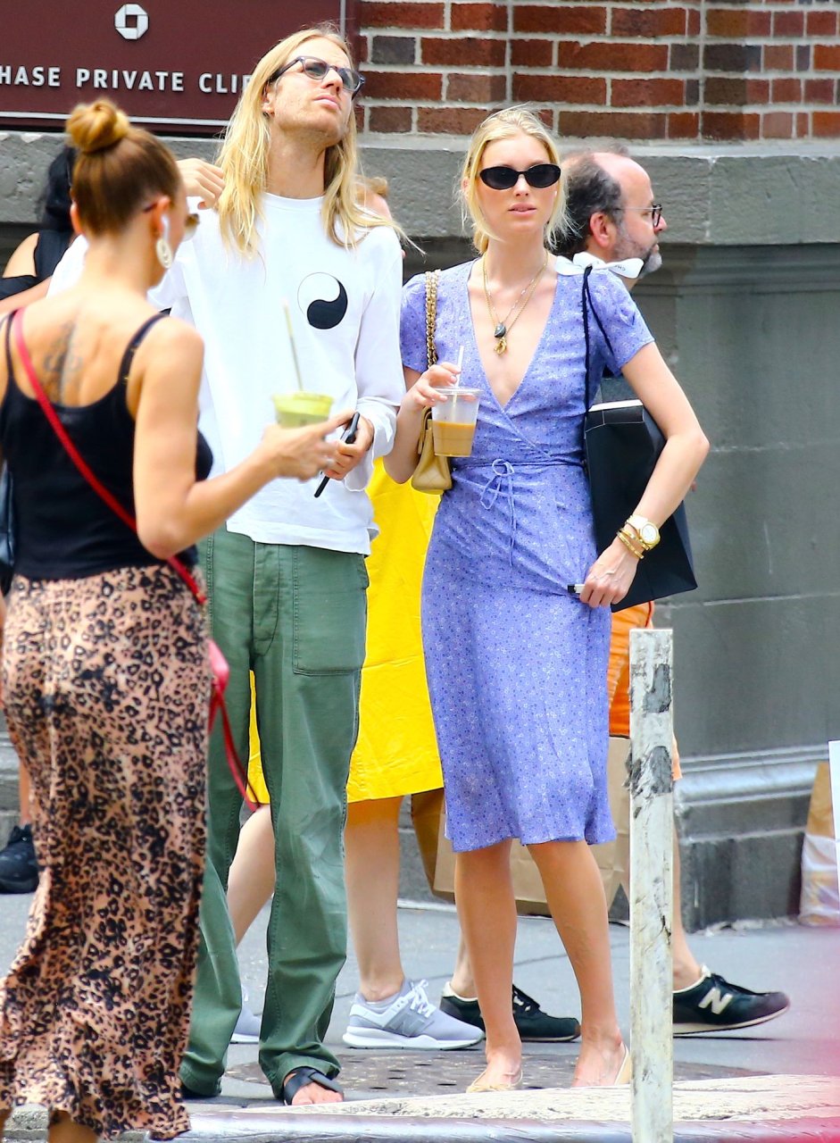 Mannequin suédoise Elsa Hosk avec son petit ami font du shopping chez Chanel et Gucci puis sourient et s’embrassent pendant une pause café dans le quartier de Soho à New York, 27/07/2019.