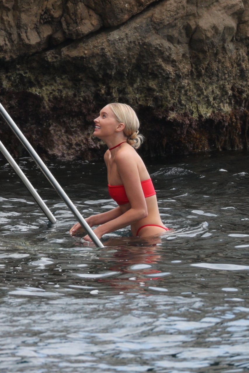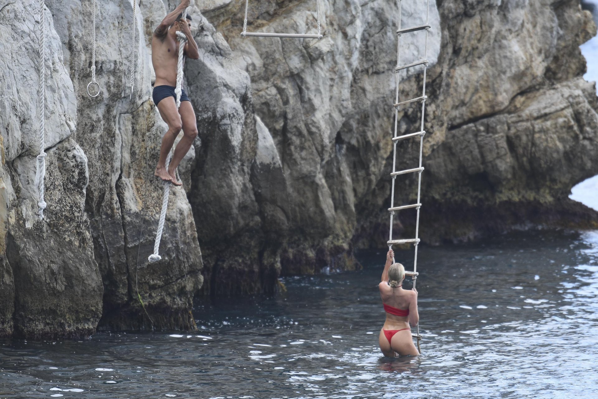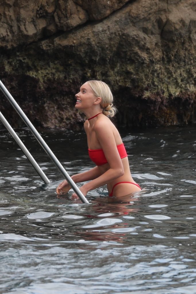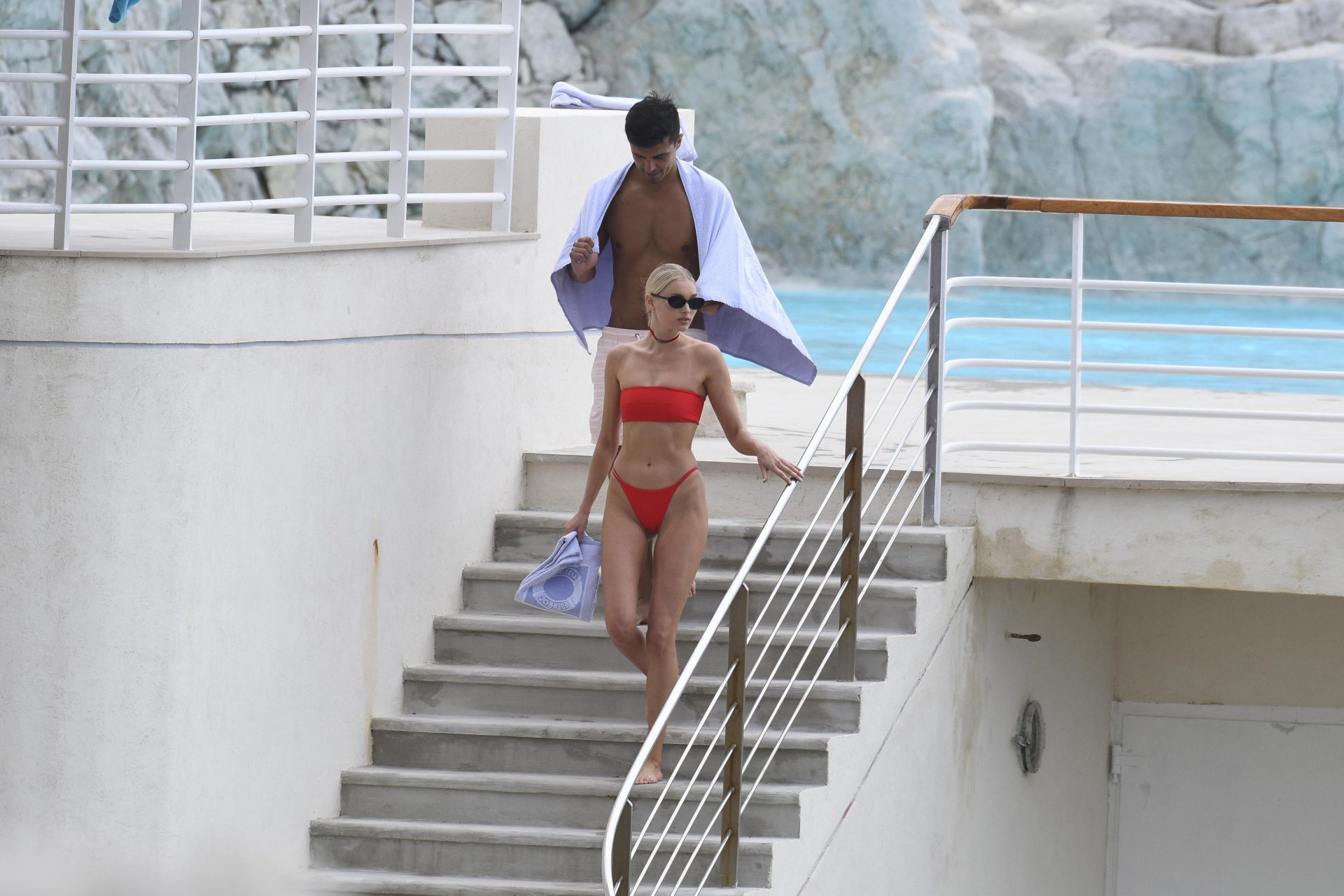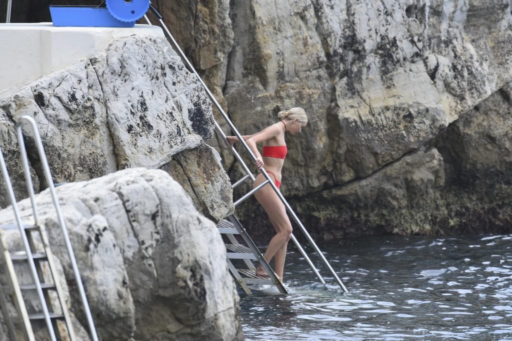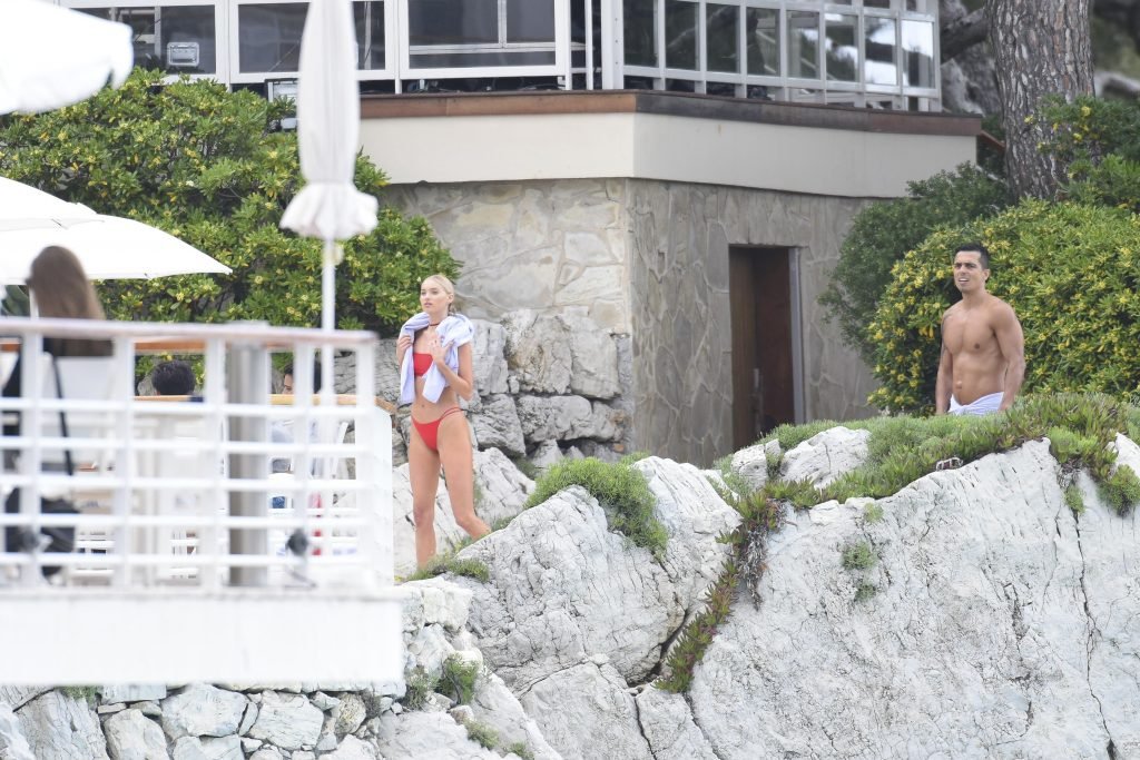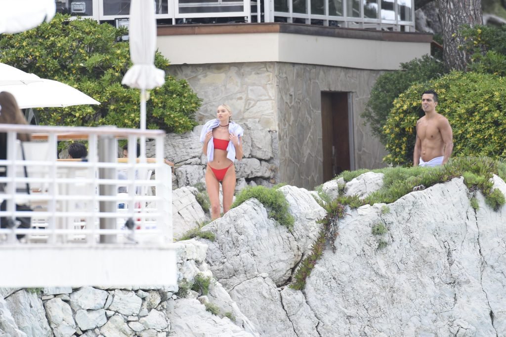 L’ange suédois de VS Elsa Hosk a été aperçue en bikini string rouge à l’hôtel Eden Roc à Antibes, le 16/05/2018. Le mannequin exhibe ses longues jambes et son petit derrière lors du 71e Festival de Cannes.