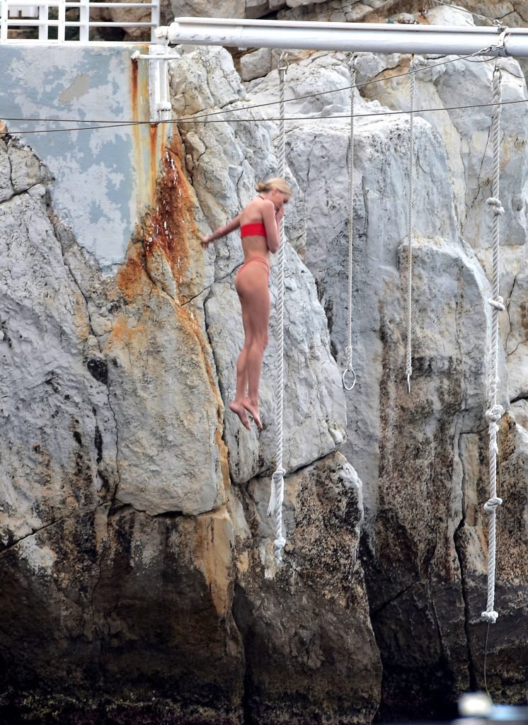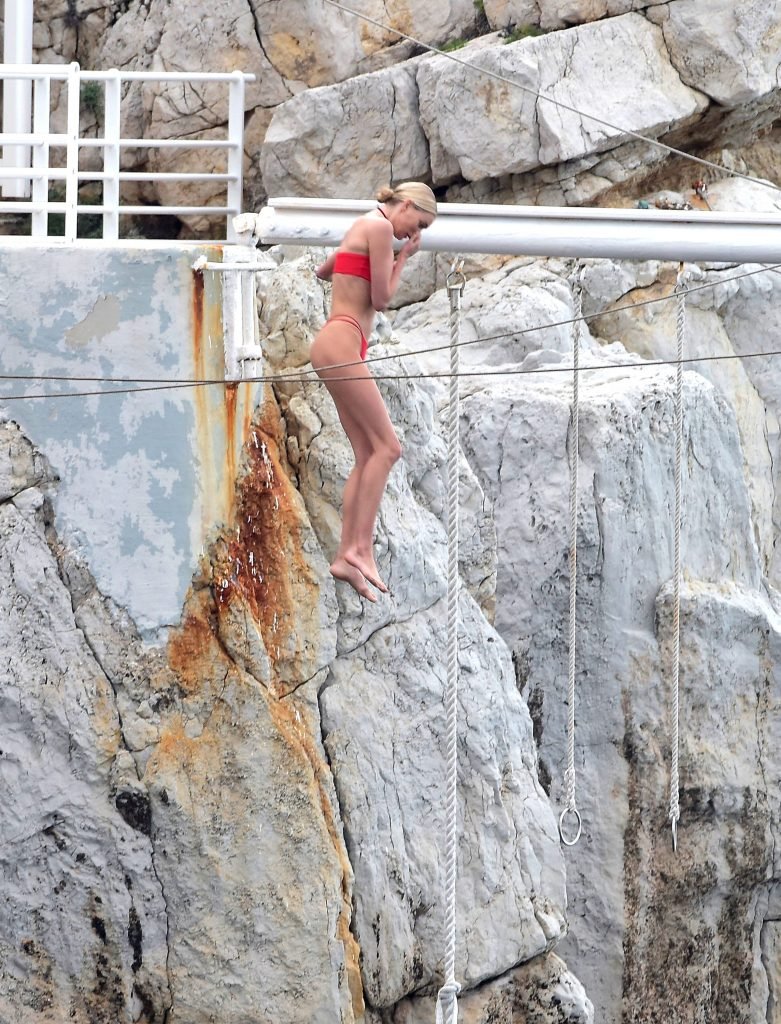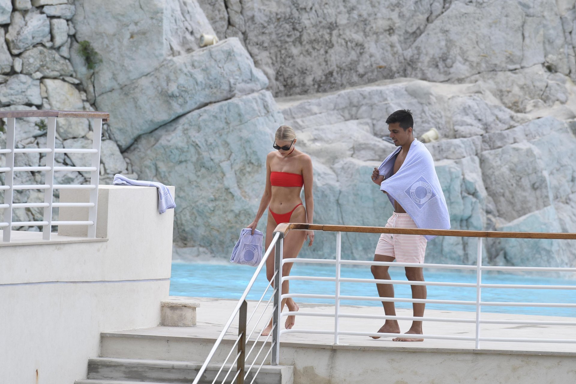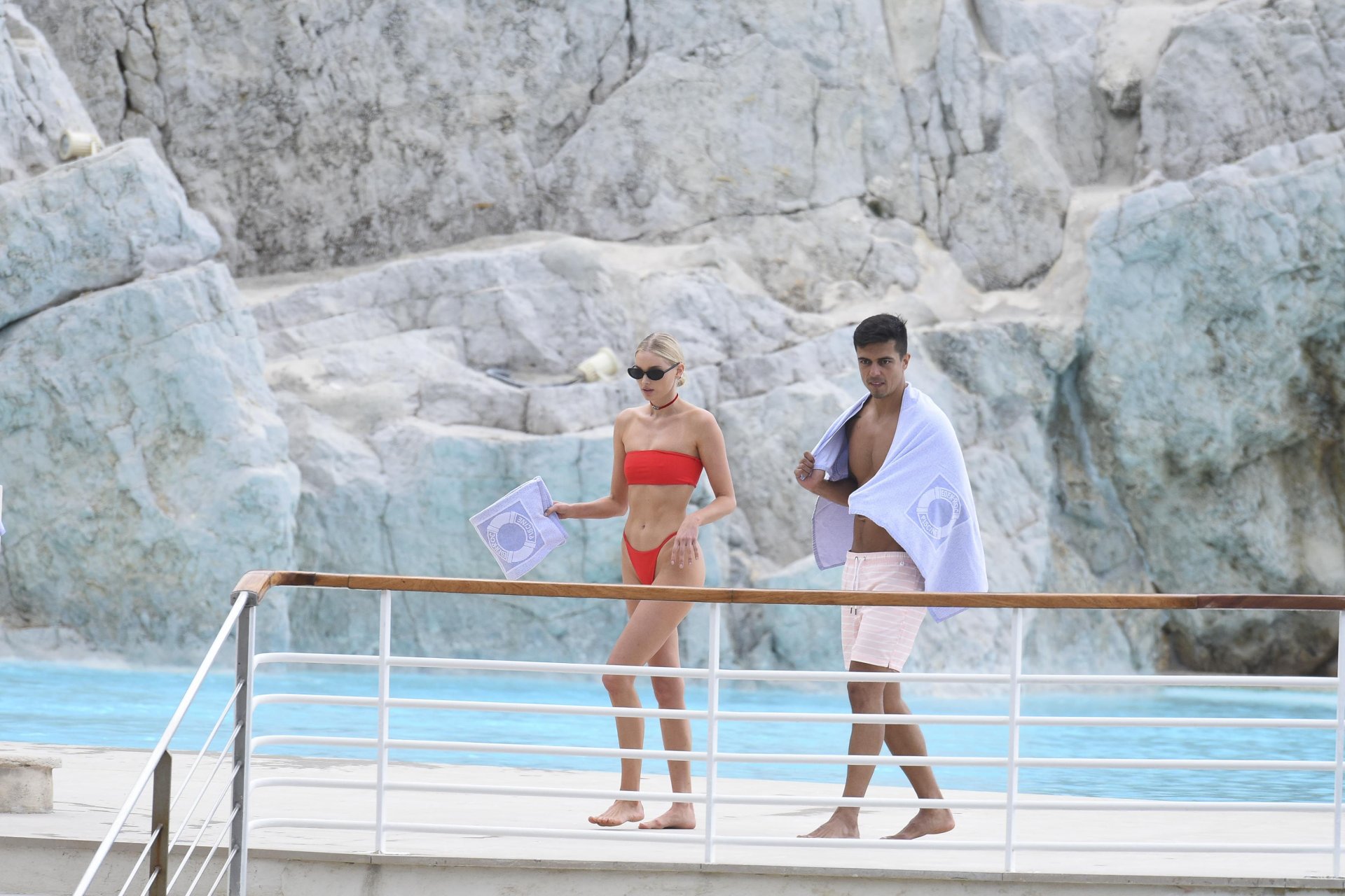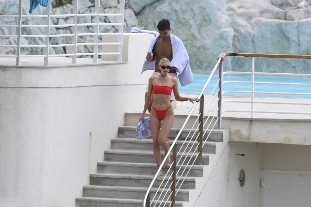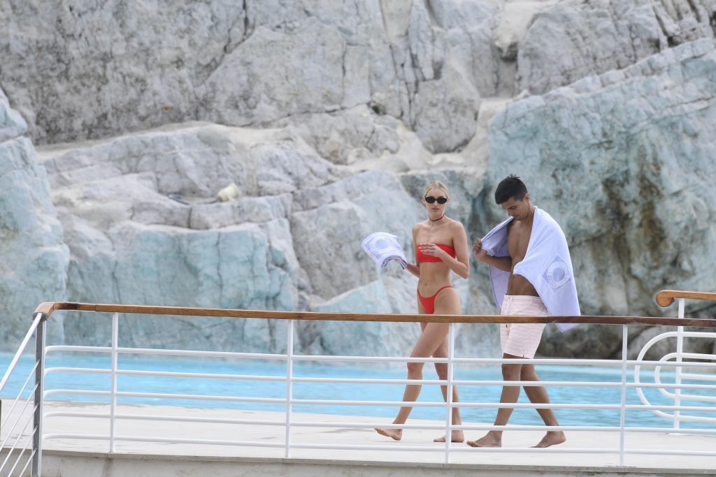 L’ange suédois de VS Elsa Hosk a été aperçue en bikini string rouge à l’hôtel Eden Roc à Antibes, le 16/05/2018. Le mannequin exhibe ses longues jambes et son petit derrière lors du 71e Festival de Cannes.