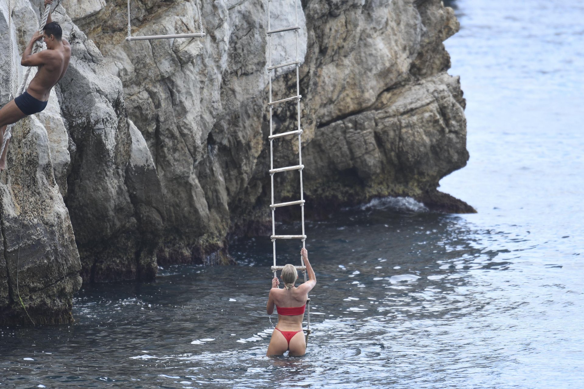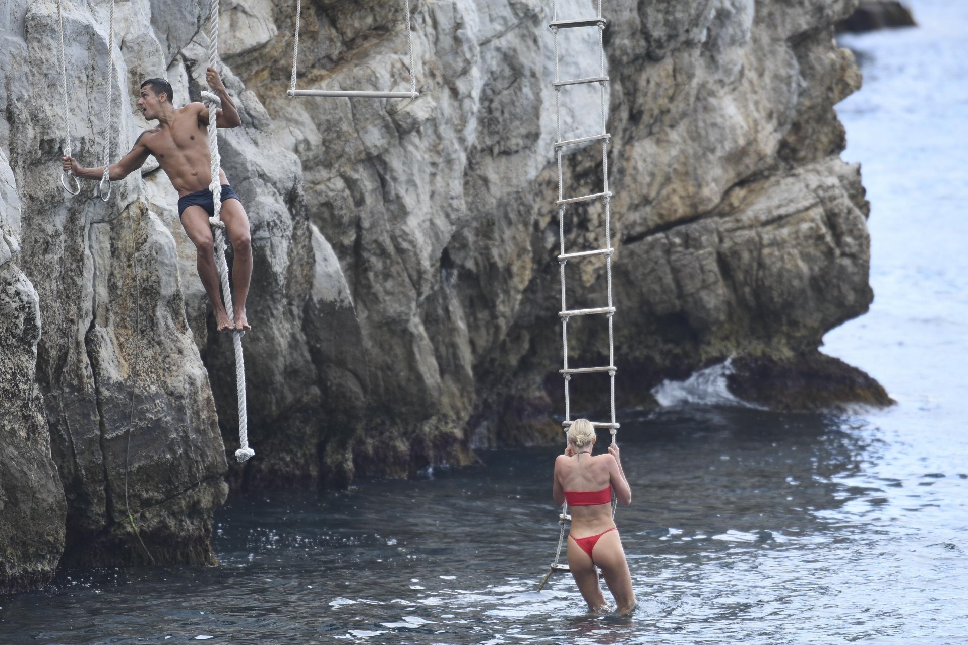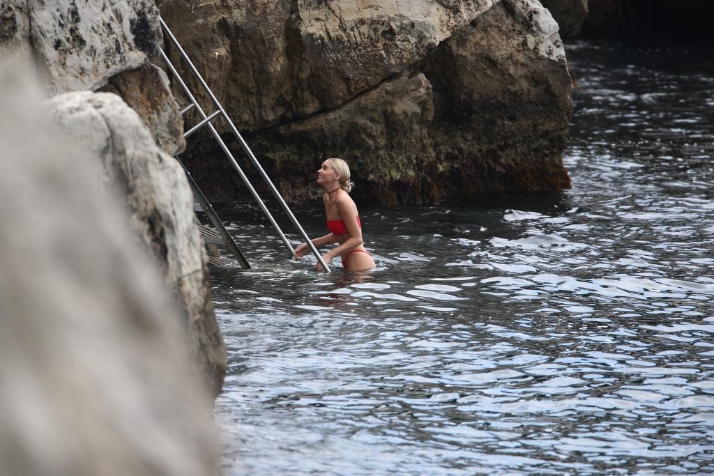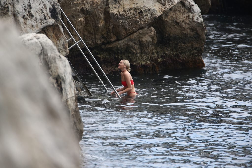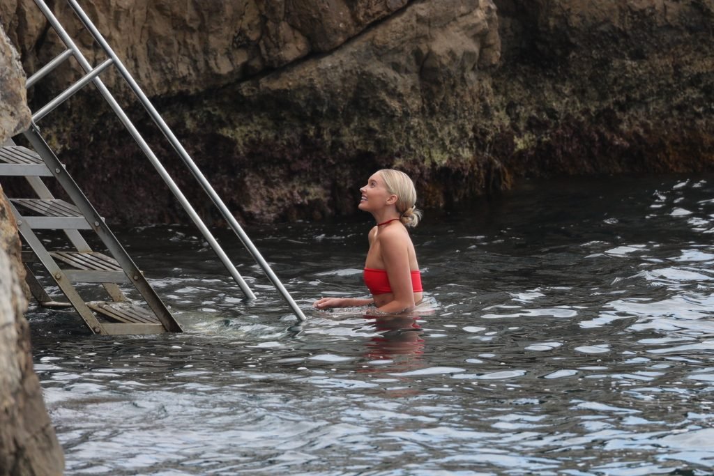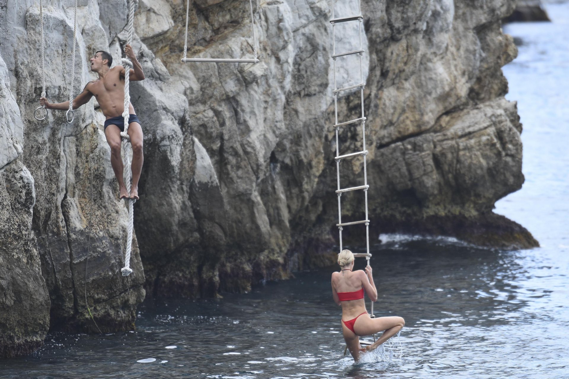 L’ange suédois de VS Elsa Hosk a été aperçue en bikini string rouge à l’hôtel Eden Roc à Antibes, le 16/05/2018. Le mannequin exhibe ses longues jambes et son petit derrière lors du 71e Festival de Cannes.
