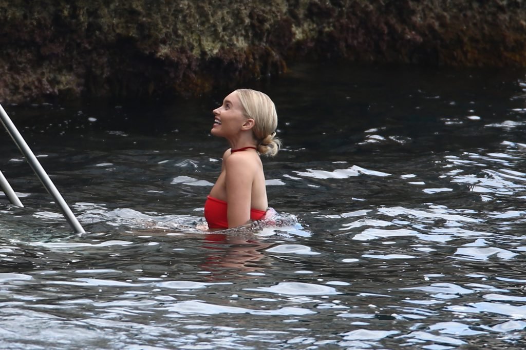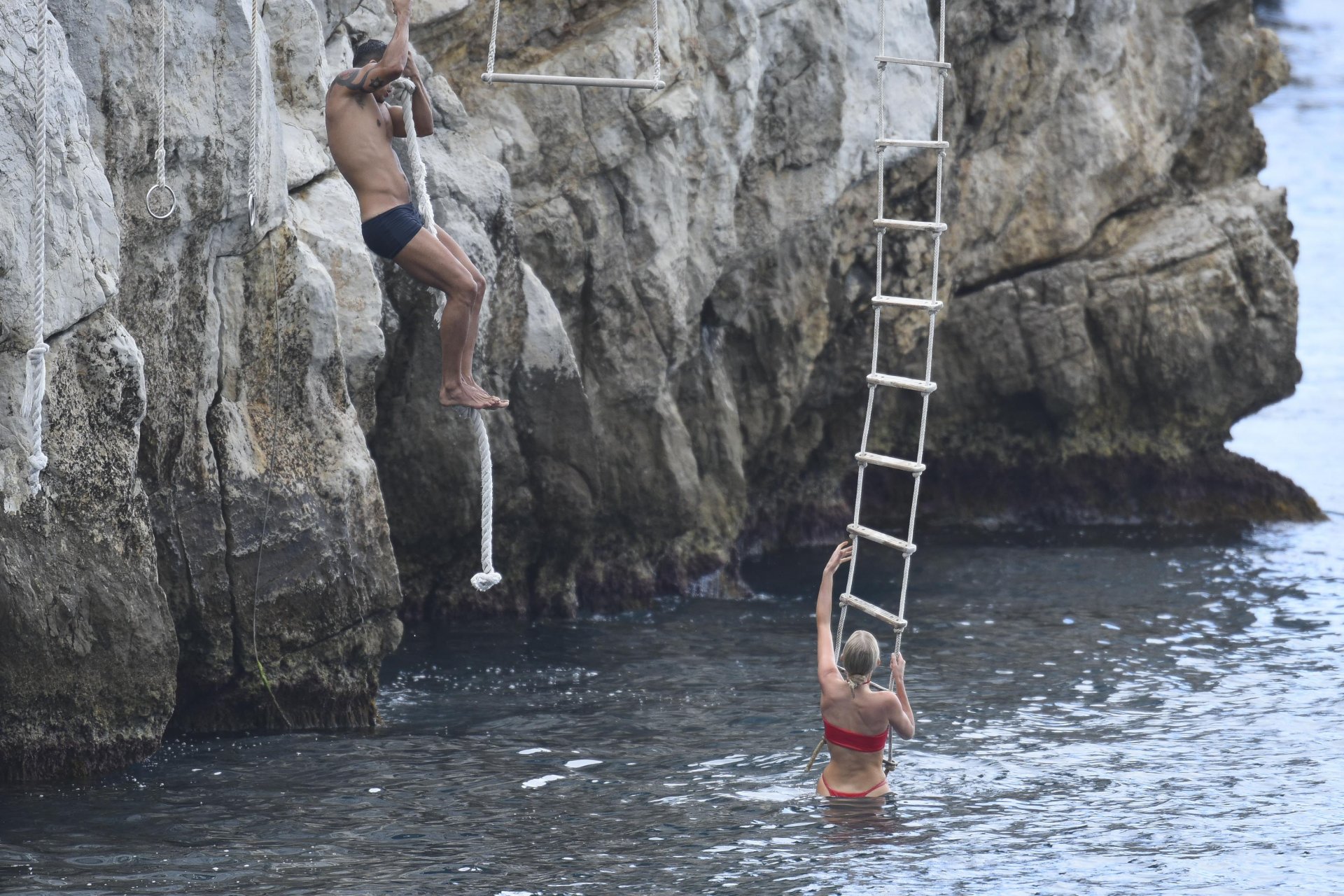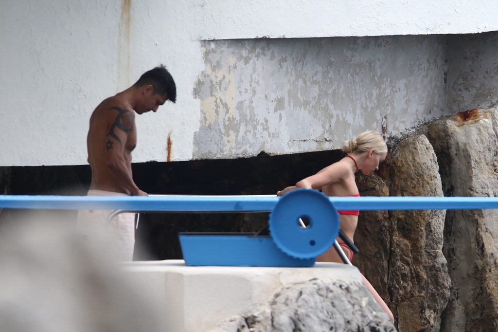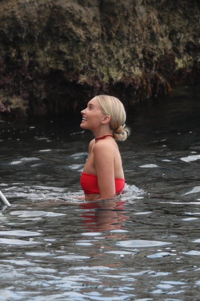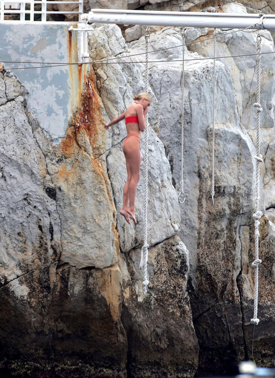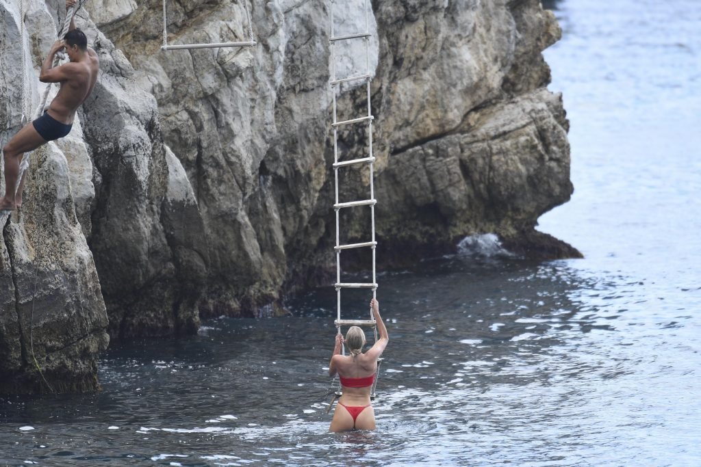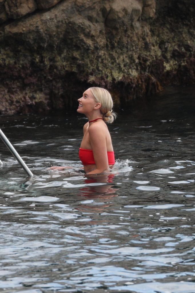 L’ange suédois de VS Elsa Hosk a été aperçue en bikini string rouge à l’hôtel Eden Roc à Antibes, le 16/05/2018. Le mannequin exhibe ses longues jambes et son petit derrière lors du 71e Festival de Cannes.