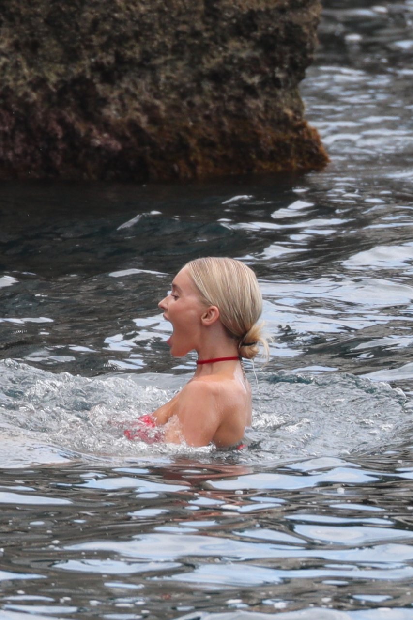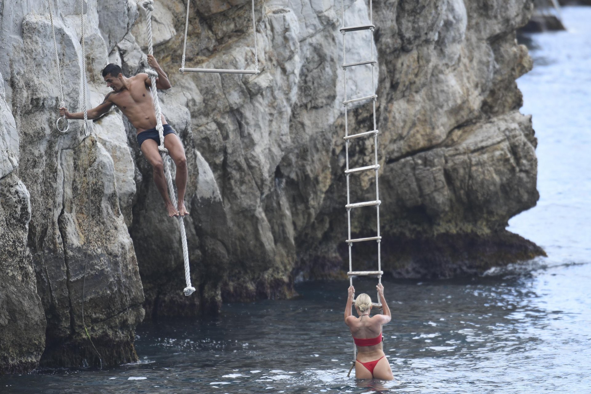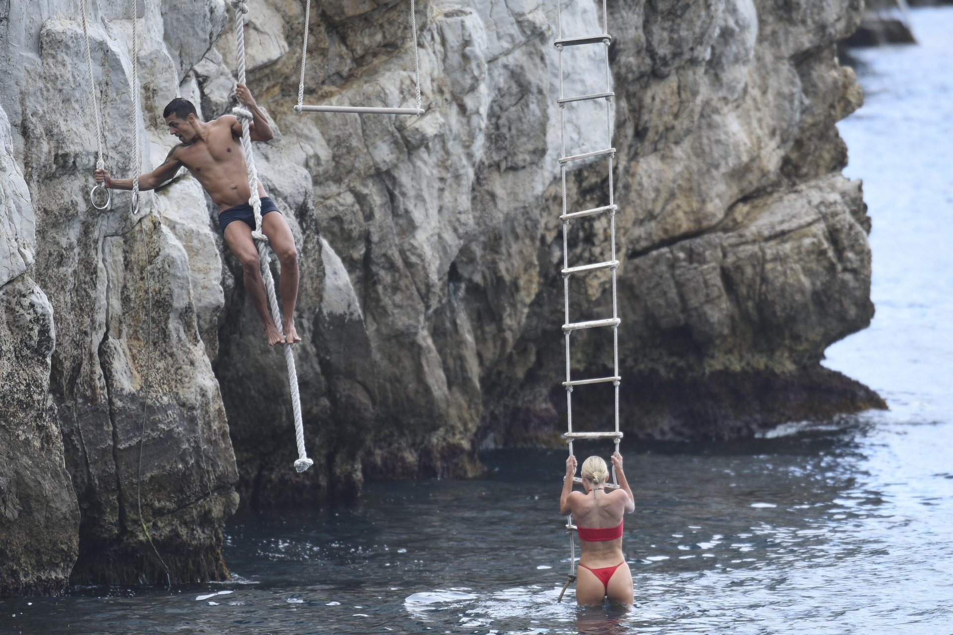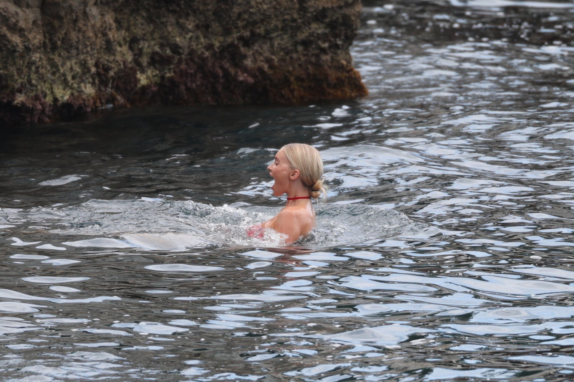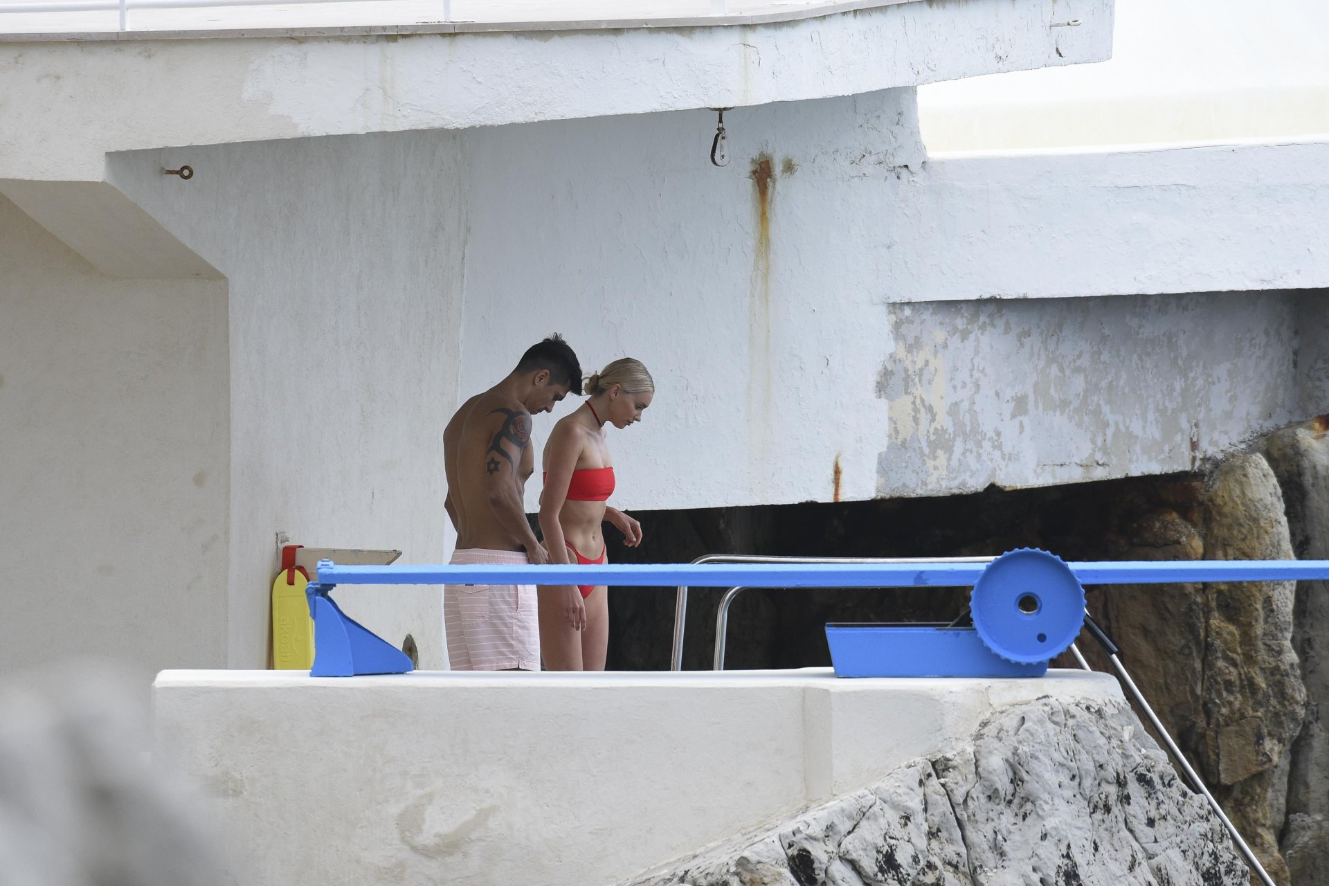 L’ange suédois de VS Elsa Hosk a été aperçue en bikini string rouge à l’hôtel Eden Roc à Antibes, le 16/05/2018. Le mannequin exhibe ses longues jambes et son petit derrière lors du 71e Festival de Cannes.