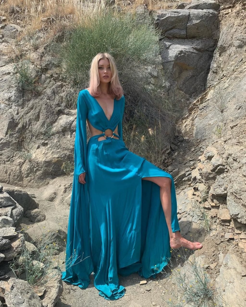 Elsa Hosk pose topless sur Instagram (mai 2019). Le top modèle suédois de 30 ans a posé dans de nouvelles séances photo, y compris une photo de la blonde allongée sur le sol et se couvrant les seins, et posant en extérieur dans une robe verte moulante.