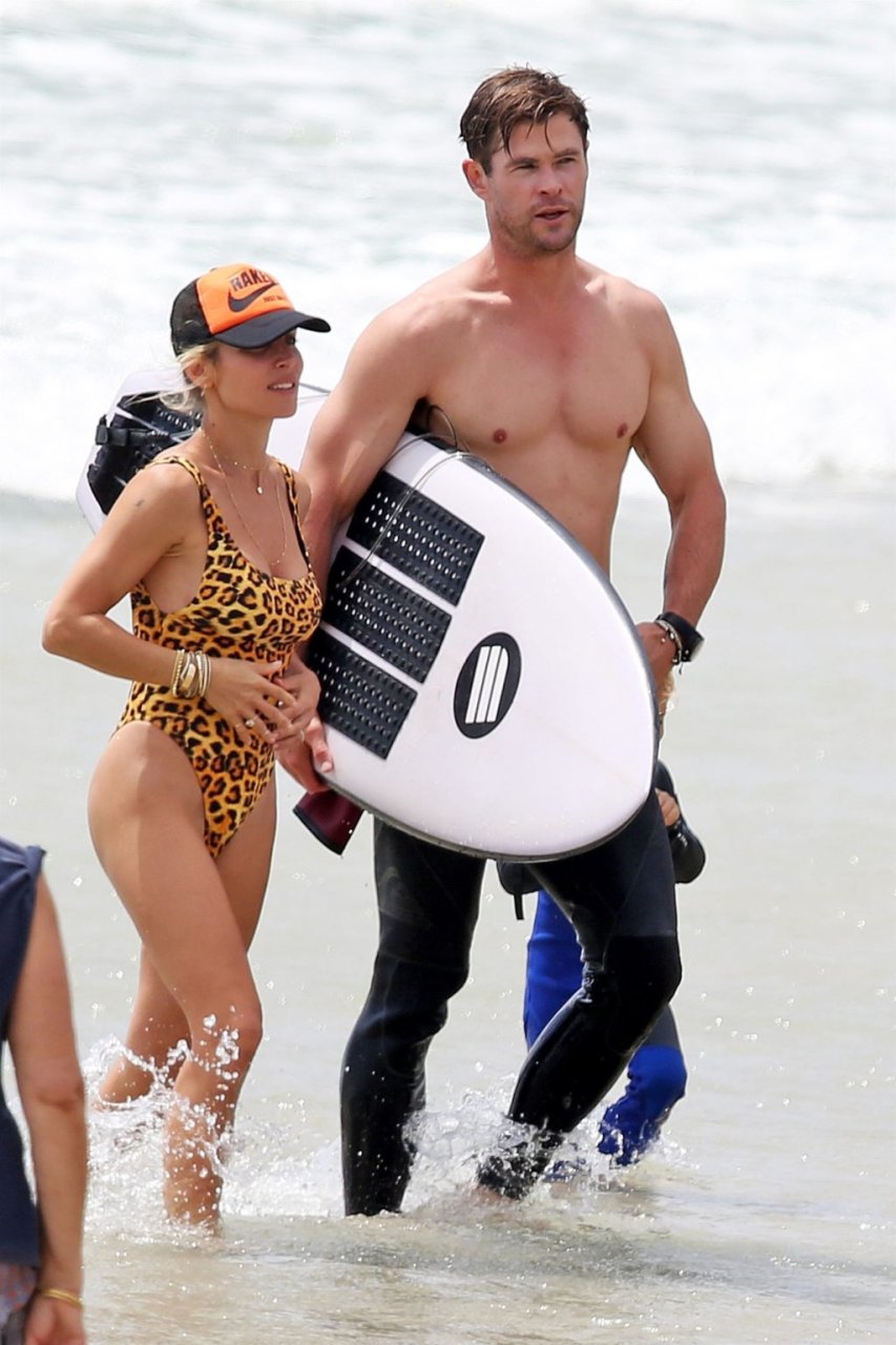 Le couple superstar Chris Hemsworth et Elsa Pataky a été vu en train de profiter du soleil lors d’une sortie à la plage avec leurs enfants à Byron Bay, Australie, le 21/10/2018.