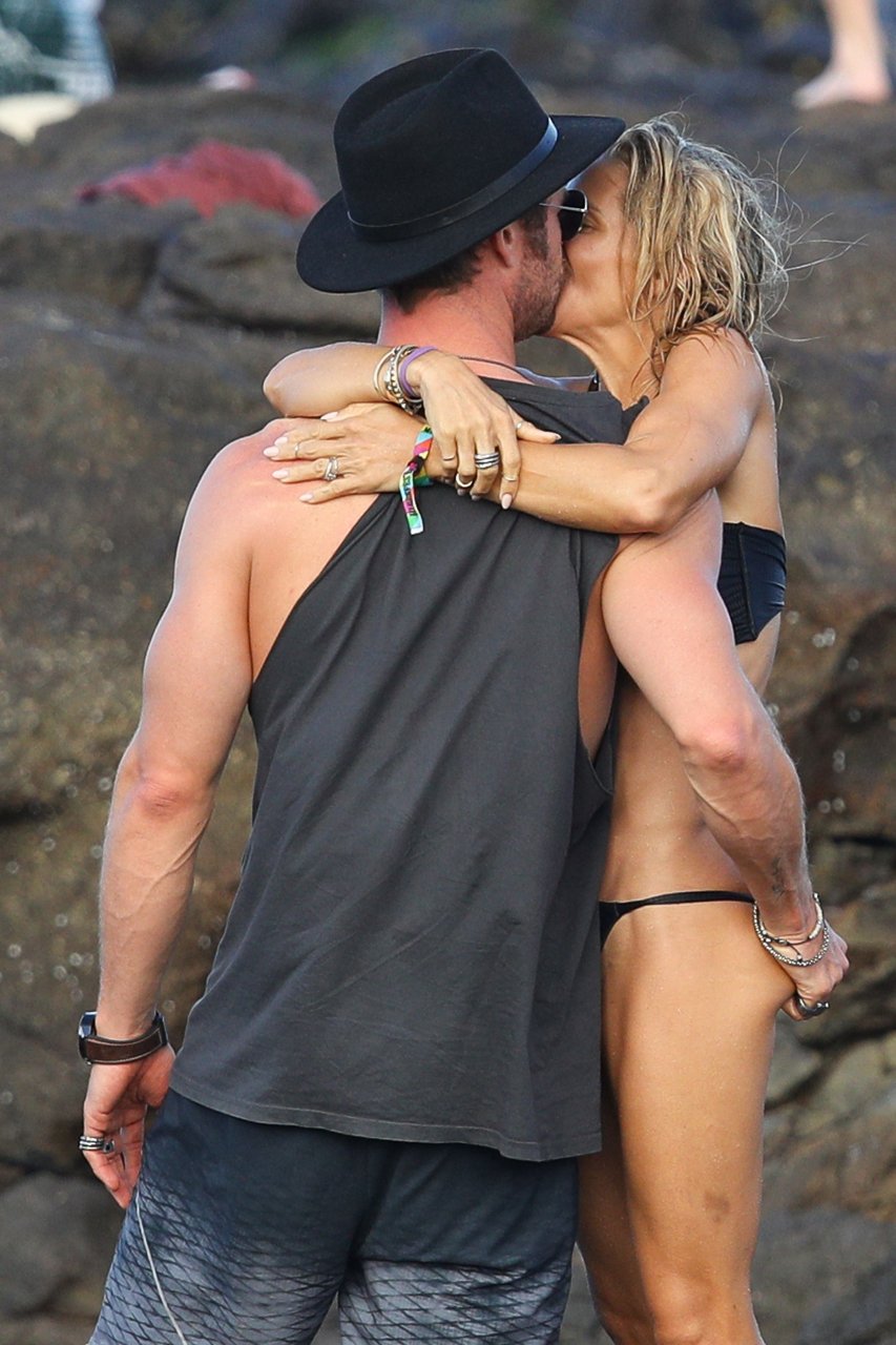 Les acteurs Chris Hemsworth et Matt Damon prennent quelques bières sur la plage avec leurs épouses Elsa Lafuente Medianu et Luciana Barroso, ainsi que des amis à Byron Bay, le 04/02/2018. Chris a été vu en train de serrer affectueusement les fesses de sa femme. Elsa Pataky est une actrice espagnole (Fast & Furious 8), mannequin, productrice. Âge – 41 ans.