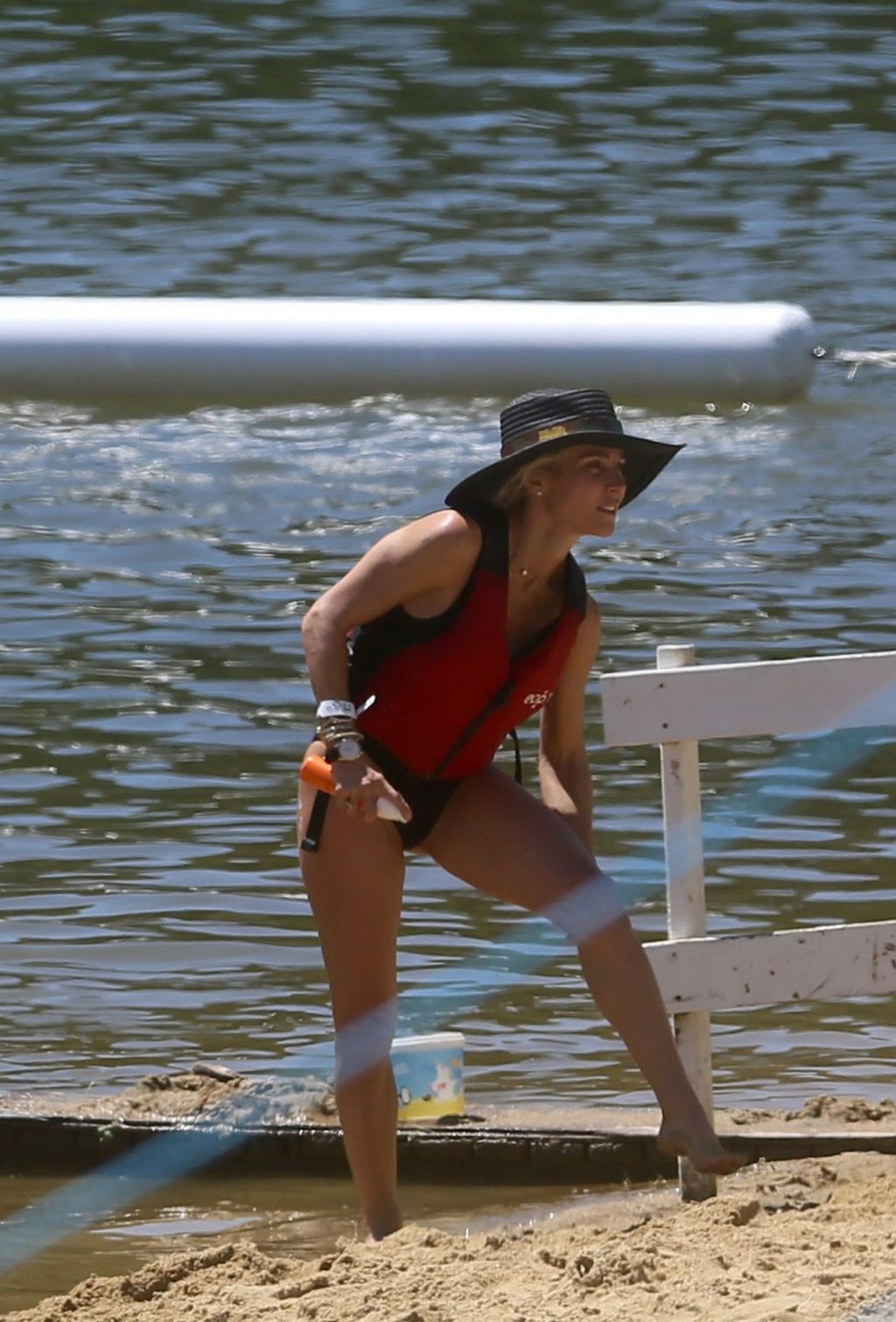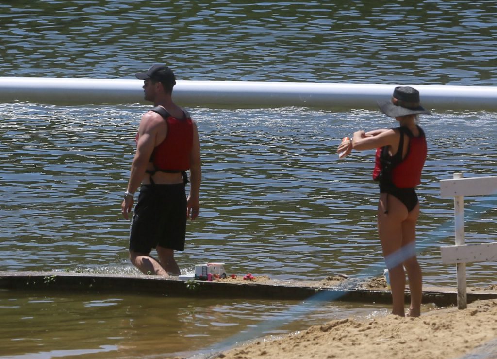 Chris Hemsworth, Elsa Pataky et leurs enfants passent une journée amusante au lac de Senpere dans le sud de la France, 07/12/2019. Elsa a montré son corps sexy et en forme en portant un maillot de bain noir.