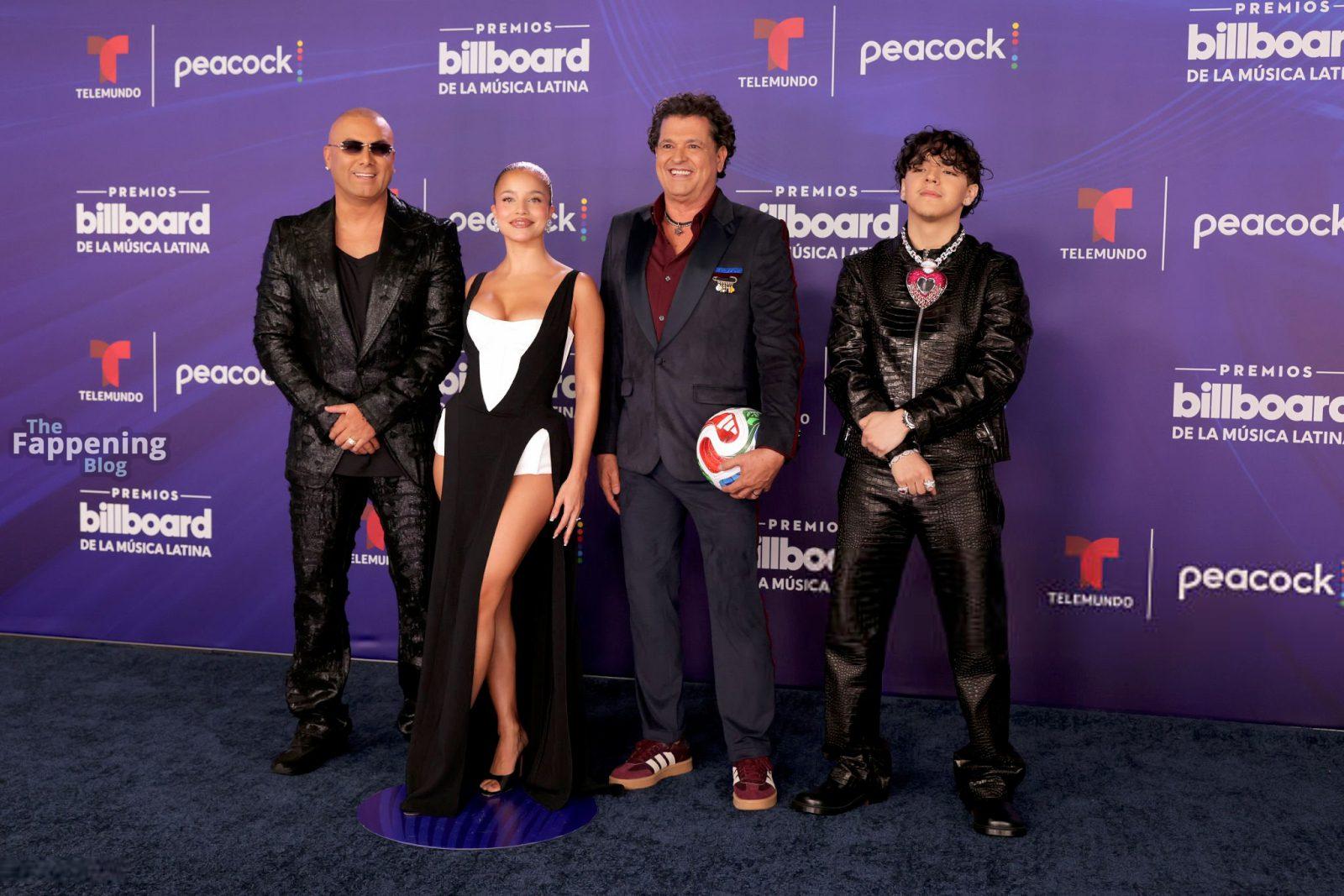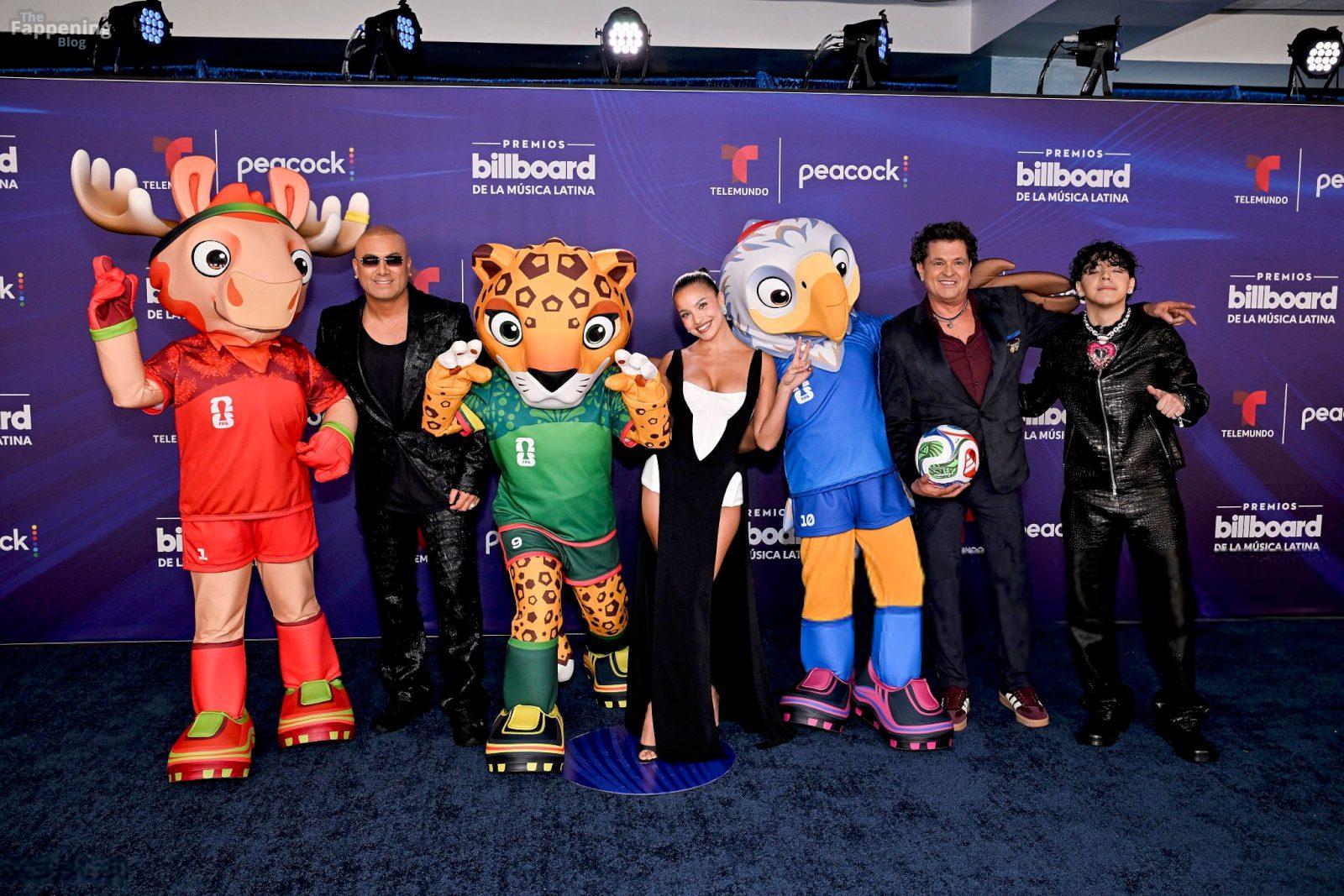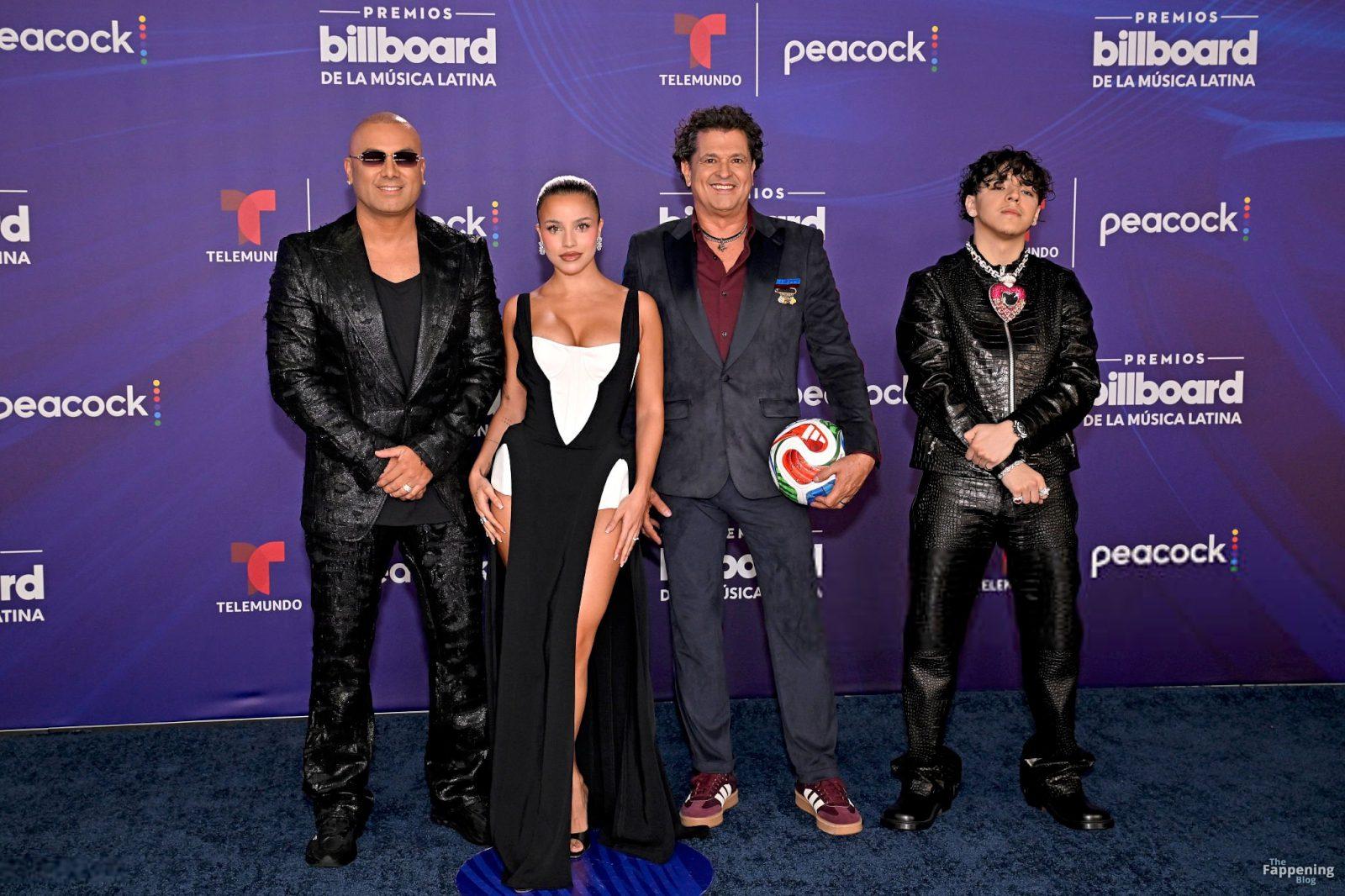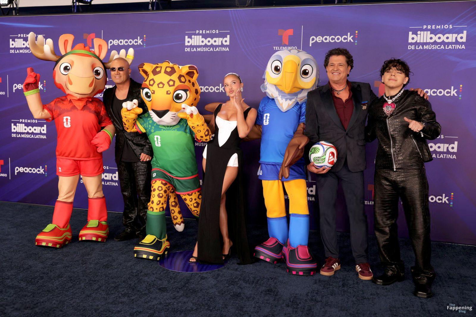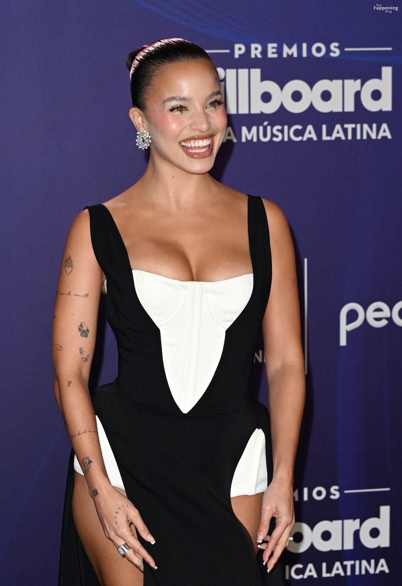 Emilia Mernes a assisté aux Billboard Latin Music Awards 2025 à Miami, arborant une robe noire et blanche avec une fente haute qui mettait en valeur sa poitrine généreuse et ses jambes toniques. Elle a foulé le tapis rouge au James L. Knight Center.