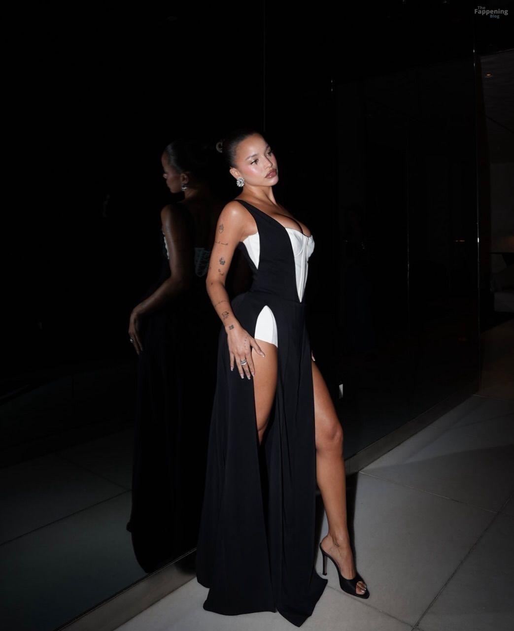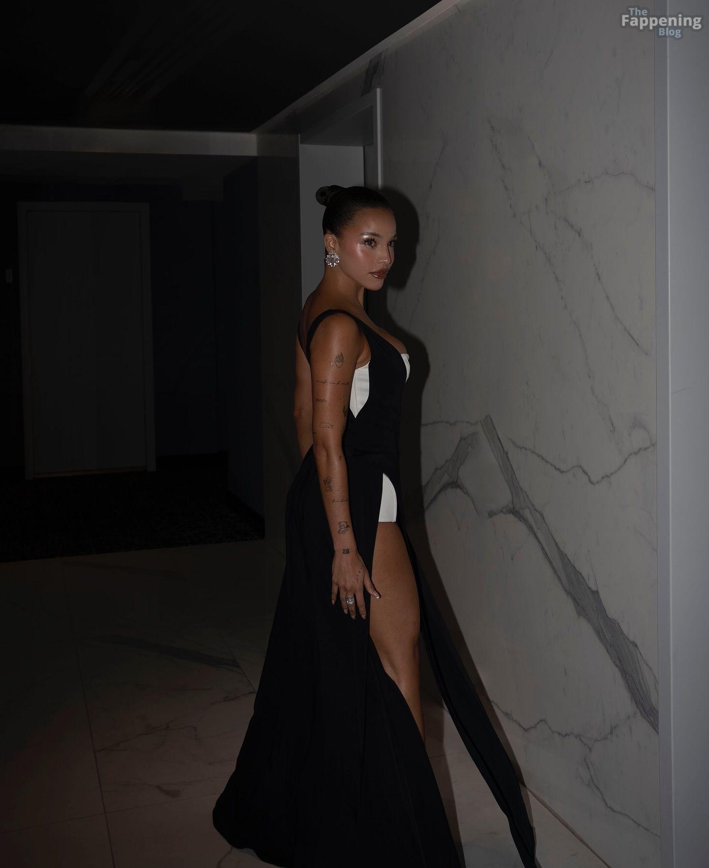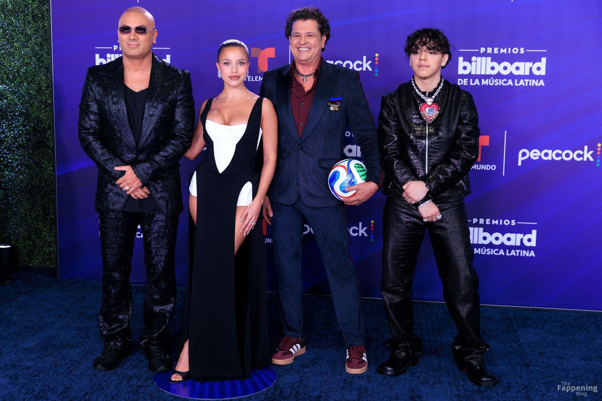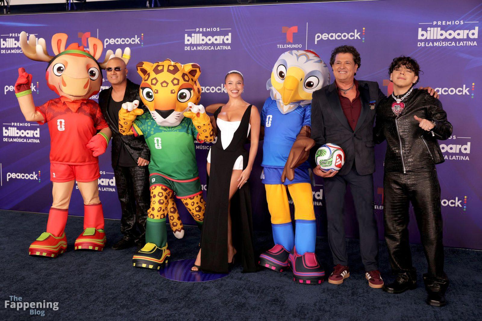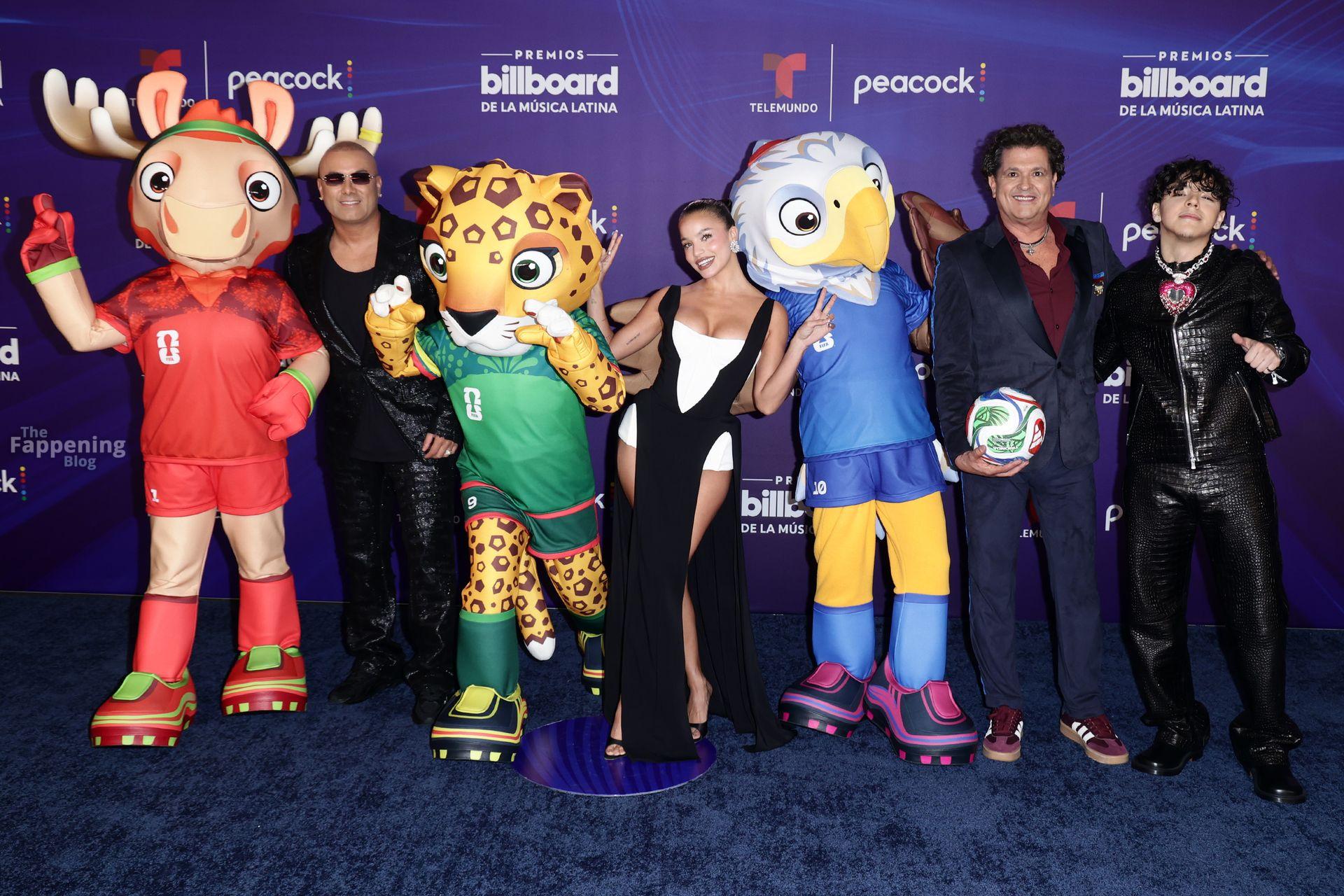 Emilia Mernes a assisté aux Billboard Latin Music Awards 2025 à Miami, arborant une robe noire et blanche avec une fente haute qui mettait en valeur sa poitrine généreuse et ses jambes toniques. Elle a foulé le tapis rouge au James L. Knight Center.
