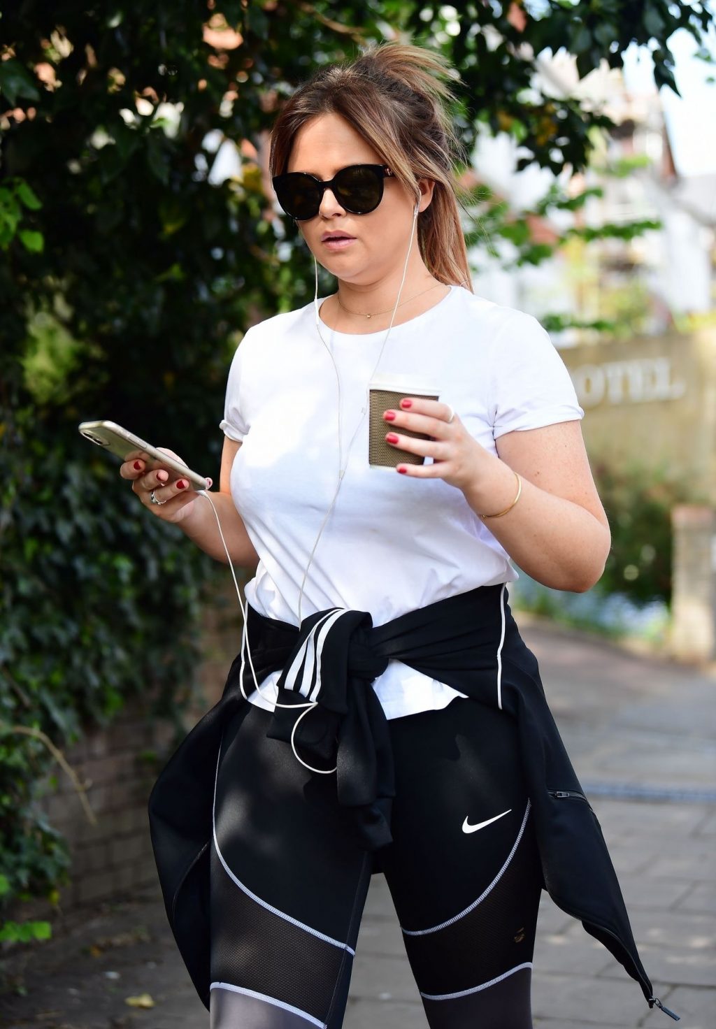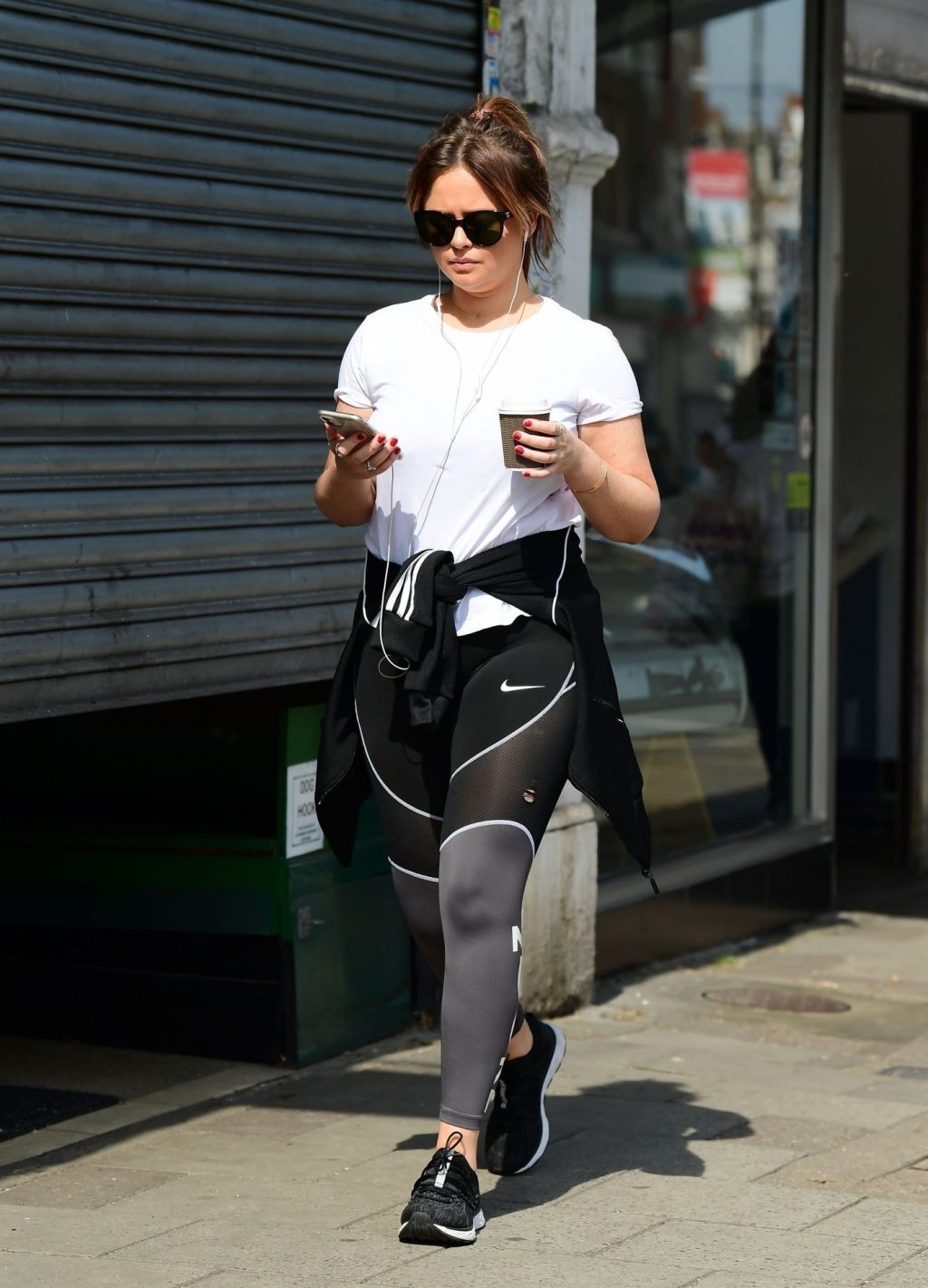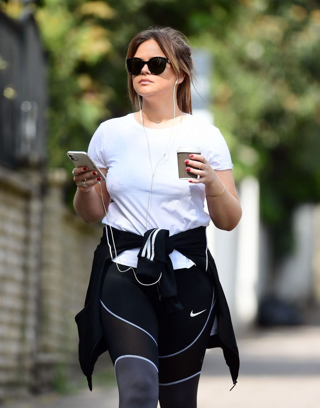 Actrice et star de The Fappening, Emily Atack a été photographiée avec un look sportif alors qu’elle était vue lors d’une promenade pendant le confinement dû au Coronavirus à Londres, le 16/04/2020.