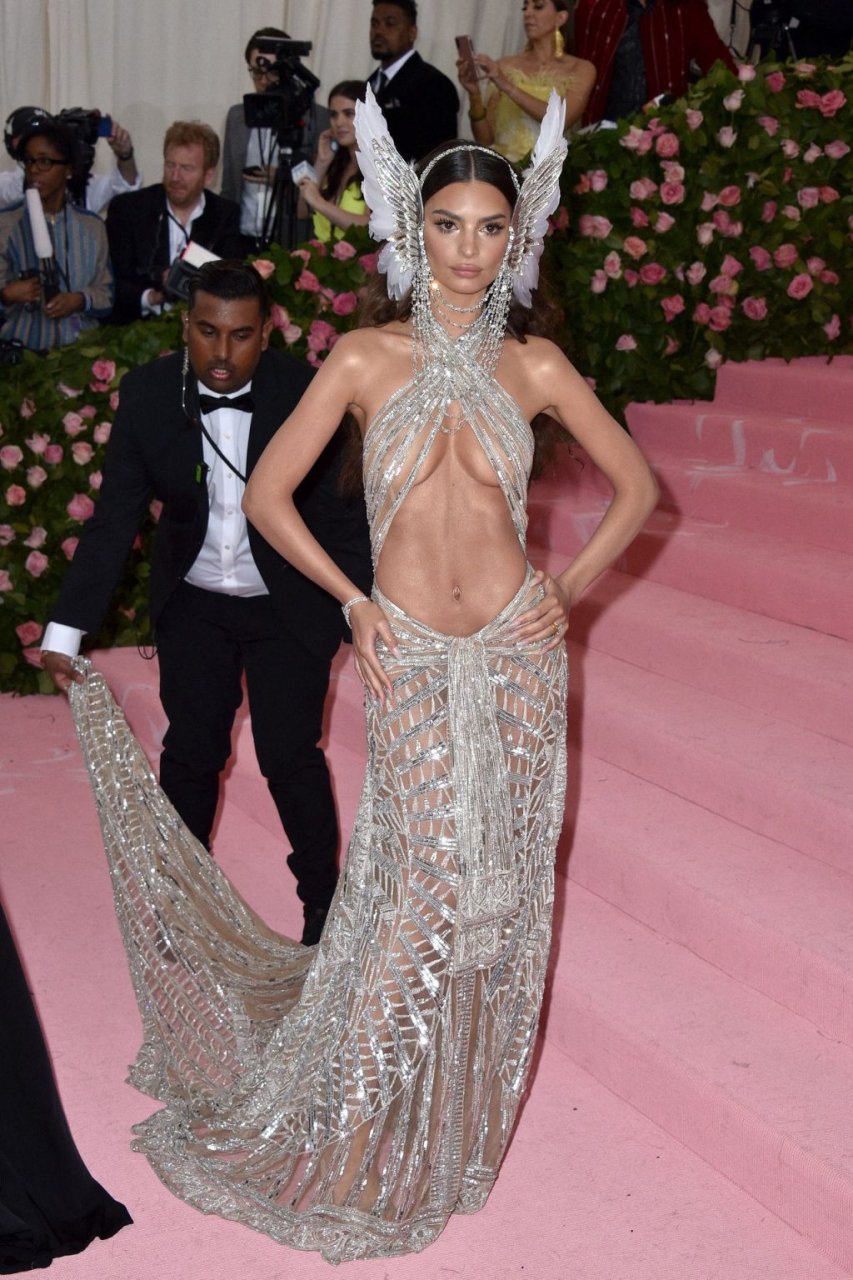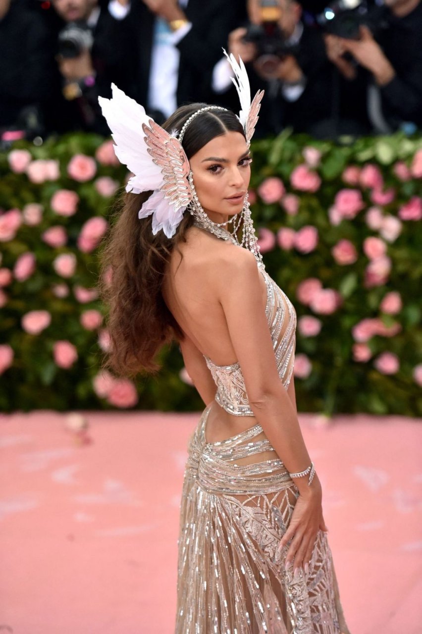Le mannequin/actrice Emily Ratajkowski affiche sa tenue époustouflante au MET Gala 2019 à New York, le 05/05/2019. Emily est apparue sur le tapis rose dans une robe révélatrice, ne couvrant que les parties les plus intéressantes. Le MET Gala est une fête costumée, donc le mannequin portait des oreilles d’elfe.