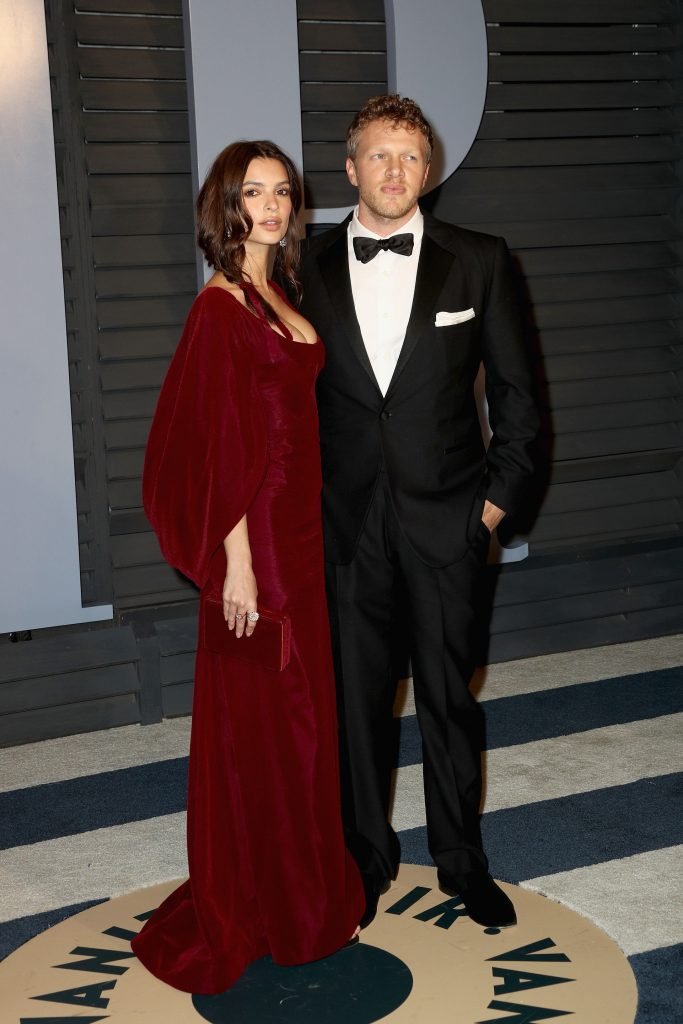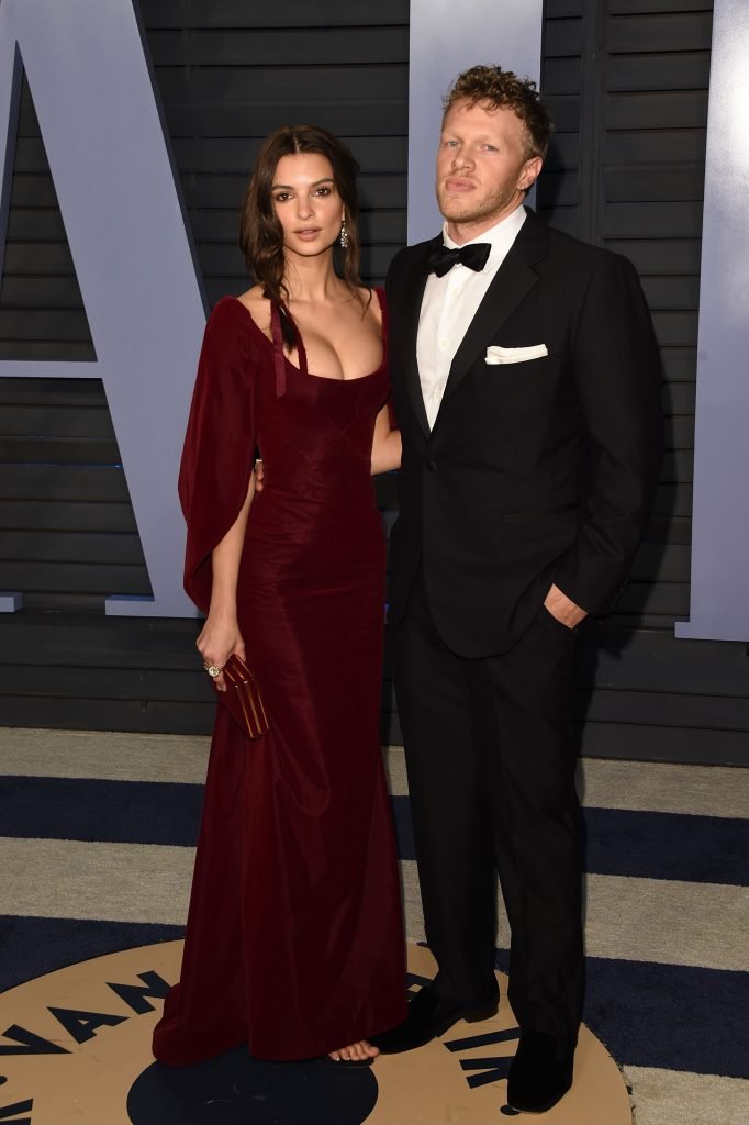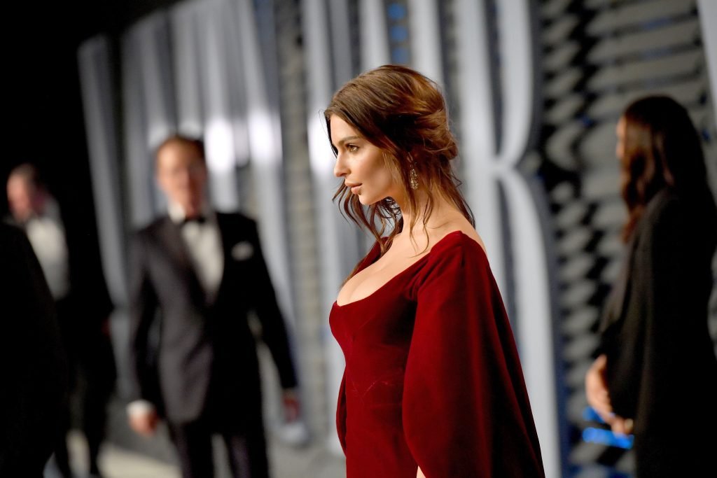 Le mannequin et actrice Emily Ratajkowski met en valeur son décolleté lors de la Vanity Fair Oscar Party 2018 à Beverly Hills, 03/04/2018.