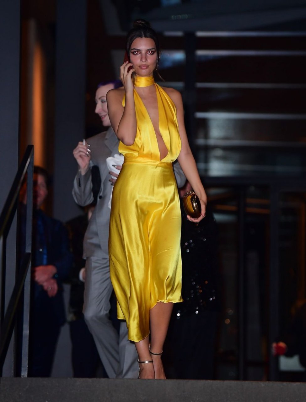 Le mannequin Emily Ratajkowski arrive avec son mari Sebastian Bear-McClard à la réception de mariage de Marc Jacobs et Char Defrancesco à New York, le 03/06/2019.