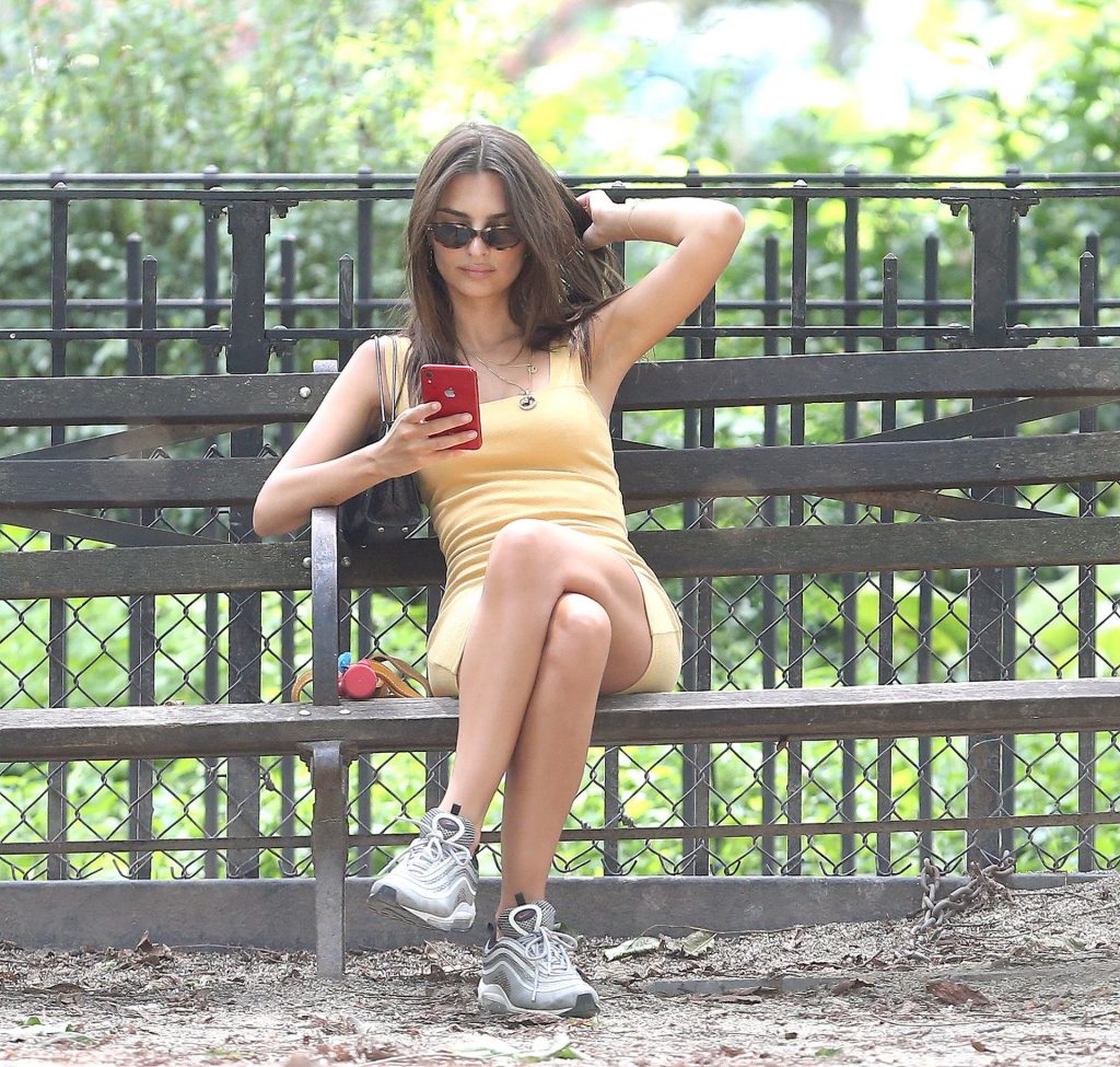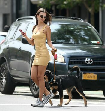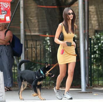 Emily Ratajkowski a été aperçue en promenant son chien Colombo dans un parc pour chiens à New York, le 08/02/2019. Le mannequin bikini de 28 ans et actrice occasionnelle portait une robe jaune moulante et des baskets Nike.