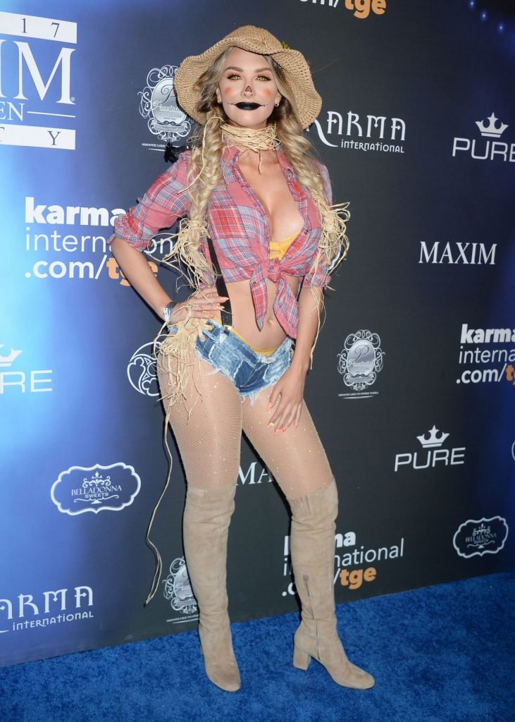 Emily Sears porte un costume sexy d\’épouvantail à la fête d\’Halloween Maxim 2017 à LA, le 21/10/2017. Emily Sears est un mannequin australien, star en ligne. Âge – 32 ans.