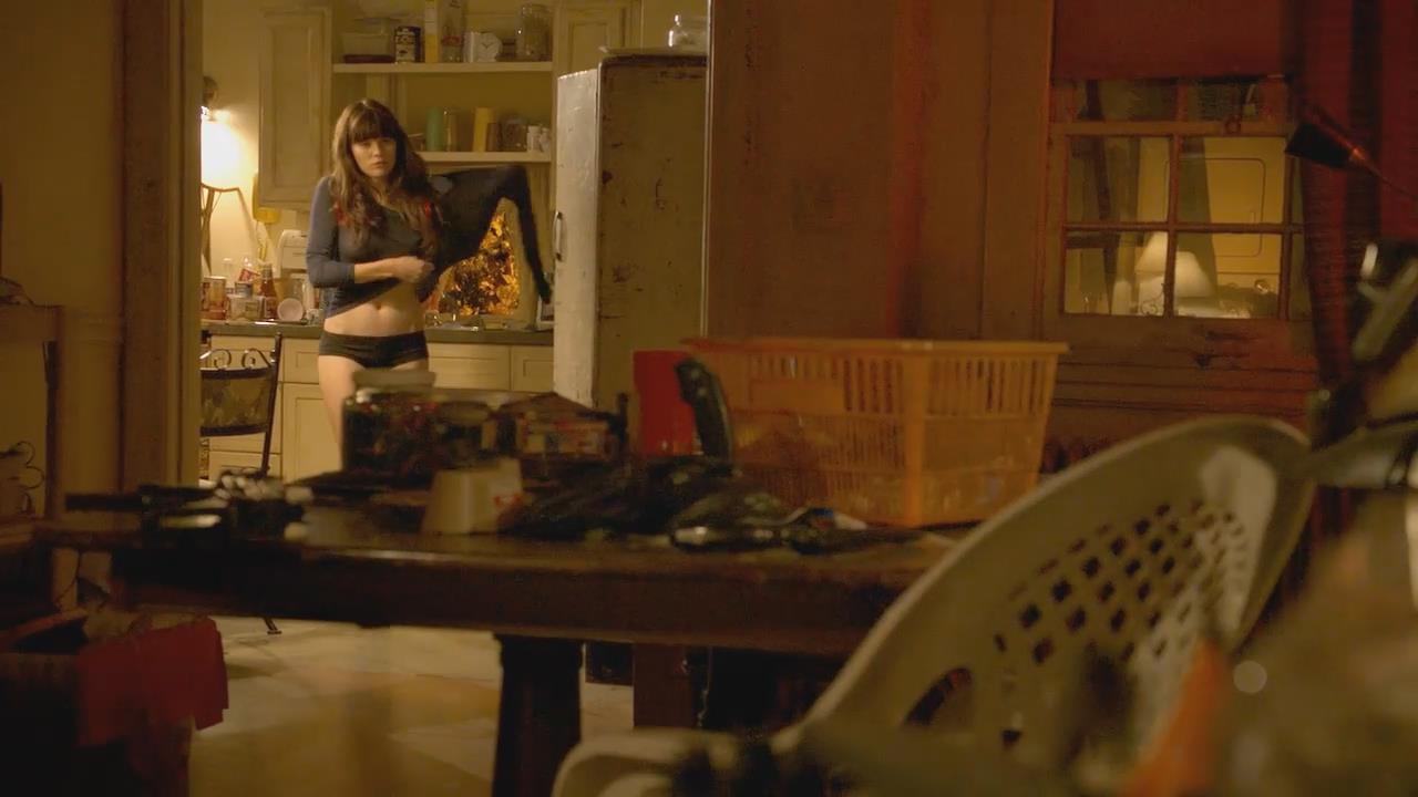 Emma se réveille dans son lit et s’assoit topless. Nous la voyons ensuite traverser une autre pièce en portant une paire de culottes noires tout en enfilant une chemise.
