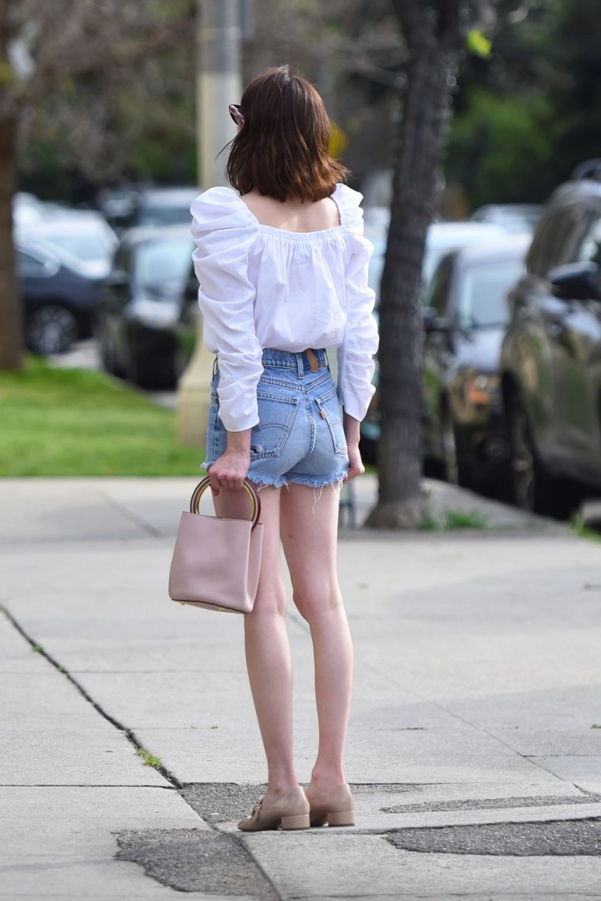 Actrice Emma Roberts (28 ans) a été vue dans la rue, portant un short en jean et montrant ses jambes sexy aux photographes – Los Angeles, 14/04/2019.
