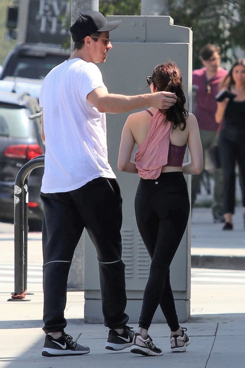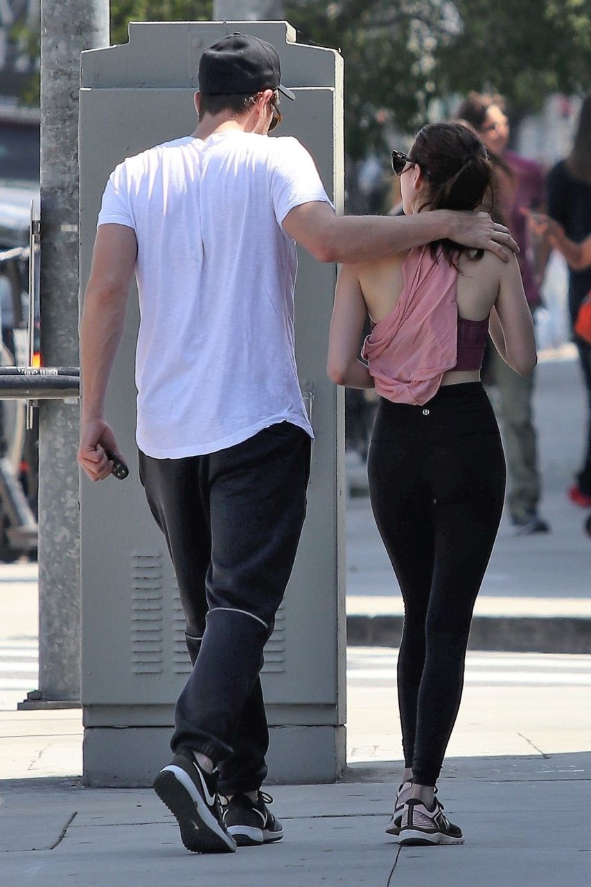 L’actrice/chanteuse Emma Roberts et Garrett Hedlund affichent un peu de tendresse en public après une séance de sport à Los Angeles, 17/07/2019.