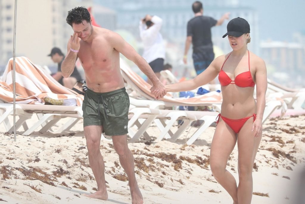 La star de The Fappening Emma Slater et Sasha Farber ont été aperçus en vacances à Cancun, le 24/03/2019. Les deux danseurs se baignent dans l’eau puis font une promenade romantique sur la plage. Emma montre ses fesses et sa poitrine dans un bikini rouge sexy.