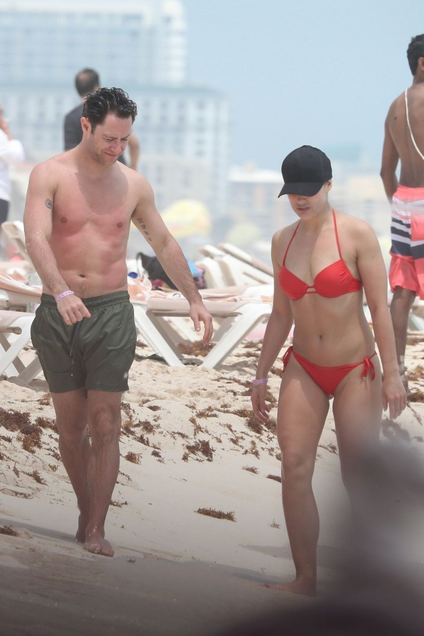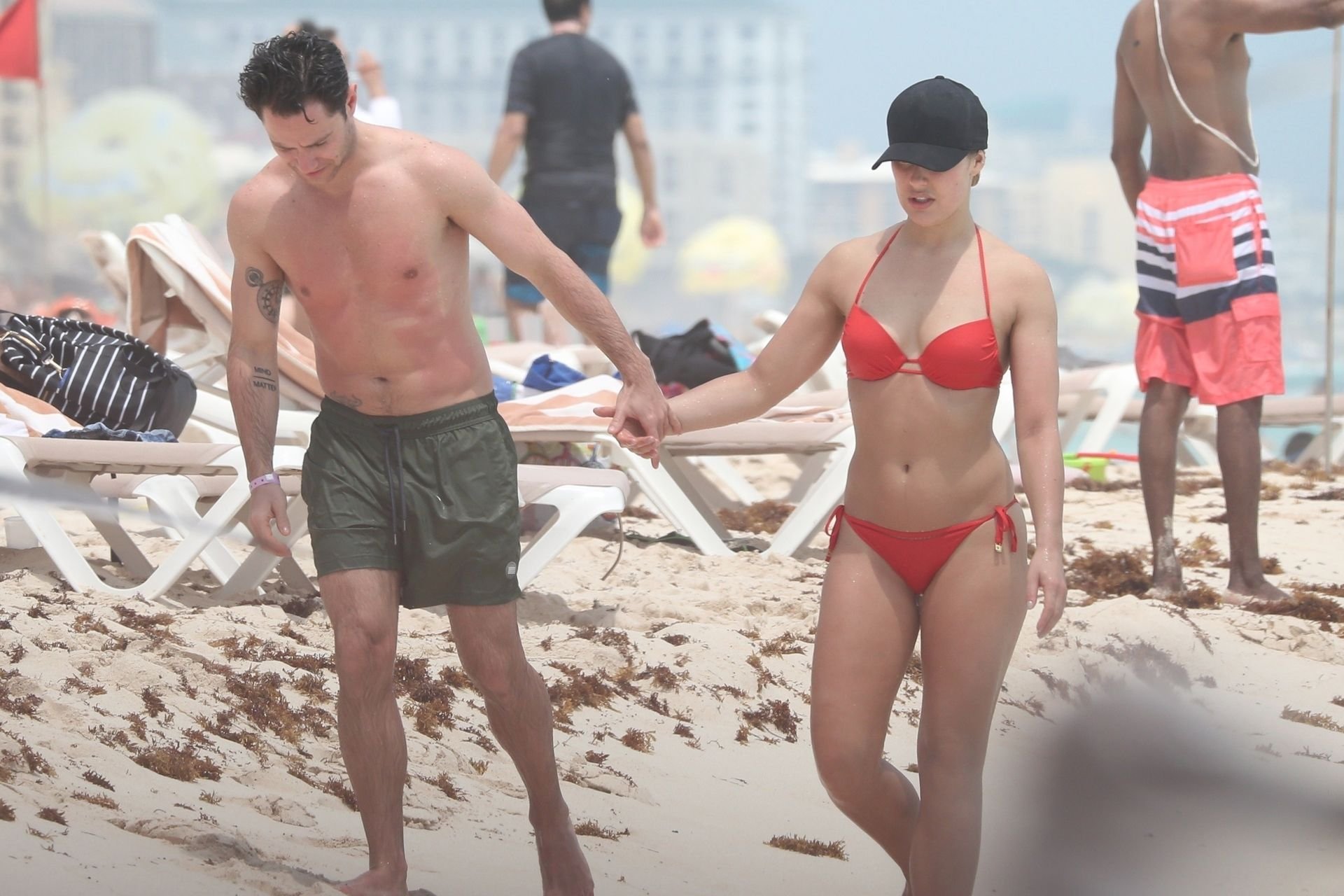 La star de The Fappening Emma Slater et Sasha Farber ont été aperçus en vacances à Cancun, le 24/03/2019. Les deux danseurs se baignent dans l’eau puis font une promenade romantique sur la plage. Emma montre ses fesses et sa poitrine dans un bikini rouge sexy.