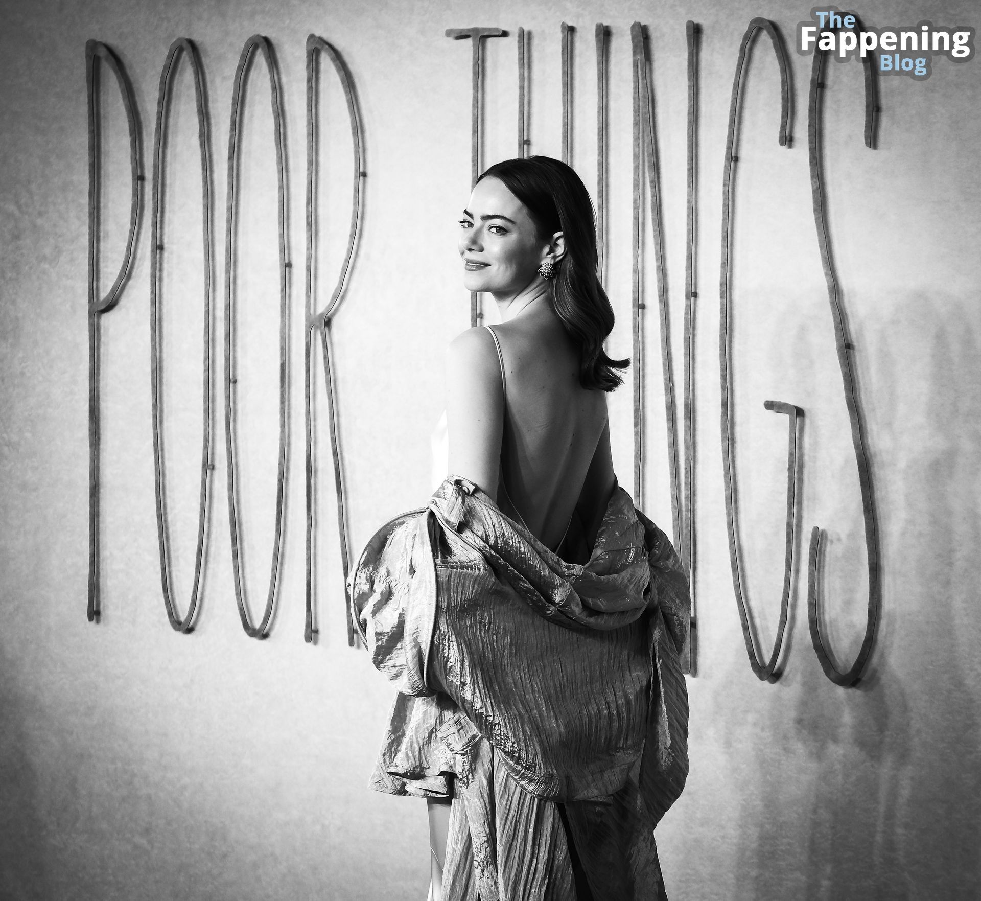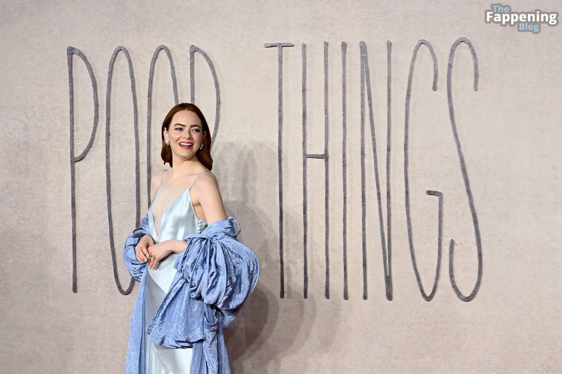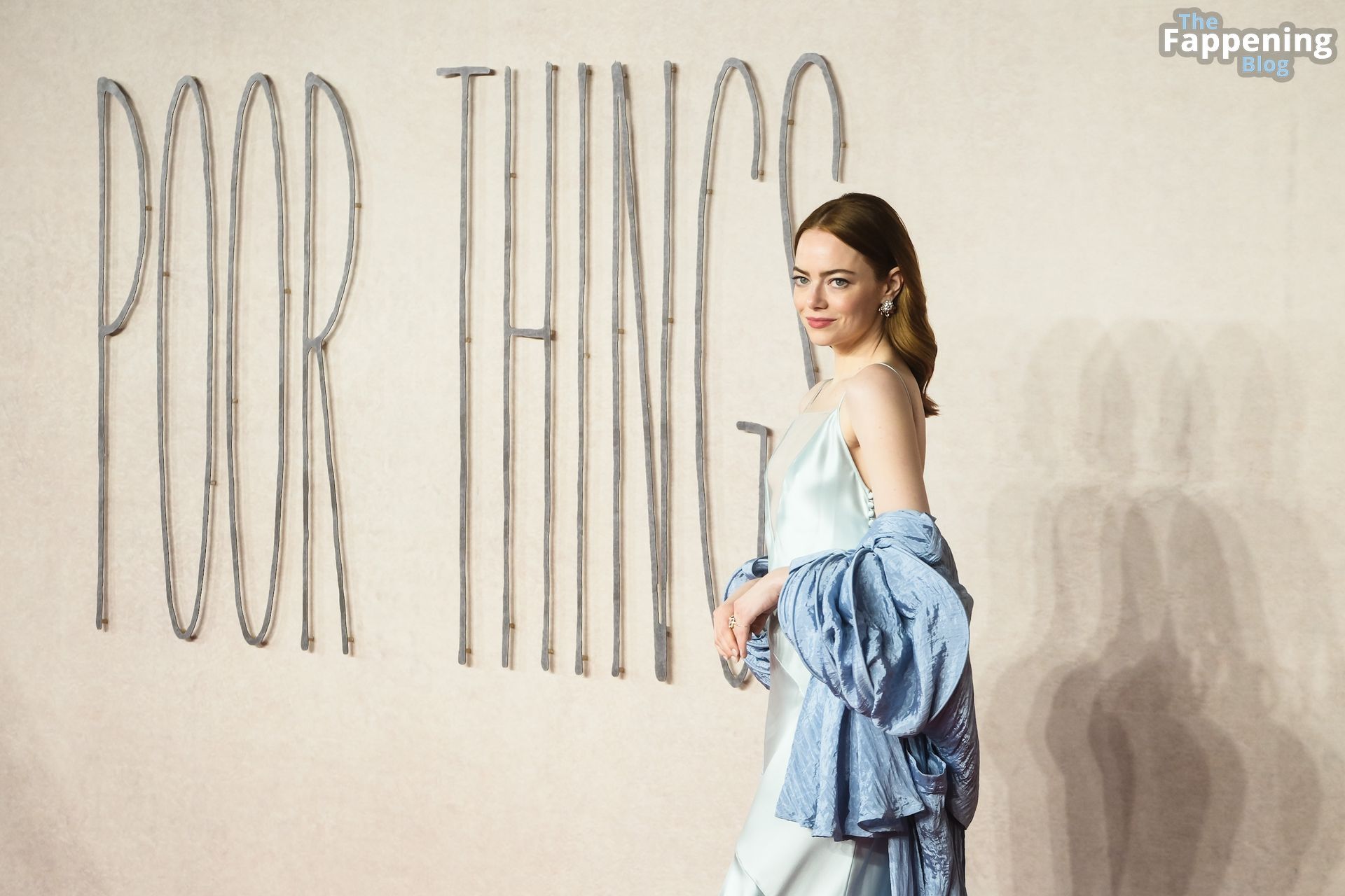Le membre du casting Emma Stone assiste au tapis rouge pour la première du film “Poor Things”, lauréat du Lion d’Or de Venise, au Barbican Centre à Londres, le 14/12/2023.