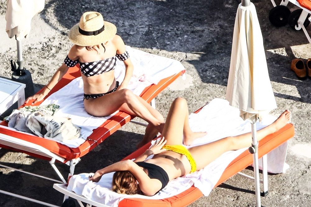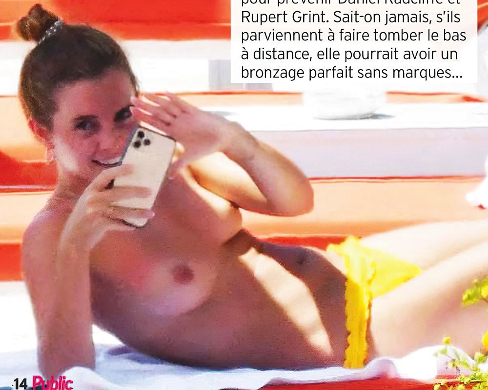 English actress Emma Watson was seen in Positano. She enjoyed the sunshine on her holidays in the picturesque village in Italy. She was out with a friend and sunbathed in her skimpy little outfit. Emma Watson lounged on her sunbed and tried to cool off from the heat. But her ass wanted out. So she showed nude ass while trying to fix the bikini. Also, in several pics, we can see Emma trying to reach something, as she showed whole nude boobs seen from the paparazzi perspective! Well done!