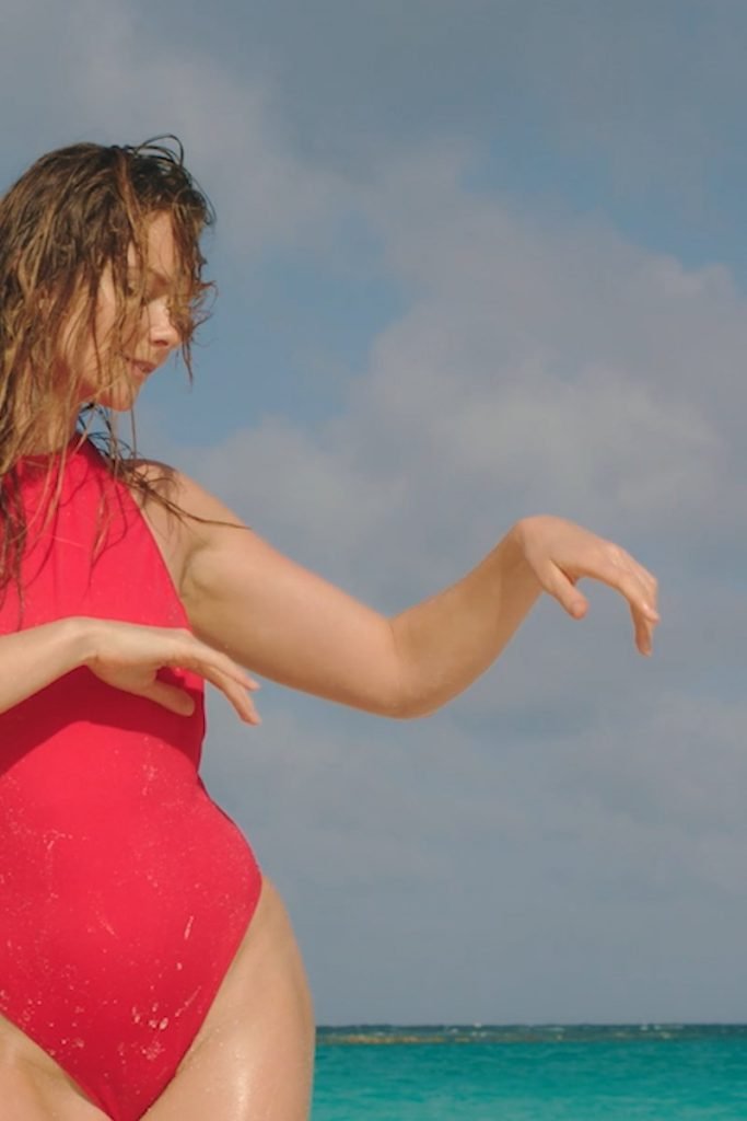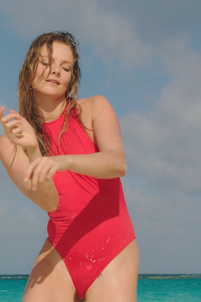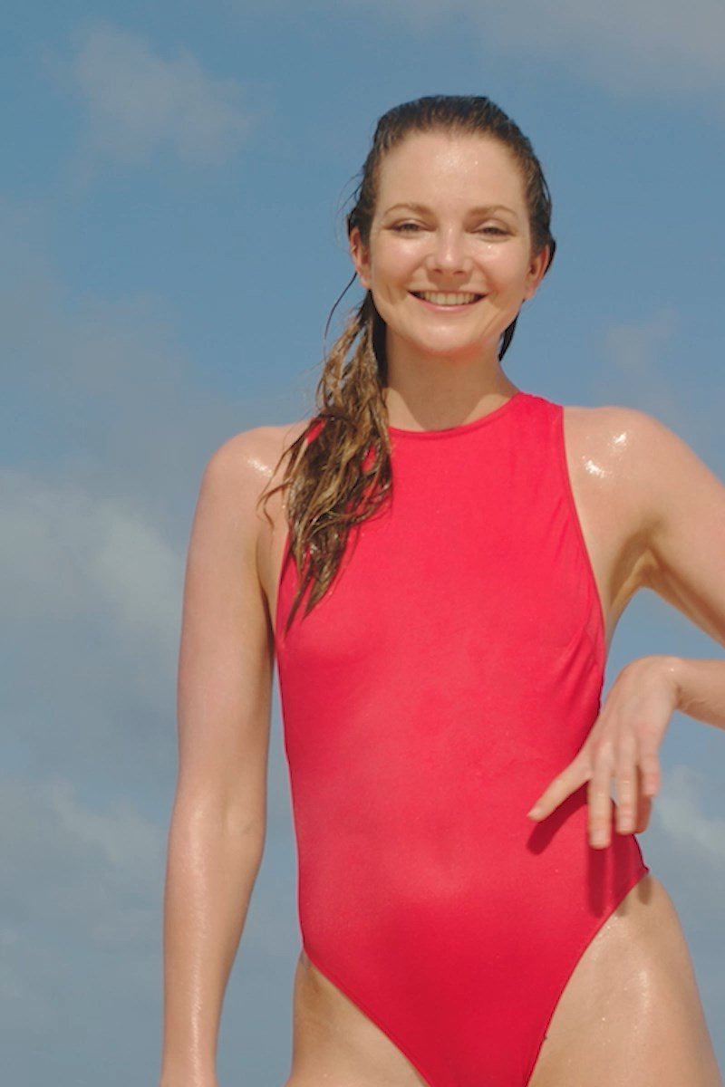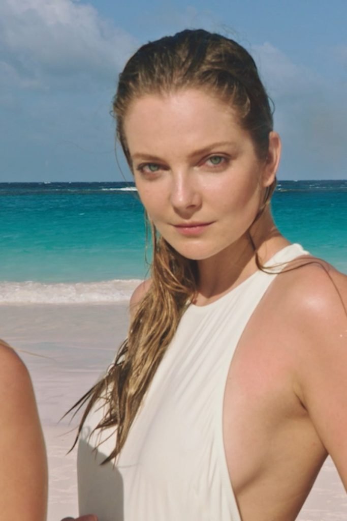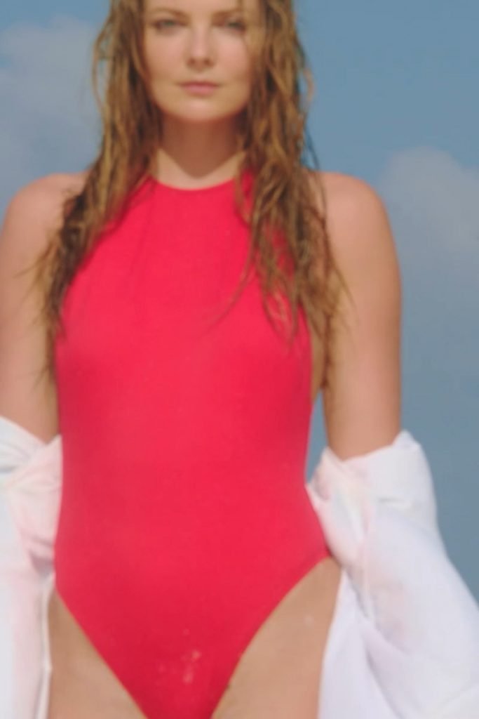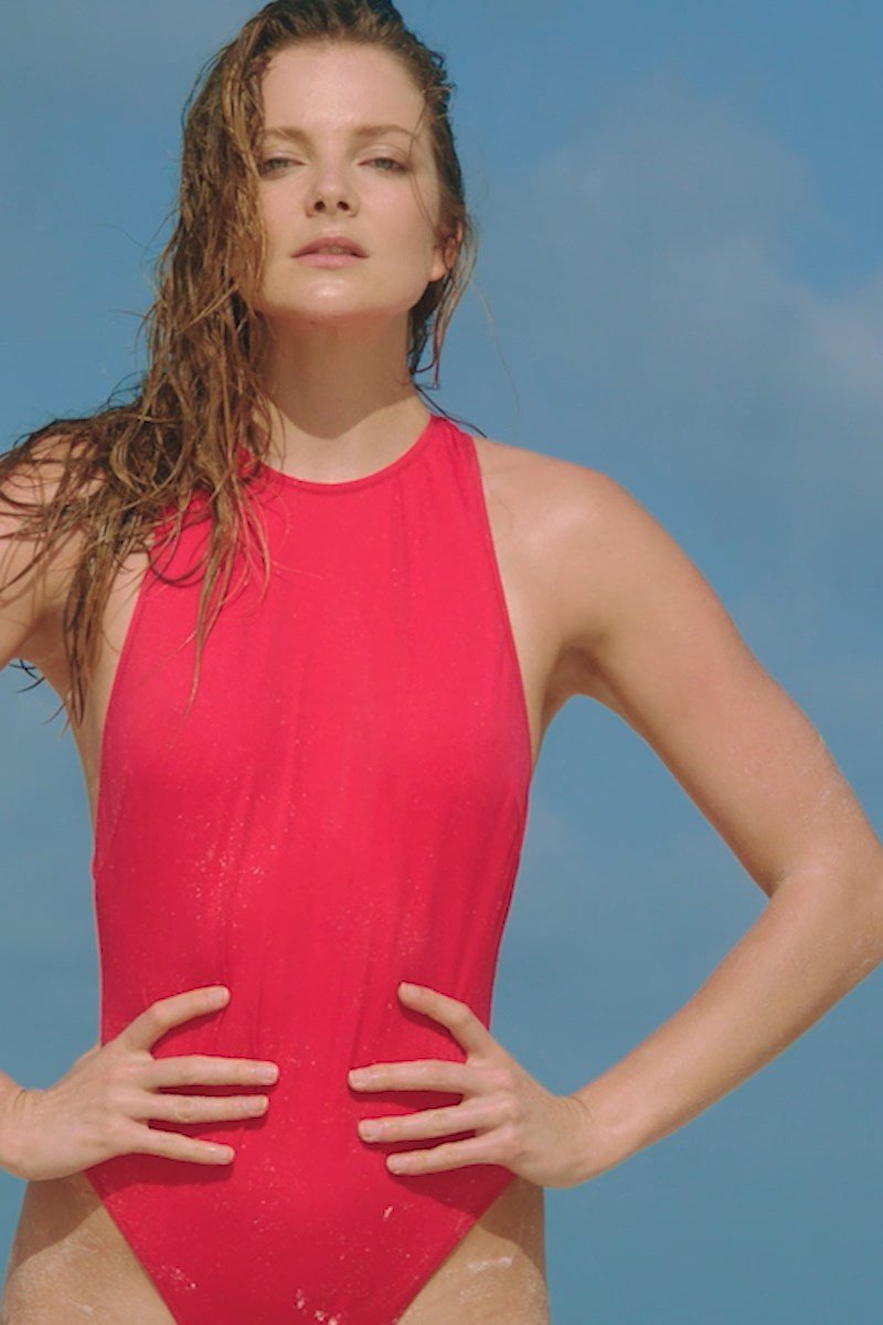 Eniko Mihalik porte un maillot de bain rouge pour la séance photo Solid & Striped (2018). Enikő Mihalik est un top modèle de mode. Âge – 30 ans.