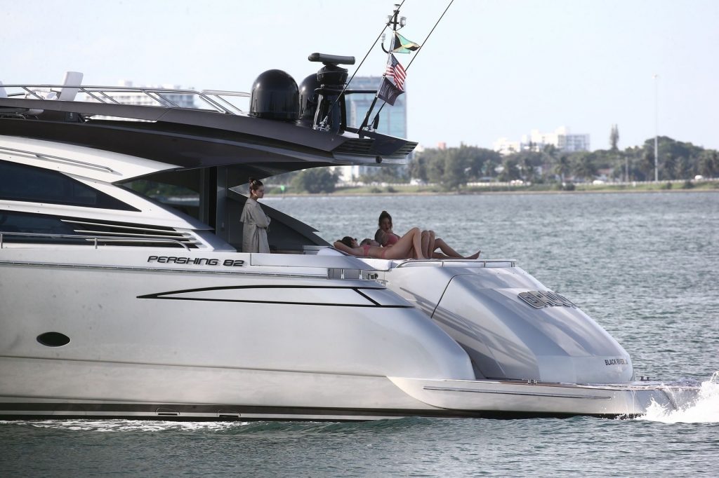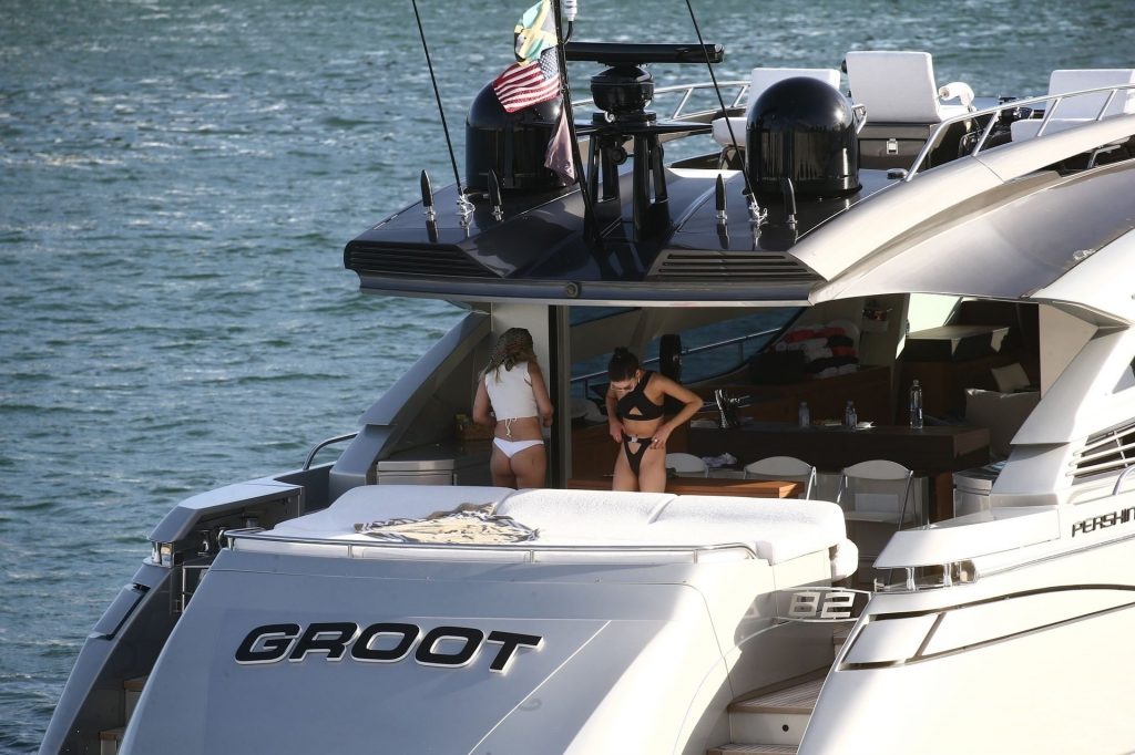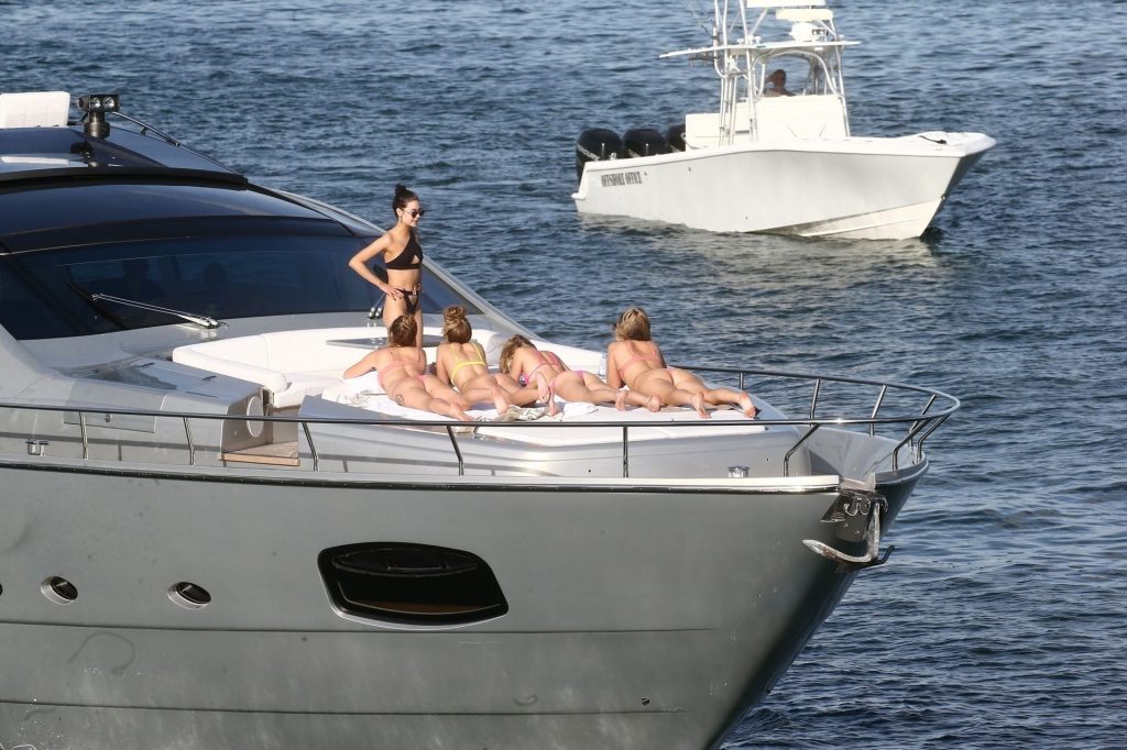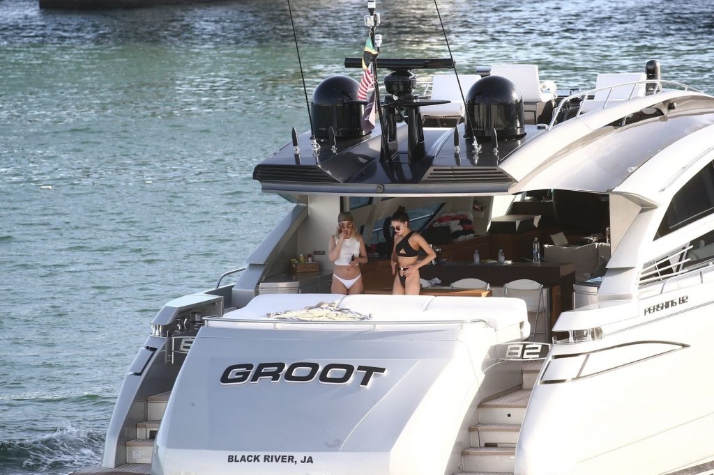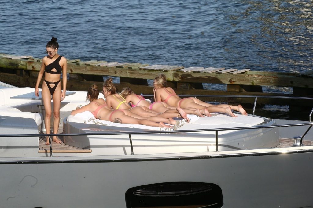 La célèbre YouTubeuse Erika Costell célèbre son 27e anniversaire à bord d’un yacht à Miami Beach avec la blogueuse Amanda Steele et des amis, le 12/11/2019. Amanda pose pour des photos en bikini noir tandis que la fille d’anniversaire Erika sirote une boisson en bronzant avec ses amis.