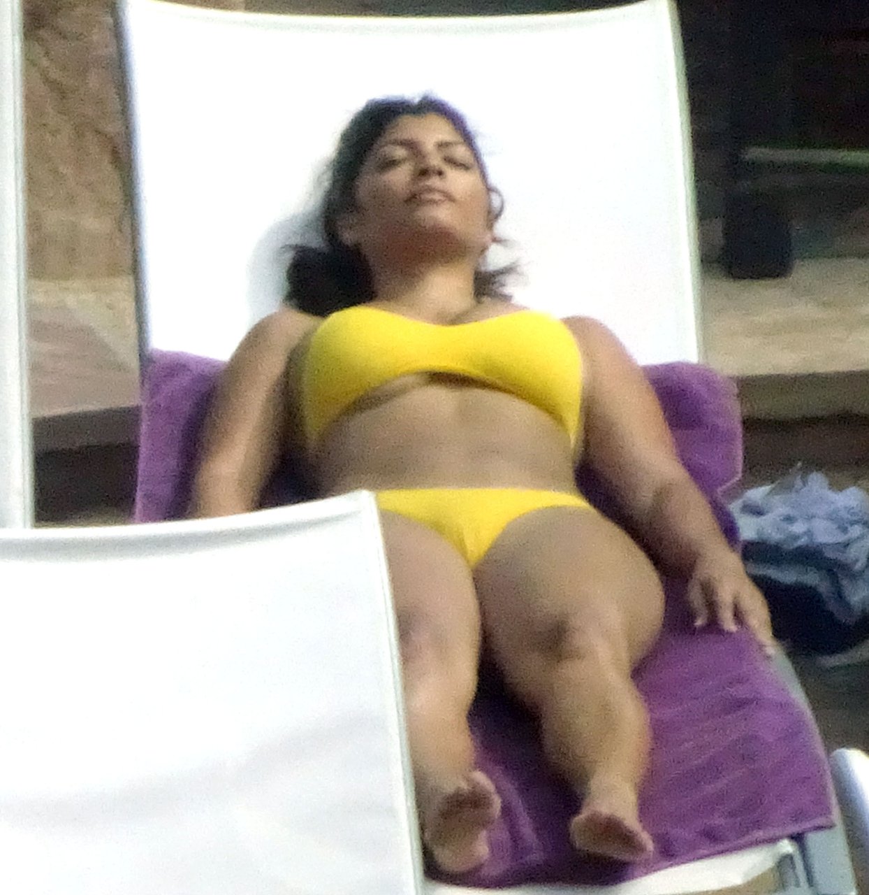 L’actrice mexicaine (iCarly, 90210) et mannequin Erika Medina exhibe ses courbes super sexy alors qu’elle contient à peine ses atouts dans un bikini jaune vif lors de ses vacances à Las Vegas, le 28/06/2018. La star latine de 33 ans se détendait sous le soleil brûlant dans son hôtel de luxe à Sin City tandis que certains autres invités de la piscine ne pouvaient pas détourner les yeux d’elle alors qu’elle bronzait sous une chaleur de plus de 100 degrés.