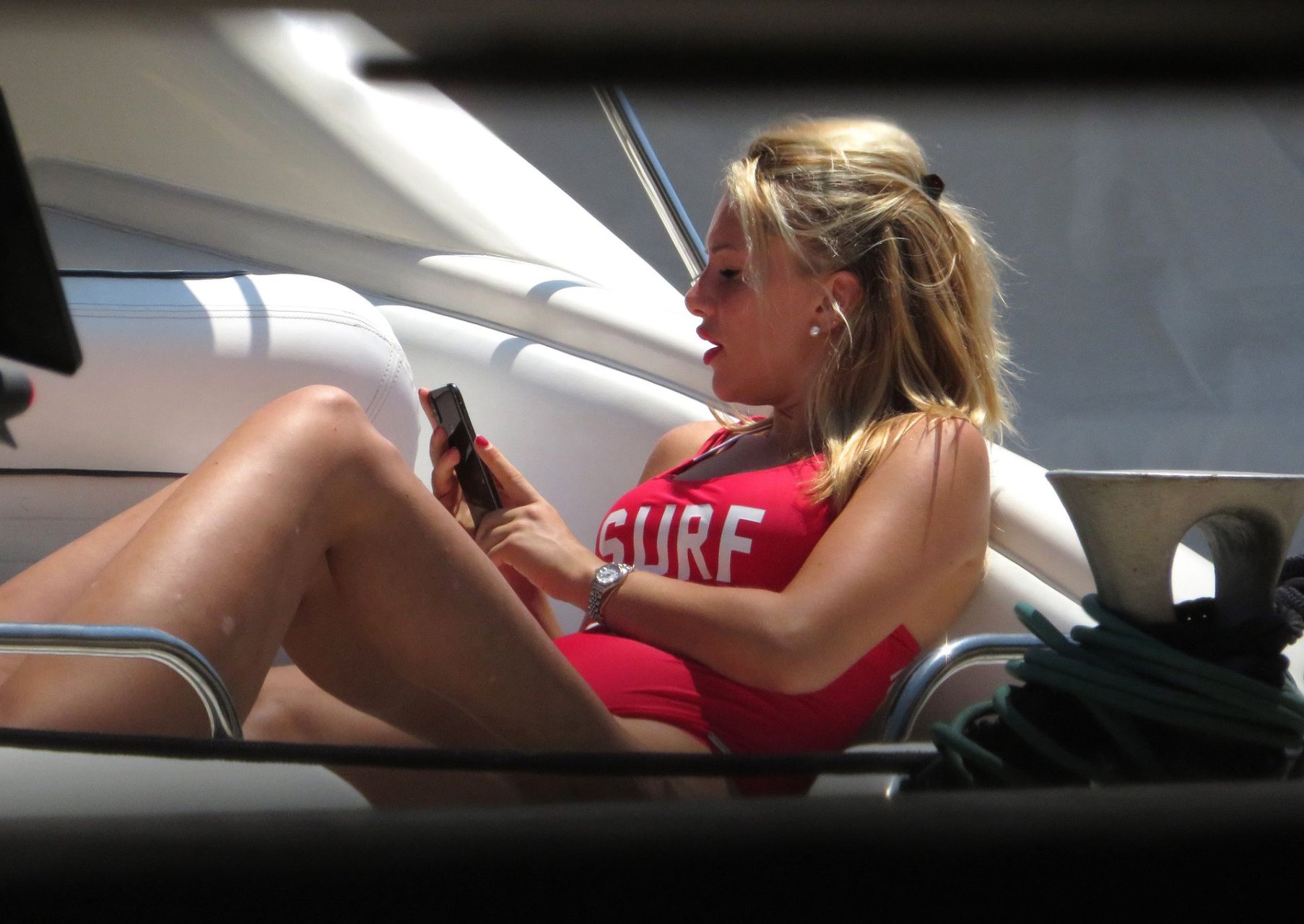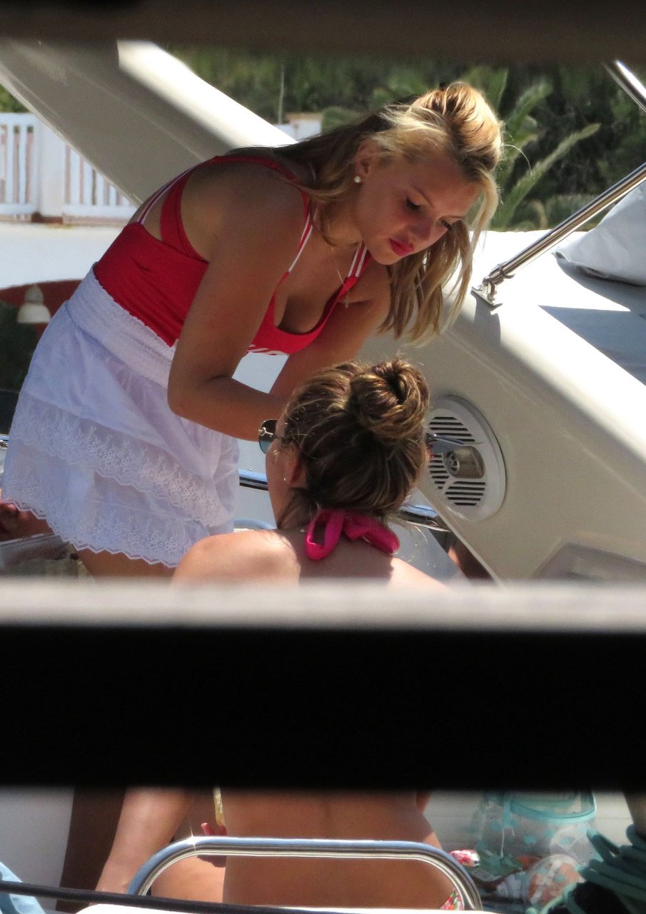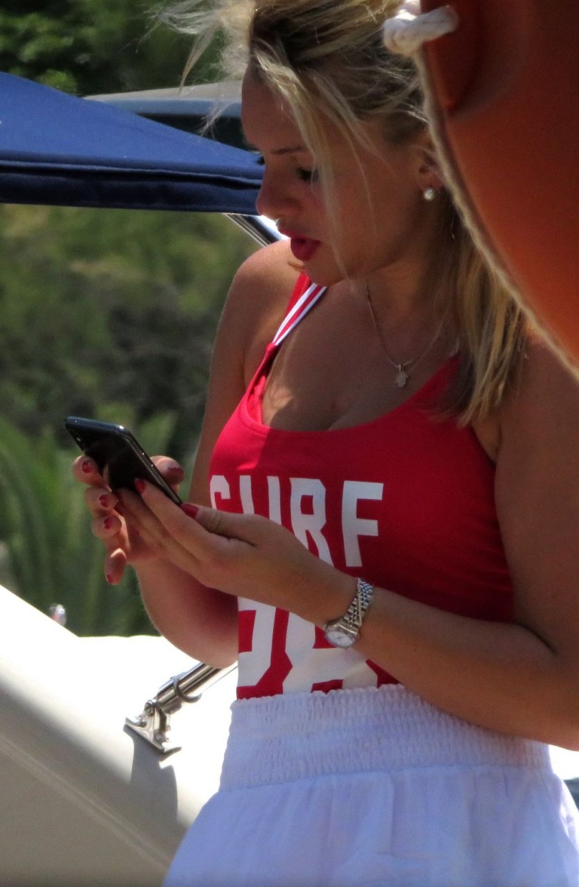 La star allemande de la télé-réalité Evelin Burdecki passe une journée sur un yacht avec des amis pendant ses vacances à Majorque, 10/06/2019.