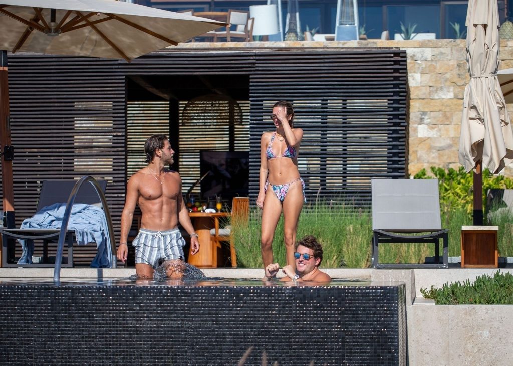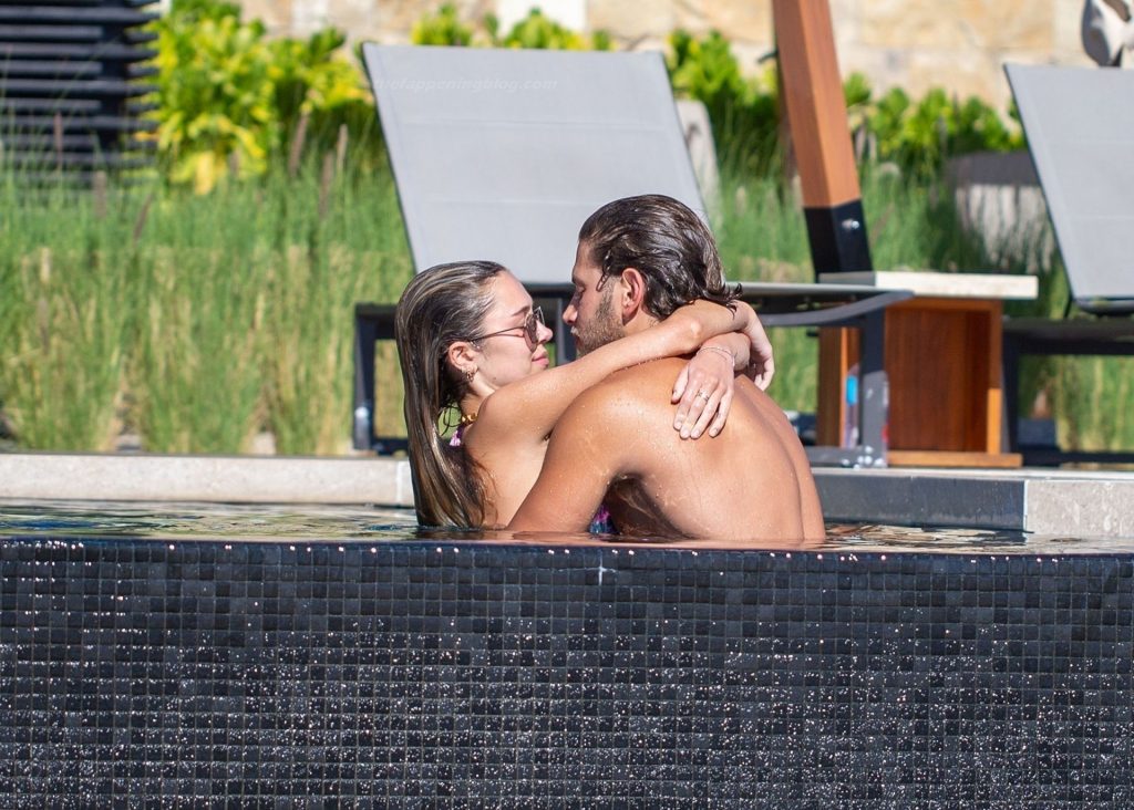 La fille de l’acteur Harry Hamlin, Delilah, a montré sa silhouette sexy et sensuelle dans un bikini à motifs multicolores et Eyal portait son short rayé. Le couple a profité d’un peu de PDA ensemble au bord de la piscine.
