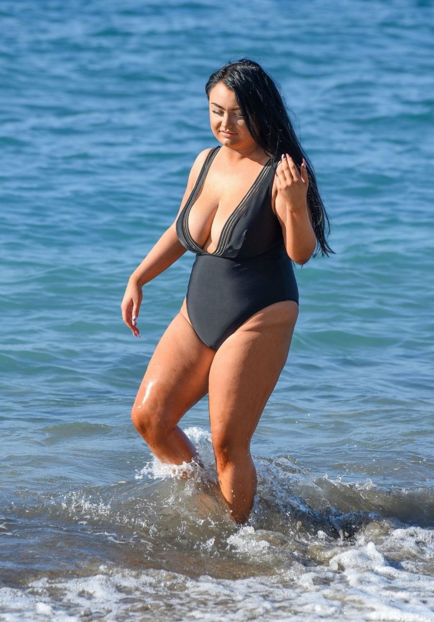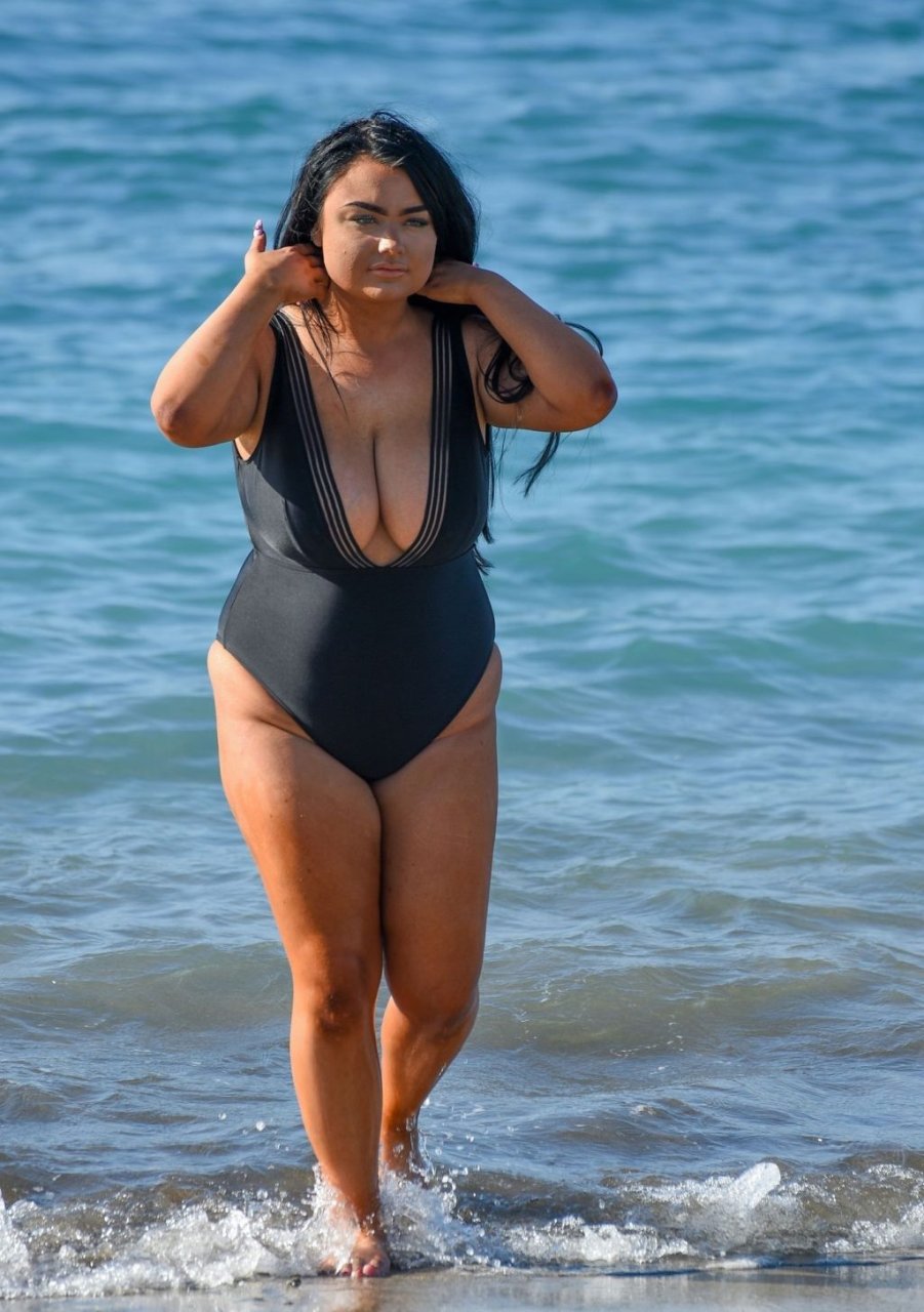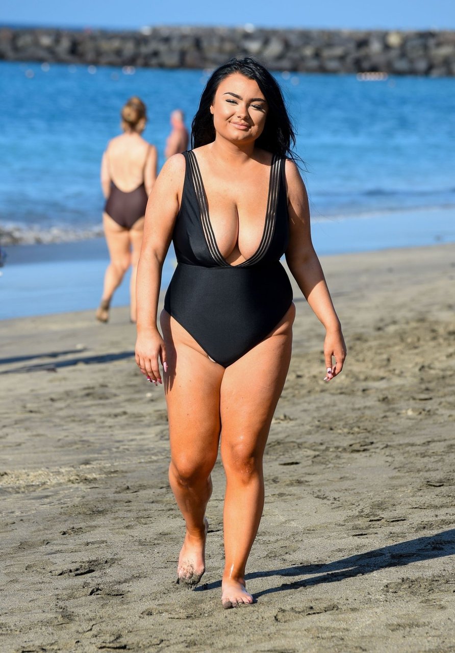 La star de “Geordie Shore” Faith Mullen est vue sur la plage à Tenerife après avoir révélé dans le magazine Closer de cette semaine qu’elle est heureuse d’être une taille 14.