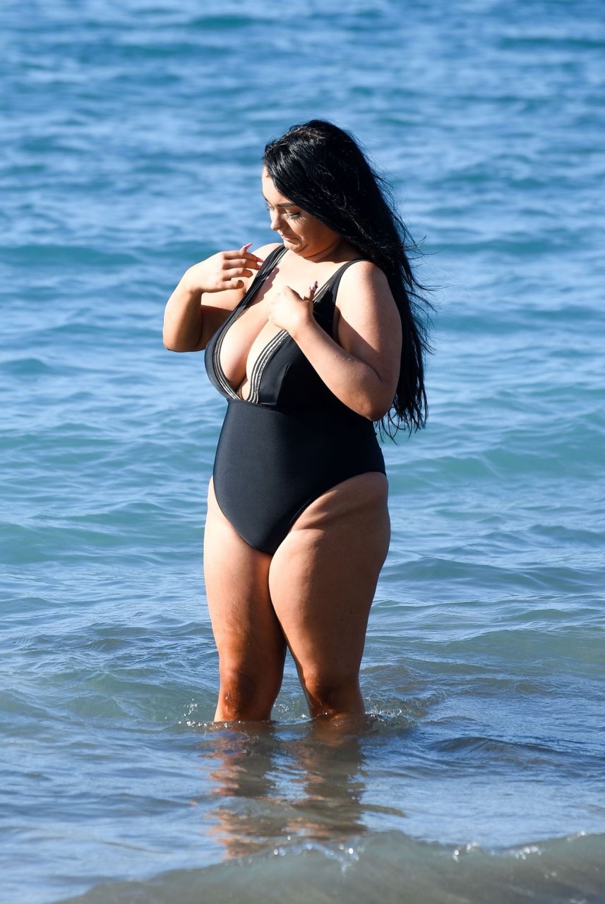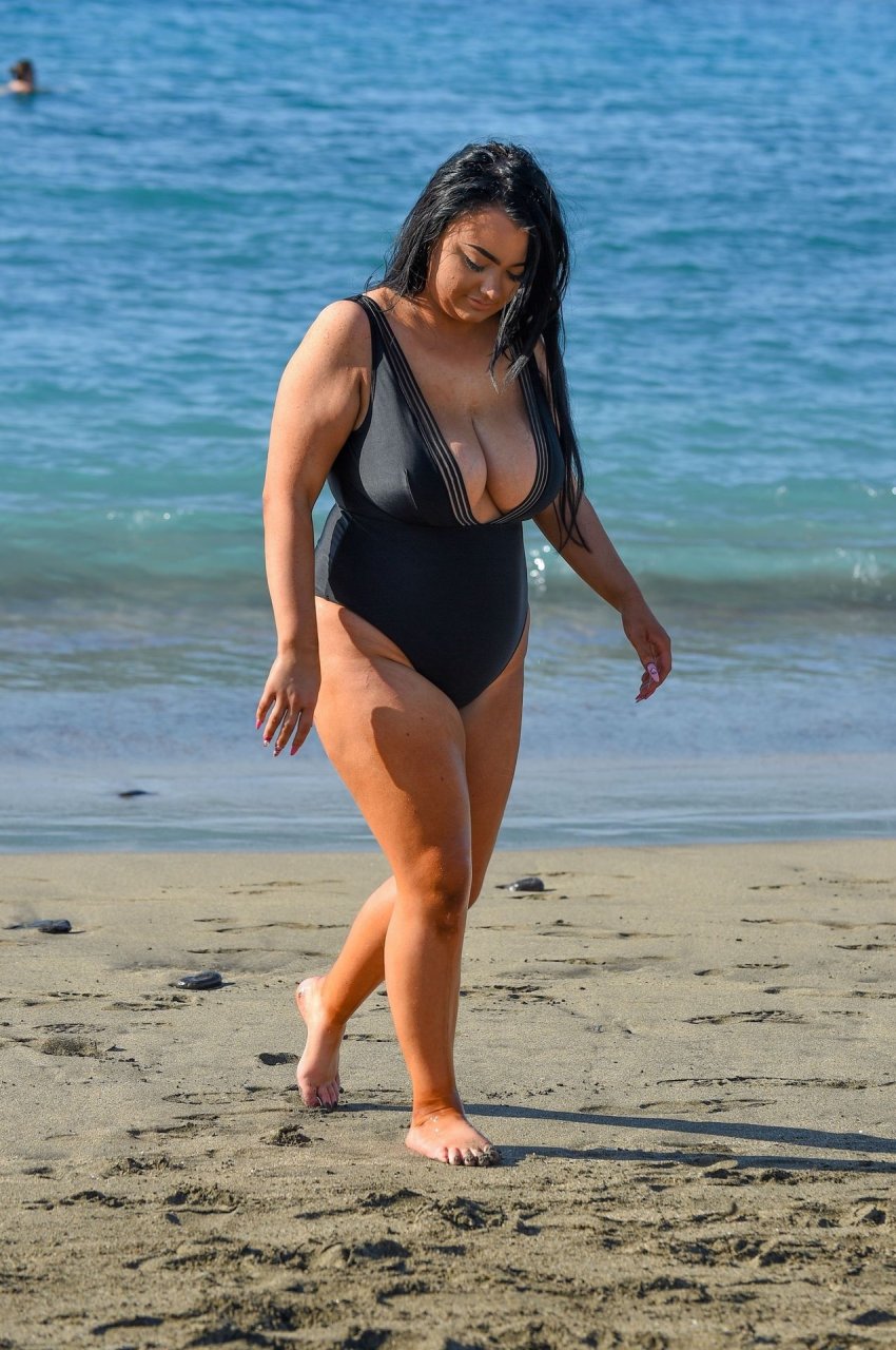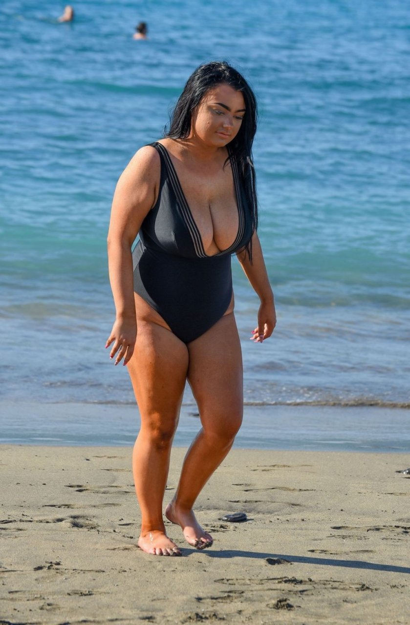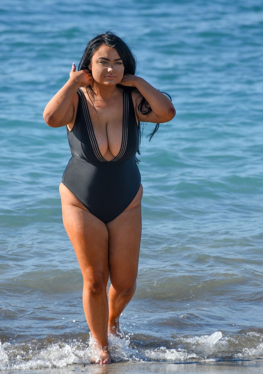 La star de “Geordie Shore” Faith Mullen est vue sur la plage à Tenerife après avoir révélé dans le magazine Closer de cette semaine qu’elle est heureuse d’être une taille 14.