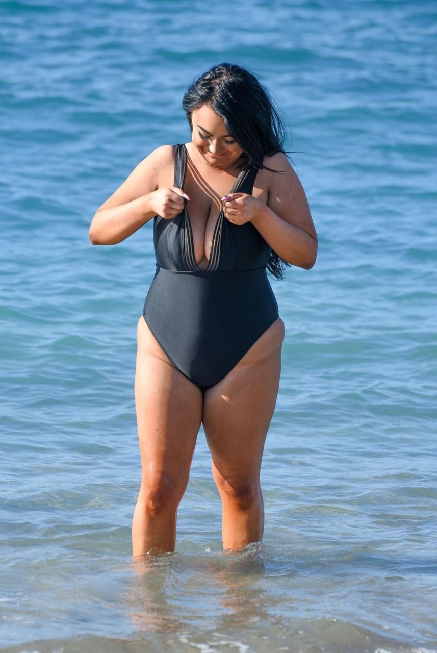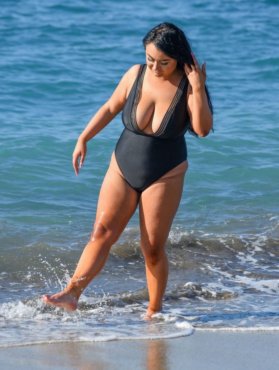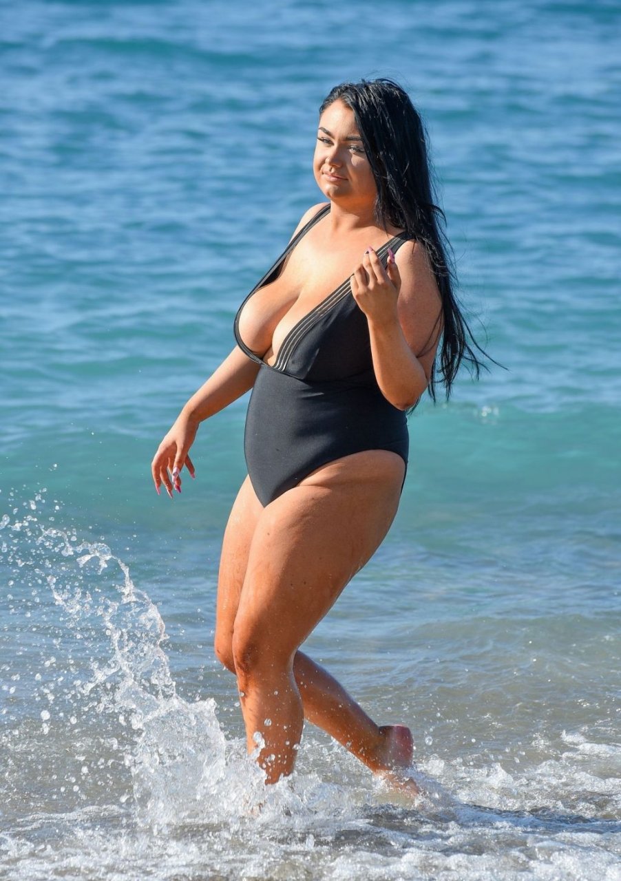 La star de la télé-réalité se sent plus confiante avec moins de vêtements et a également déclaré qu’on l’avait appelée grosse pour la première fois à l’âge de 3 ans. Faith est vue dans un maillot de bain noir qui met en valeur ses courbes tandis qu’elle s’amuse dans la mer.