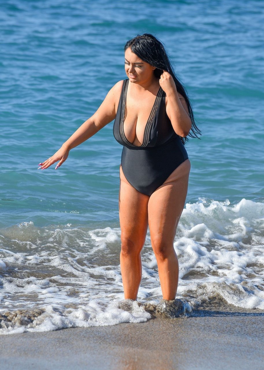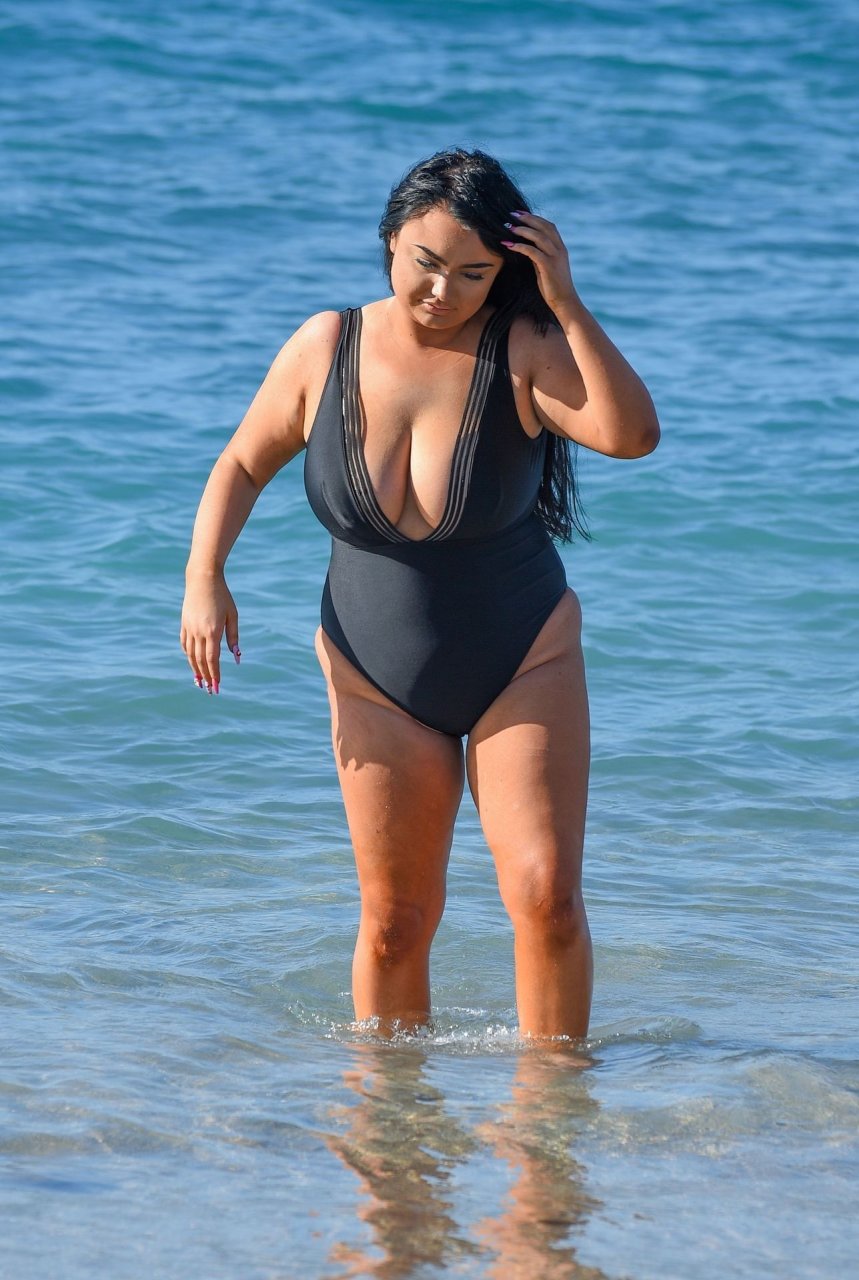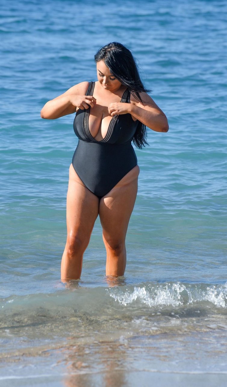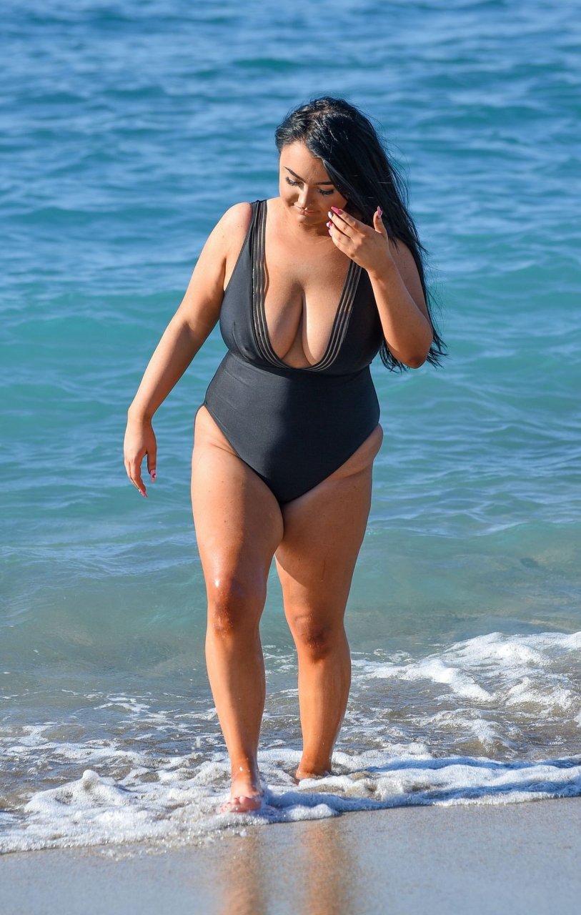 La star de la télé-réalité se sent plus confiante avec moins de vêtements et a également déclaré qu’on l’avait appelée grosse pour la première fois à l’âge de 3 ans. Faith est vue dans un maillot de bain noir qui met en valeur ses courbes tandis qu’elle s’amuse dans la mer.