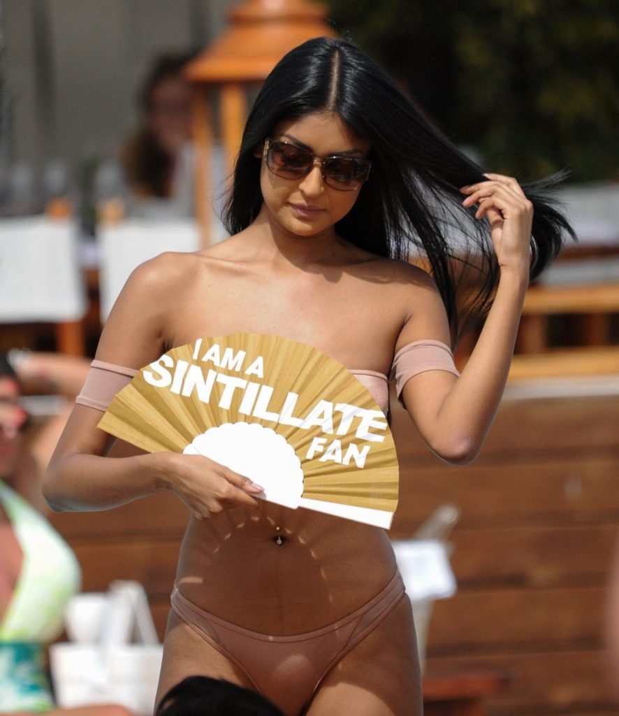 Farah Sattaur est très sexy sous le soleil espagnol lors de la pool party Sintillate à Nikki Beach à Ibiza. Farah Sattaur est une star britannique de la télé-réalité (Ex On The Beach). Âge – 31 ans (née le 11 décembre 1985).