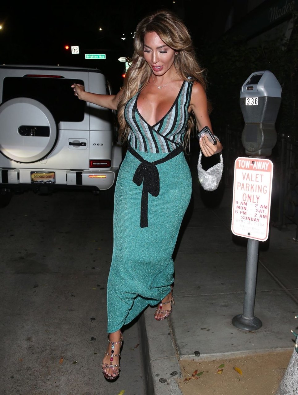 Ancienne “Teen Mom” et star du porno, Farrah Abraham affiche sa superbe silhouette dans une robe bleue brillante alors qu’elle est aperçue quittant Madeo après le dîner à Beverly Hills, le 12/07/2019.