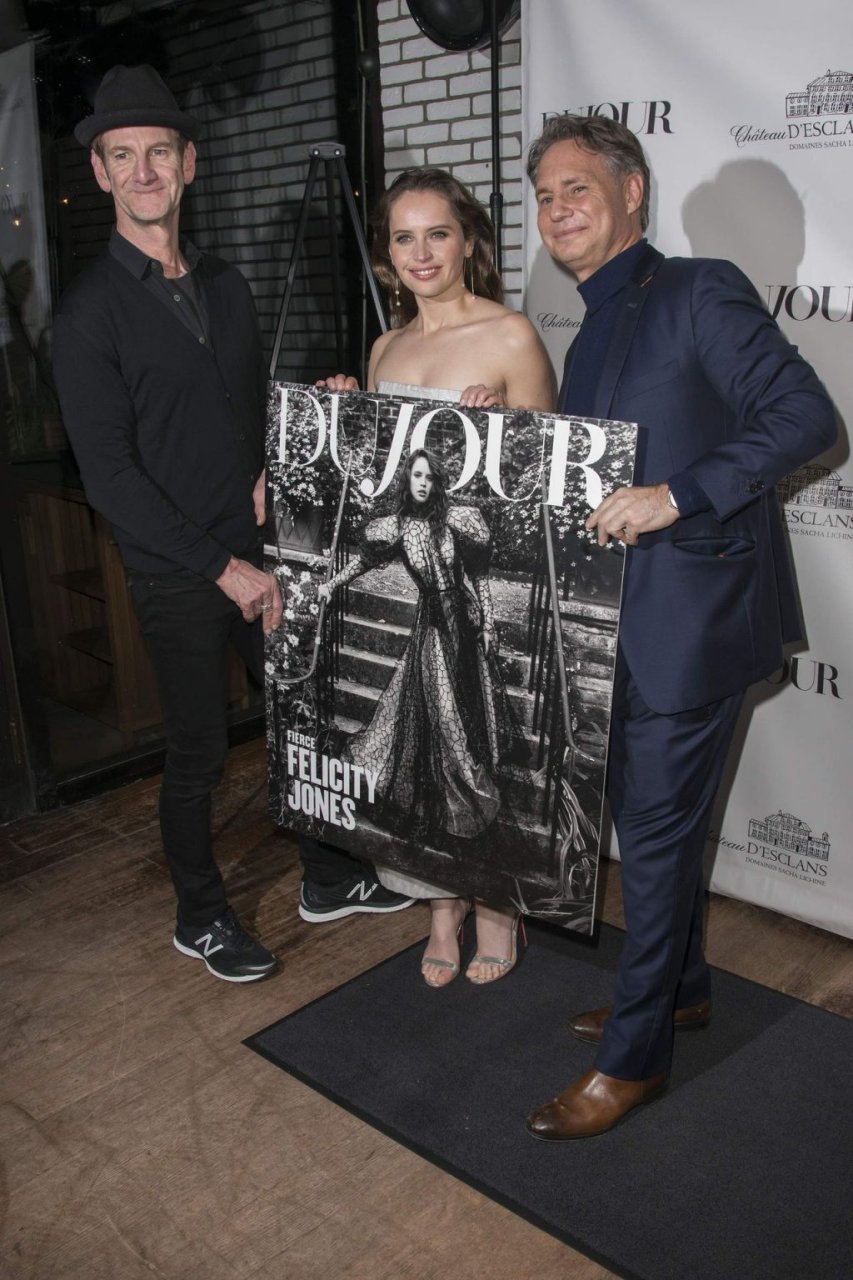 La belle Felicity Jones est apparue à la célébration de l’édition hiver de DuJour à New York, le 17/12/2018. L’actrice a été photographiée avec la couverture du magazine et d’autres invités de l’événement.