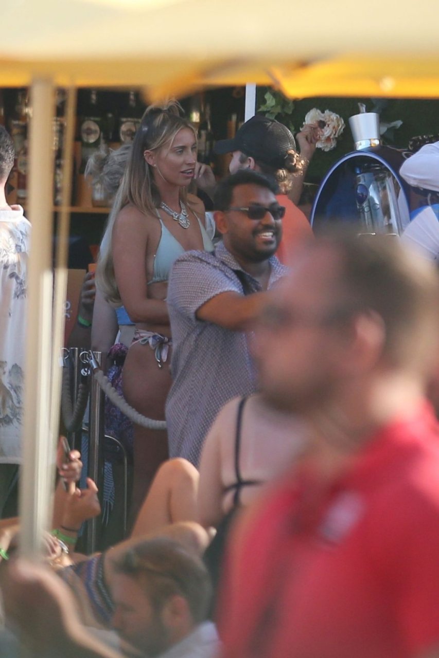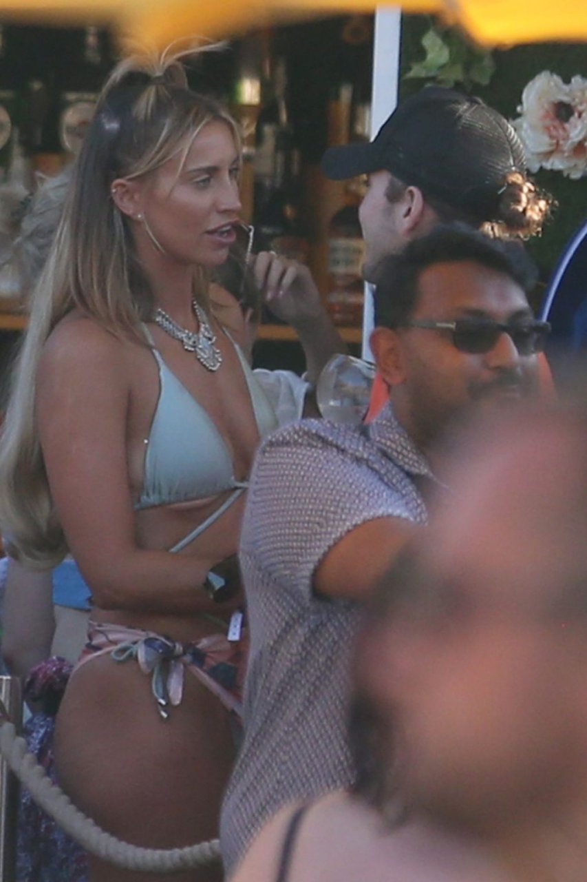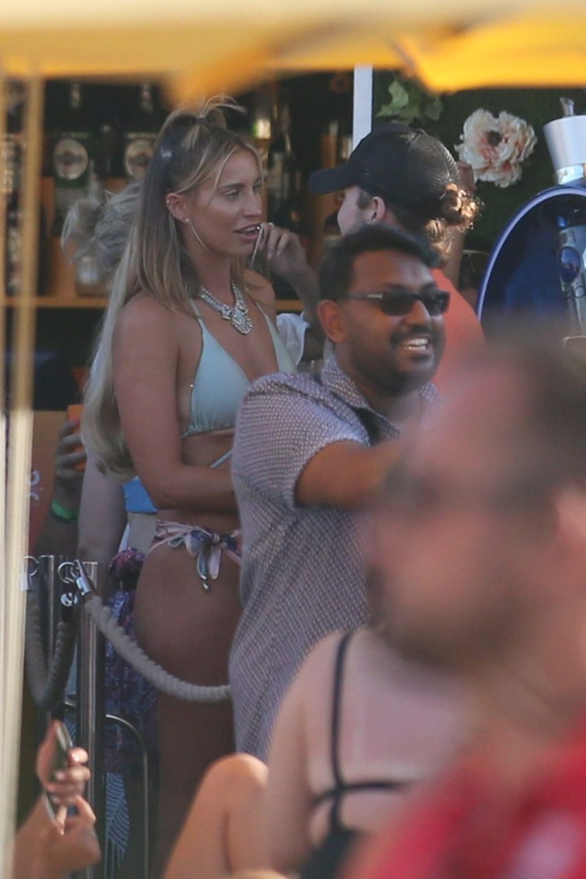 Mannequins anglaises, personnalités de la télévision et animatrices Ferne McCann et Danielle Armstrong se préparent pour une fête pendant leurs vacances à Ibiza, 16/08/2019.