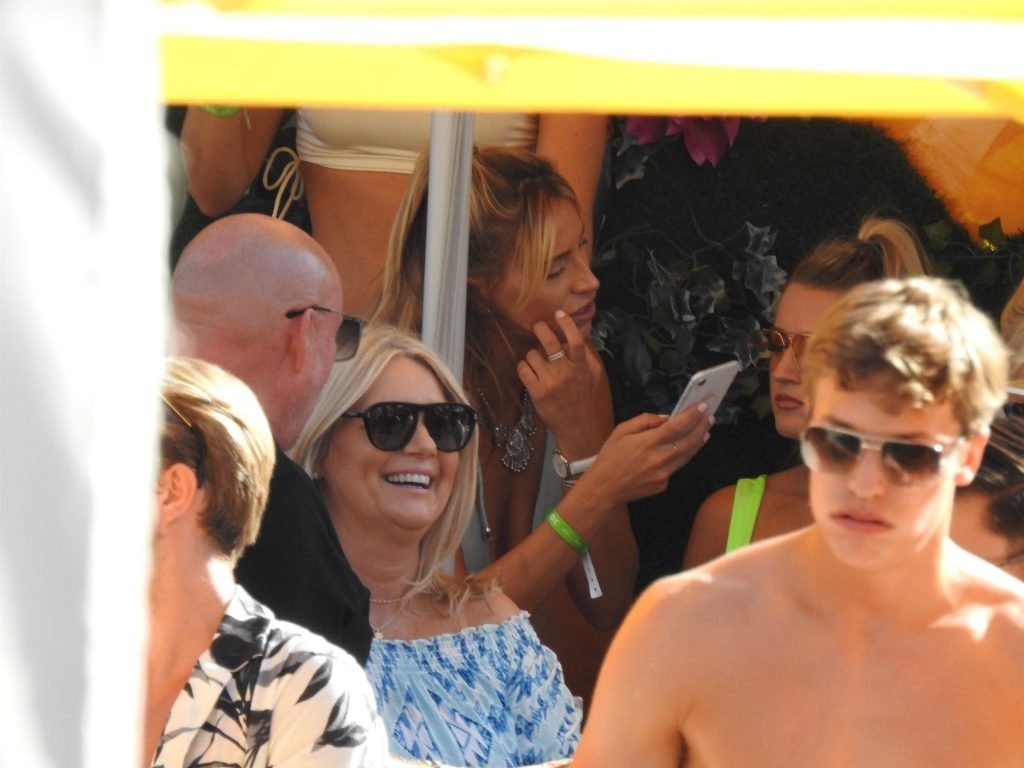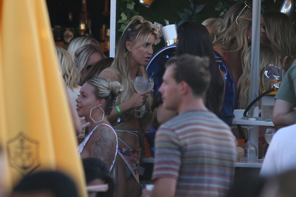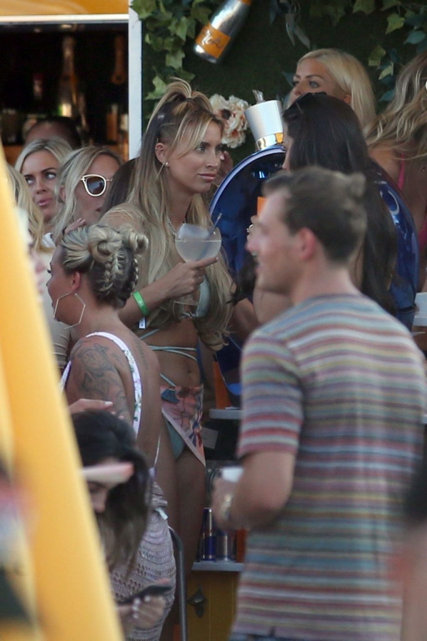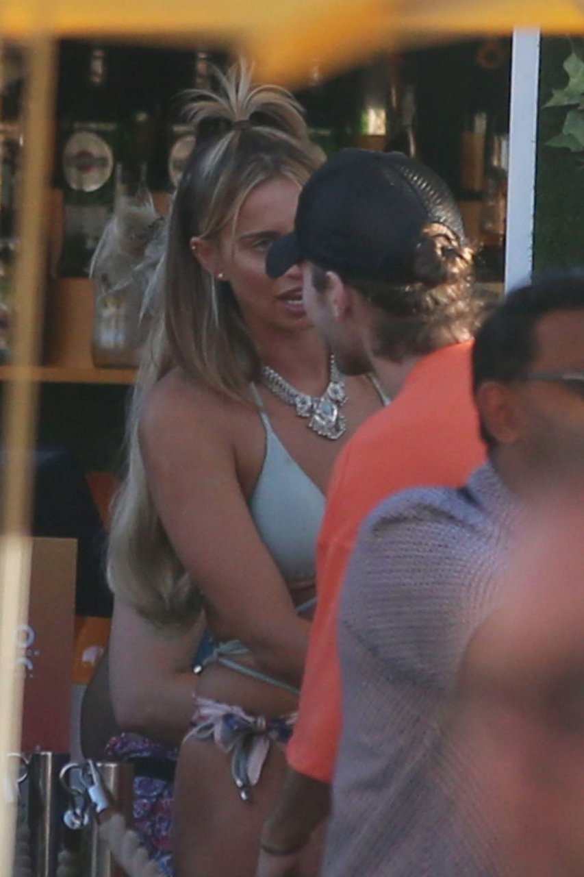 Mannequins anglaises, personnalités de la télévision et animatrices Ferne McCann et Danielle Armstrong se préparent pour une fête pendant leurs vacances à Ibiza, 16/08/2019.