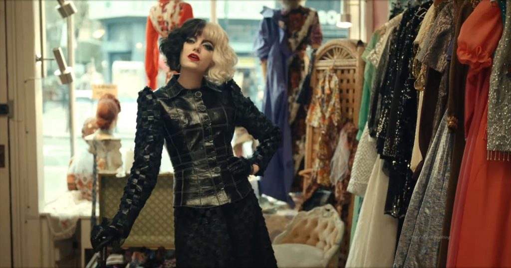 L’Oscar de la meilleure actrice Emma Stone joue la version plus jeune de la méchante qui enlève les chiens, qui à ce stade de sa carrière est simplement une créatrice de mode en herbe dans le Londres des années 1970.