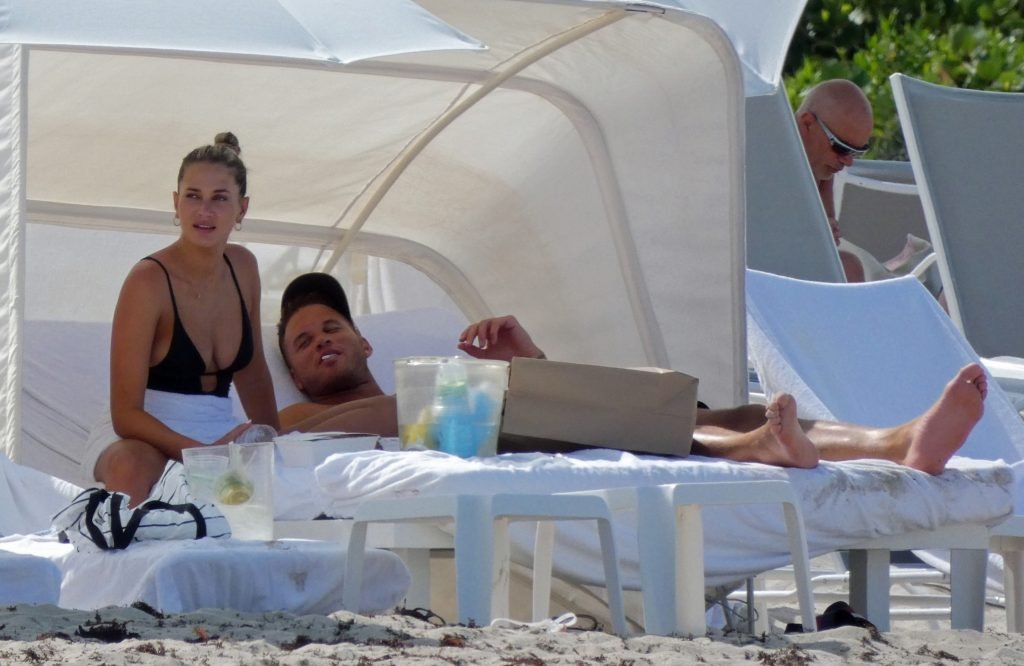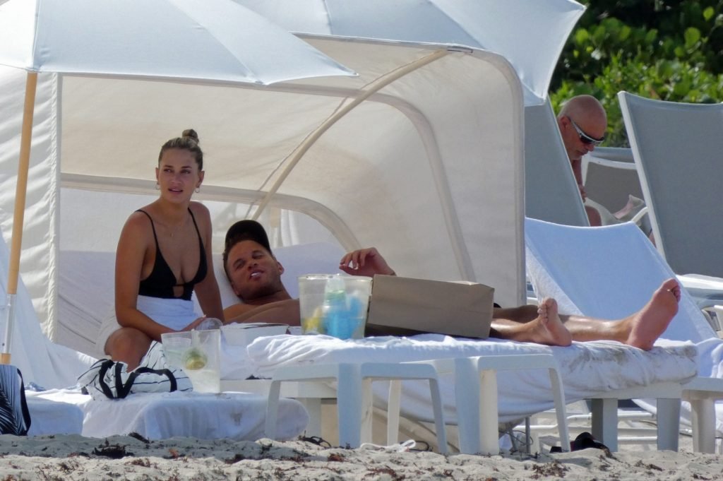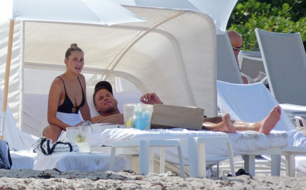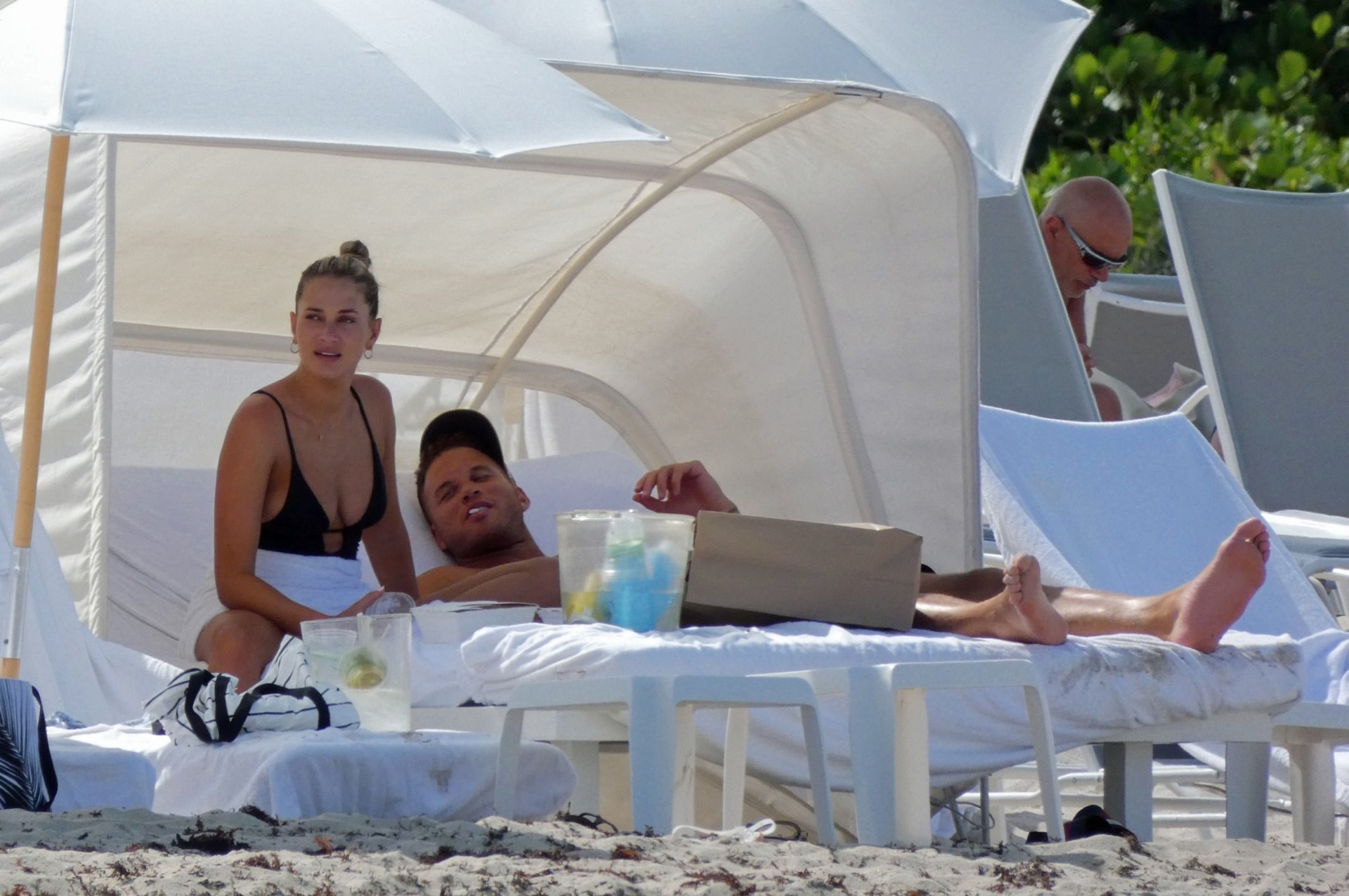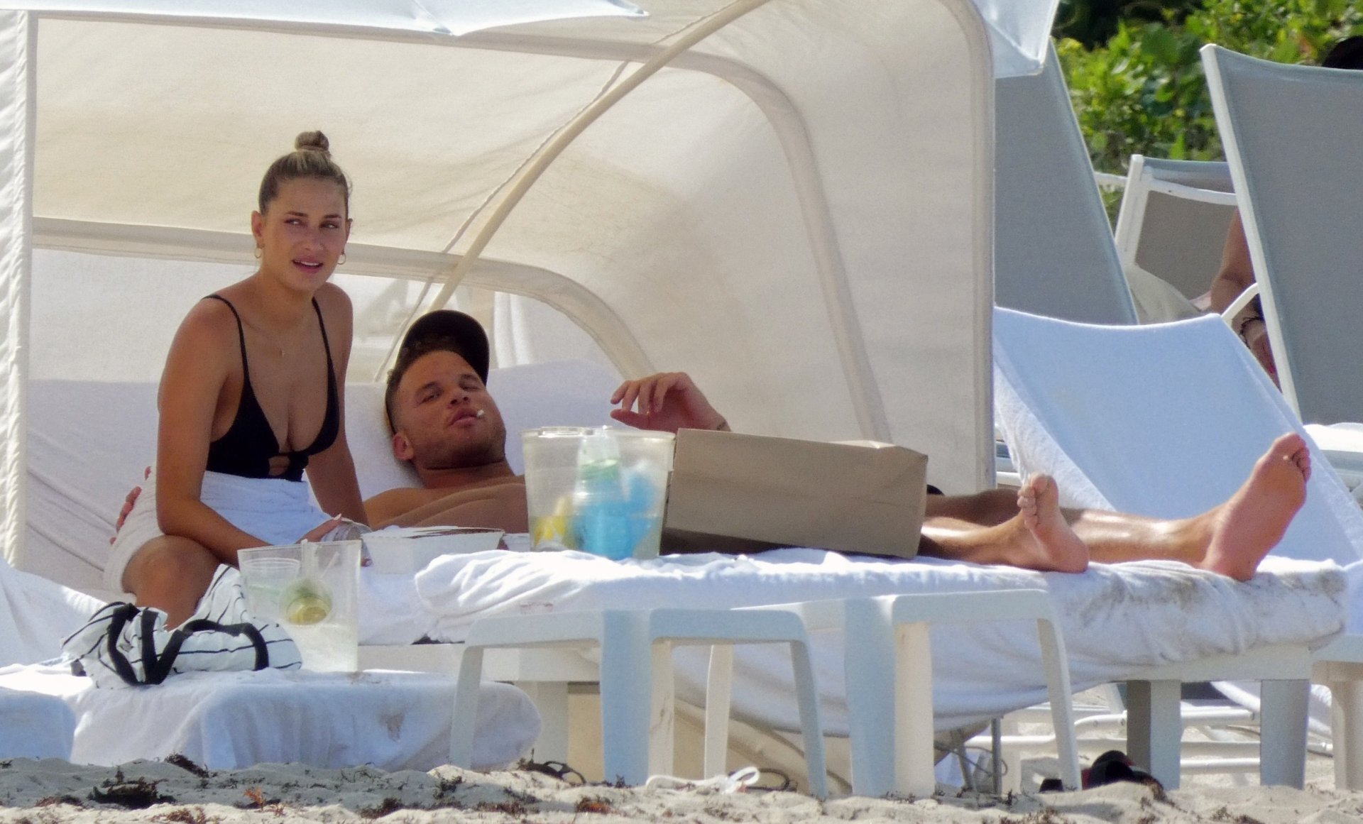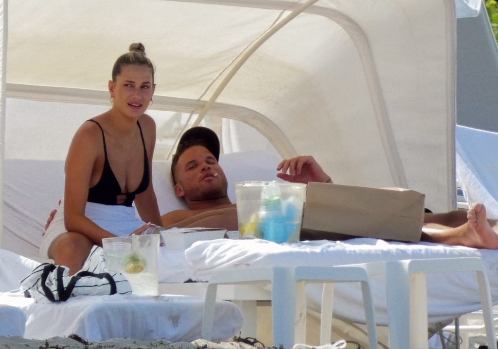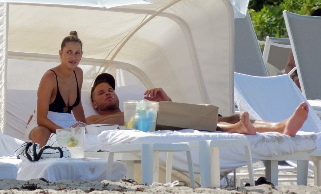 L’ex de Kendall Jenner, Blake Griffin, a été photographié alors qu’il profitait d’une belle journée à la plage à Miami Beach avec sa nouvelle petite amie de 23 ans, Francesca Aiello, le 15/07/2018. Elle a eu un petit accident de vêtement en dévoilant son sein et son mamelon en se changeant sur la plage tandis qu’elle et Blake profitaient d’un après-midi allongés ensemble dans une cabane VIP de luxe et sur des transats avec des amis.
